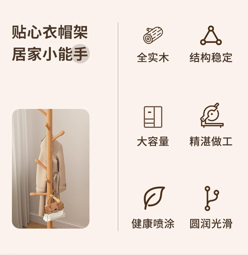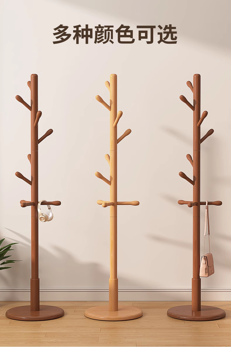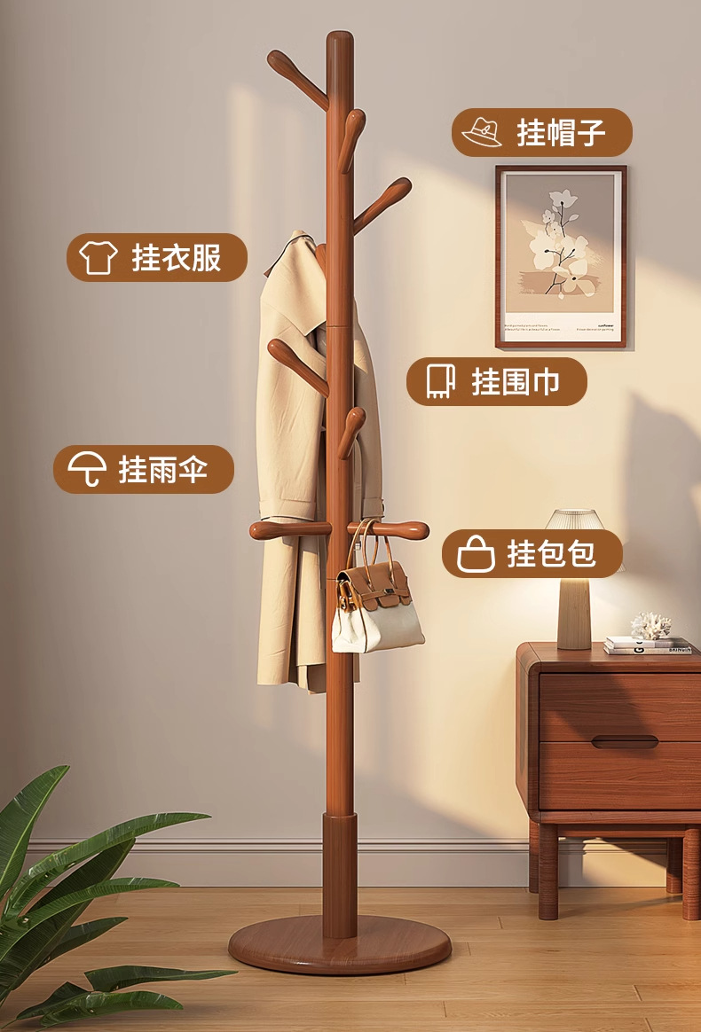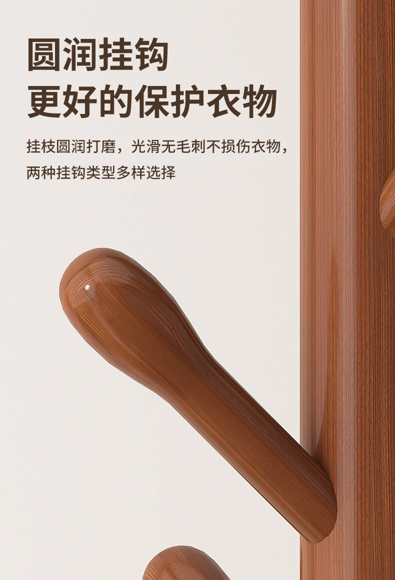 实木衣架落地衣帽架卧室家用立挂衣架结实耐用简易室内客厅榉木架