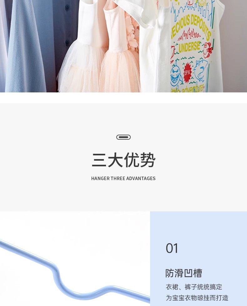 儿童衣架加粗晾衣挂中童无痕防滑宝宝小家用挂衣婴儿大童小孩衣柜