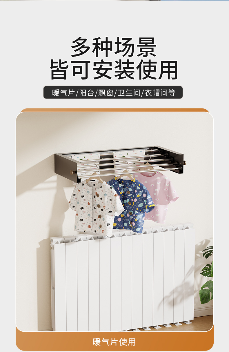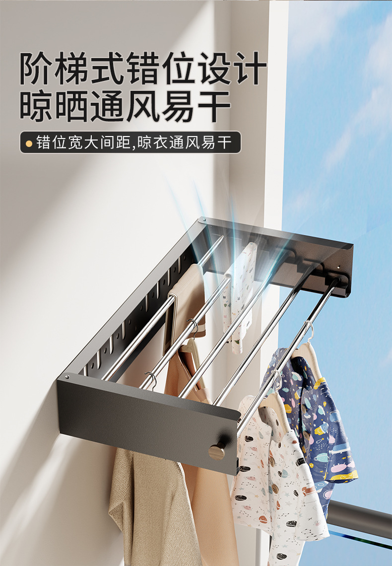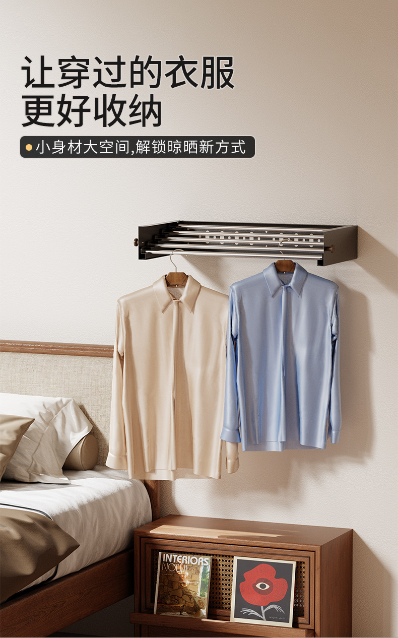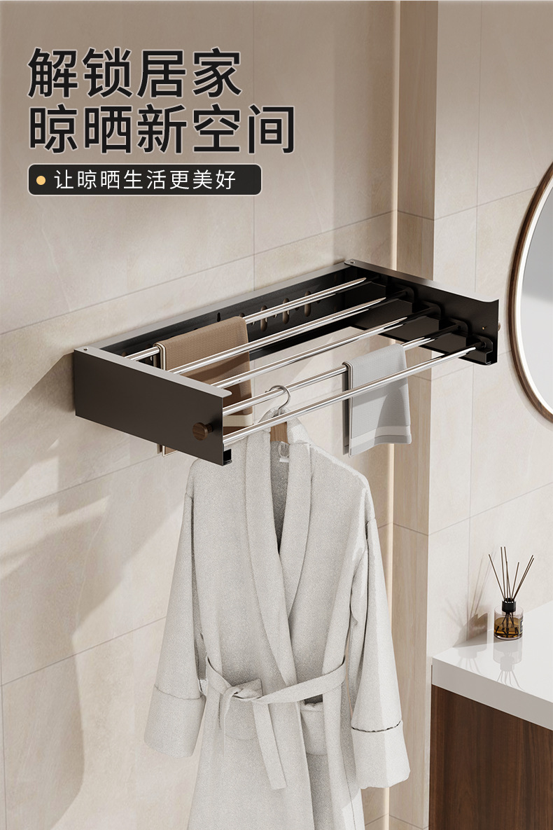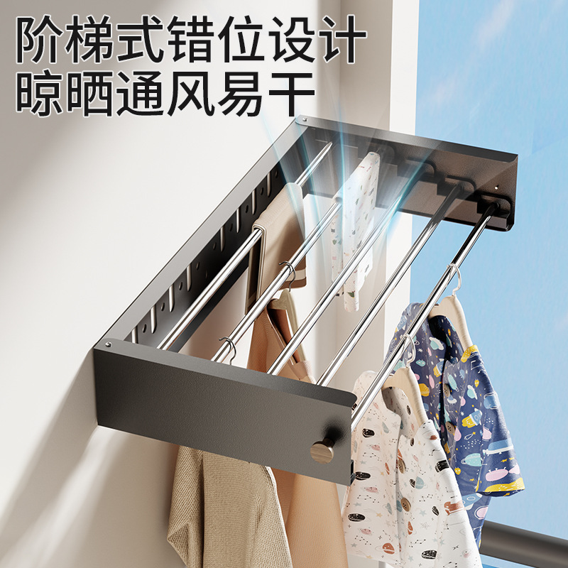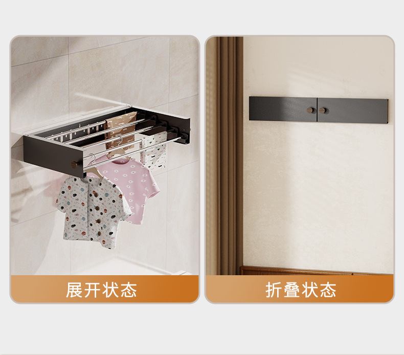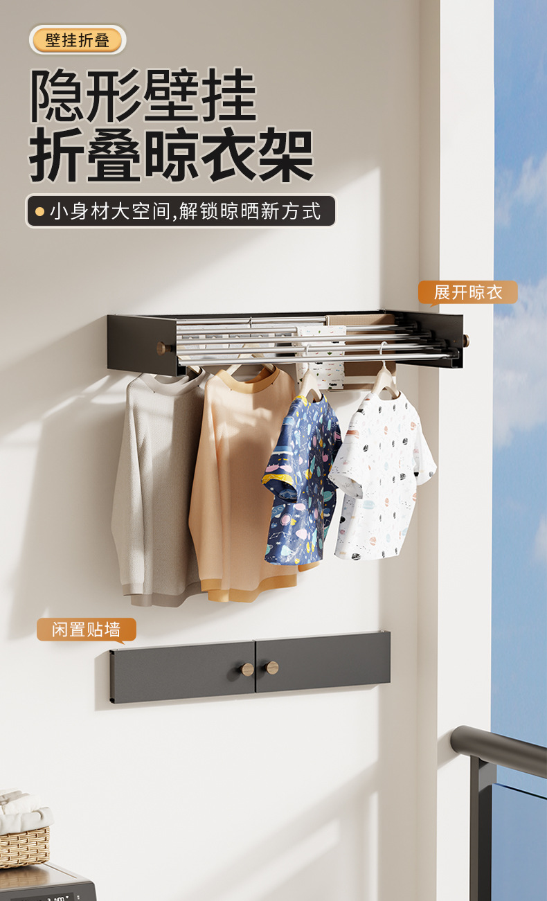 贝石隐形折叠晾衣架阳台室内壁挂晒衣神器卫生间挂衣架晾晒架收纳
