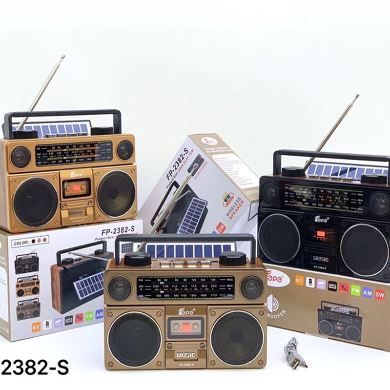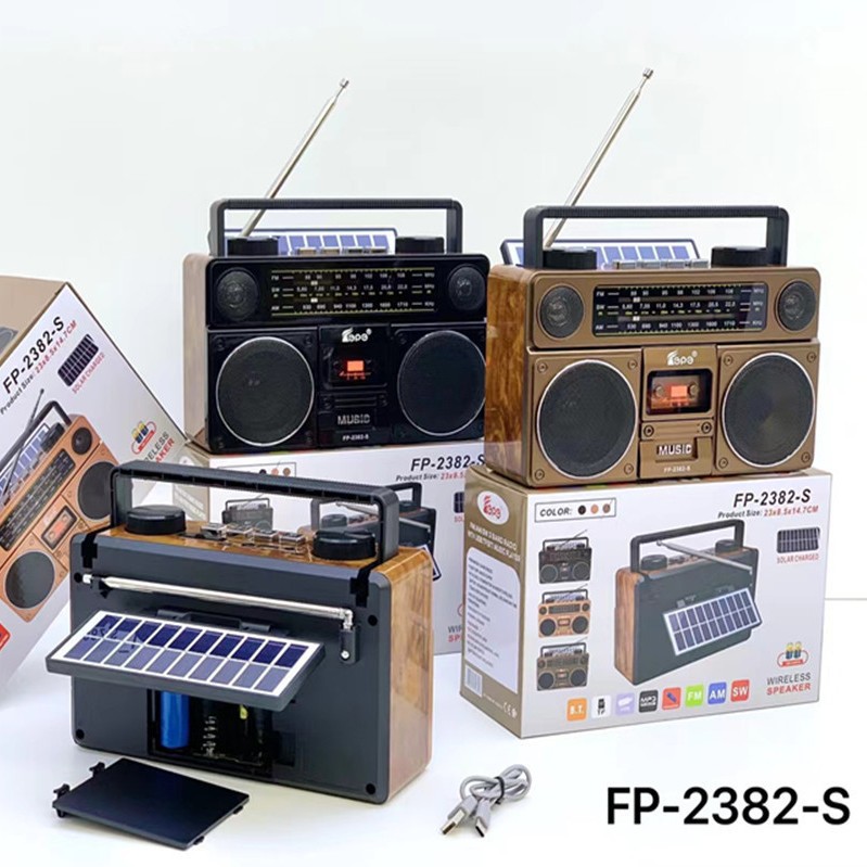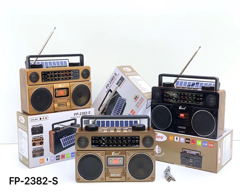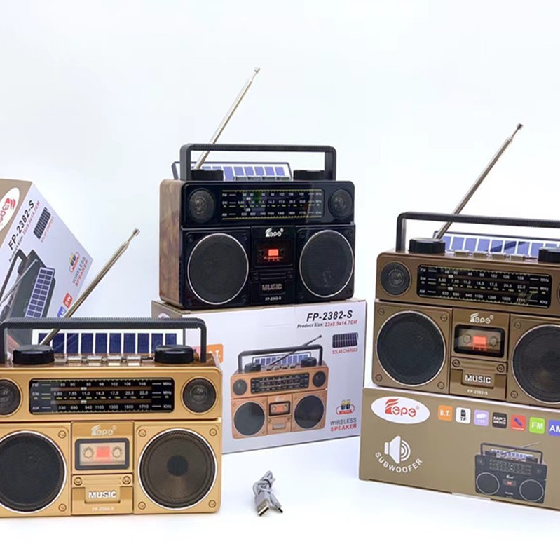 新款FP-2382-S手提户外蓝牙音箱复古音响带天线收音机太阳能音箱