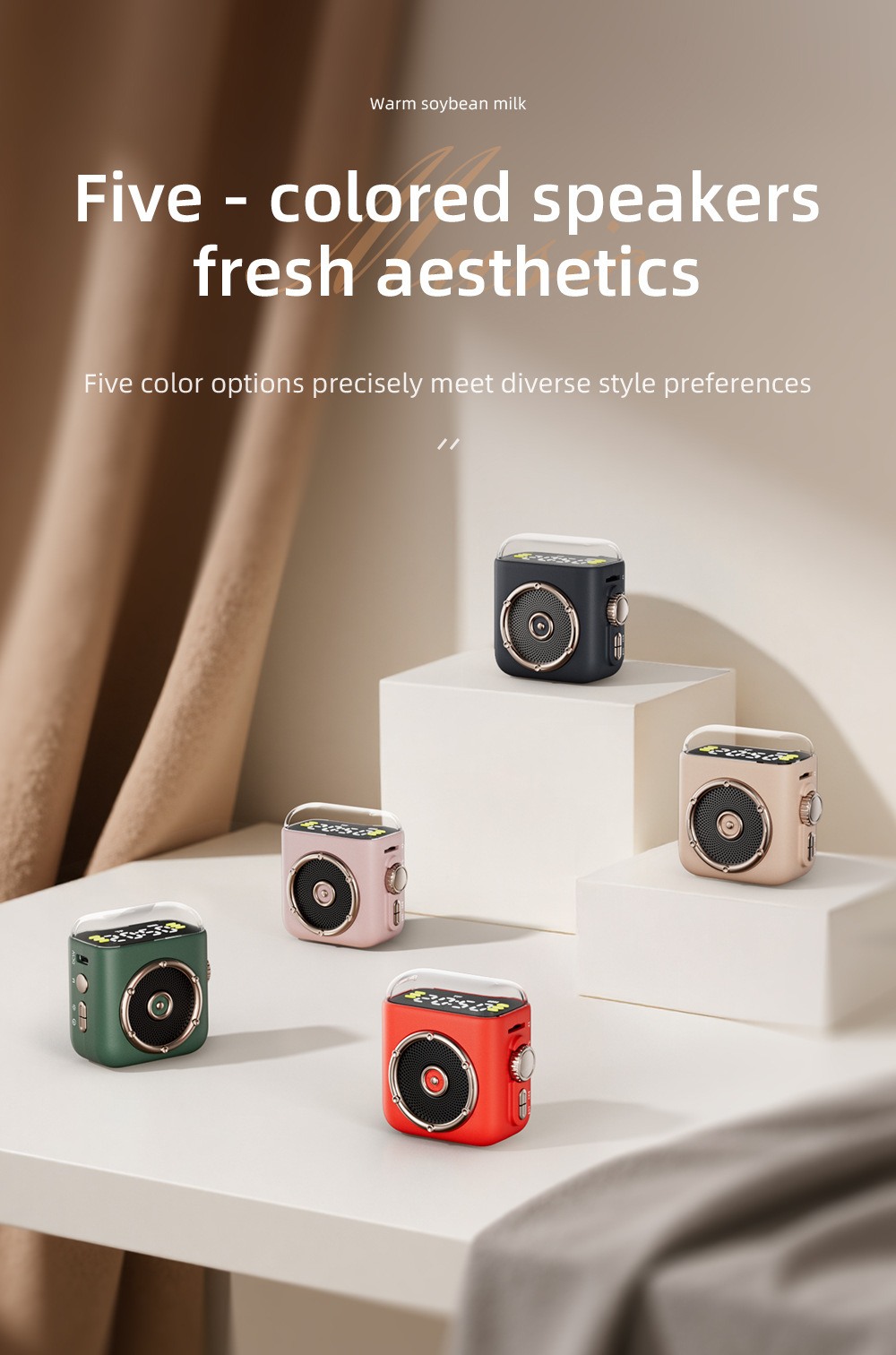 跨境新款蓝牙小音箱复古迷你磁吸背夹音响户外便携式桌面迷你卡通