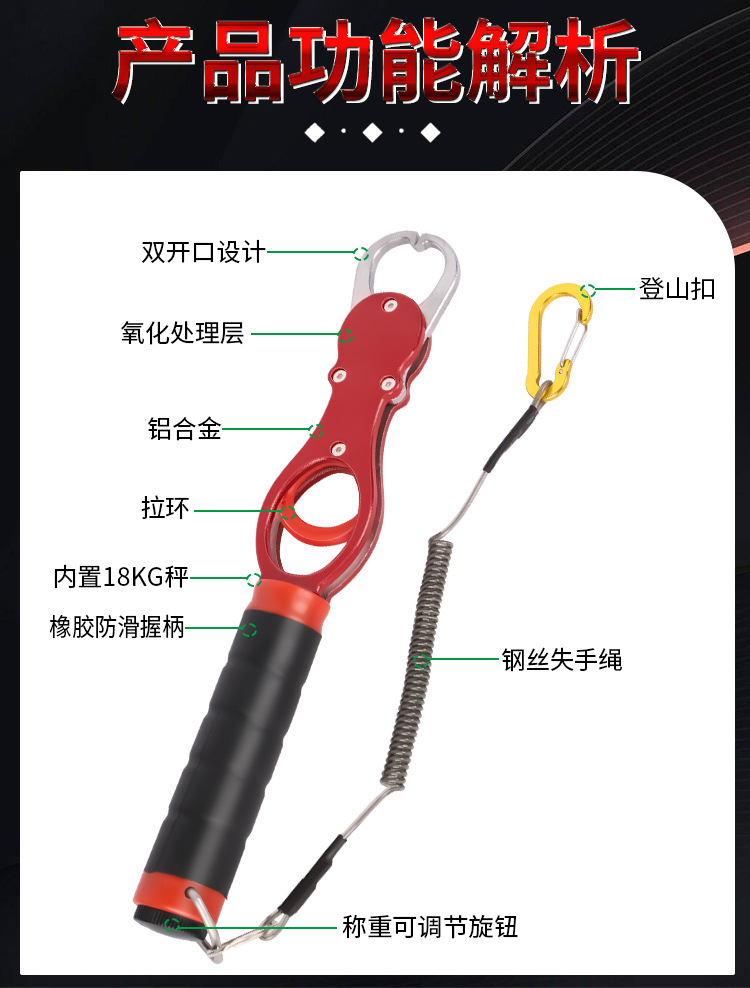 带秤控鱼器铝合金取鱼器户外路亚钳夹鱼夹子抓鱼控鱼钳垂钓用品