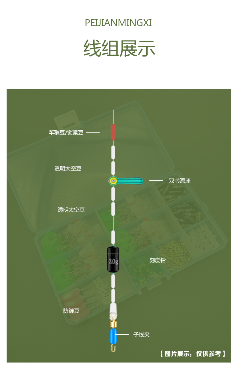 硅胶太空豆套装全套组合刻度铅座钓鱼主线组小配件渔具用品大全、