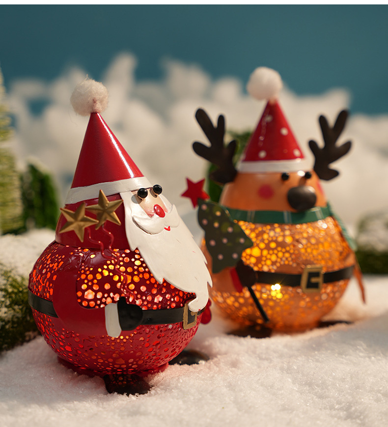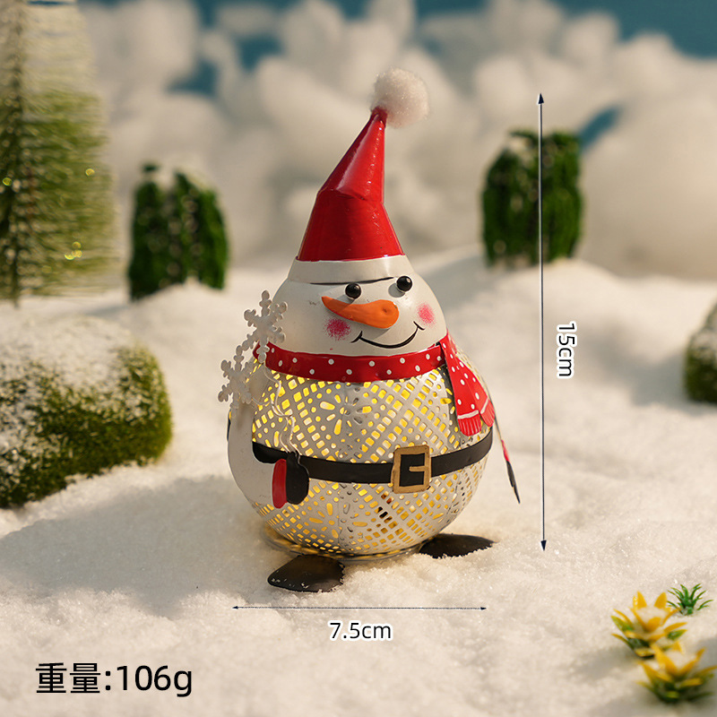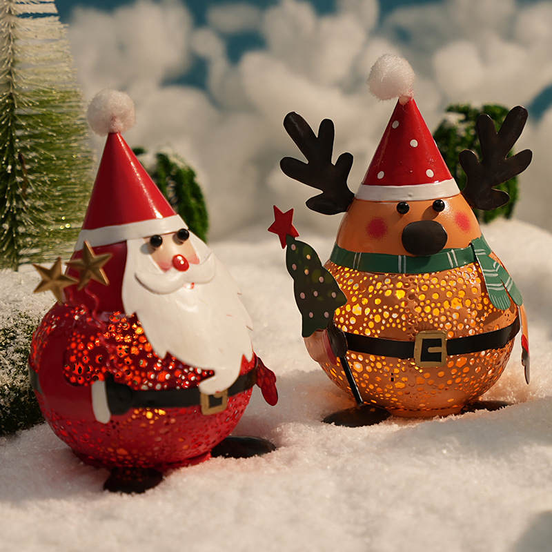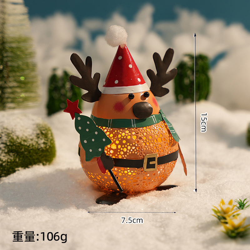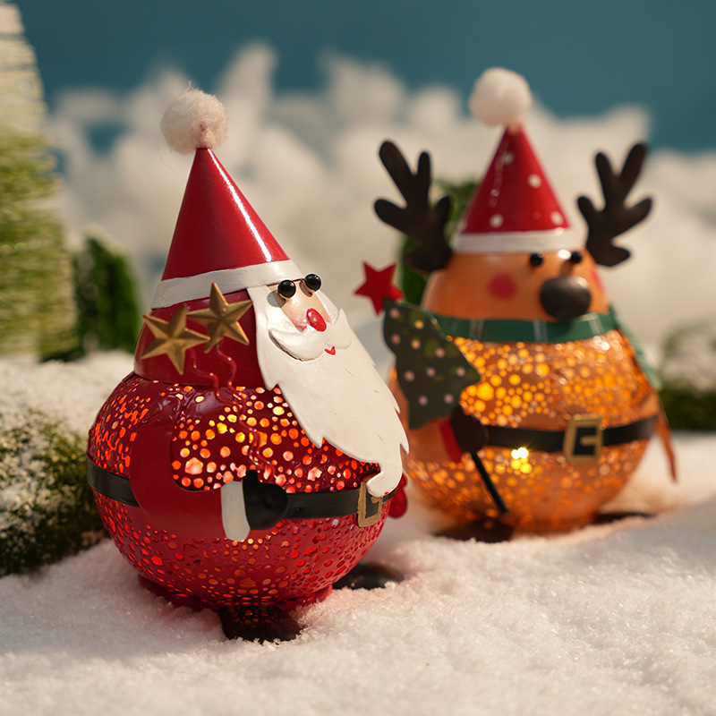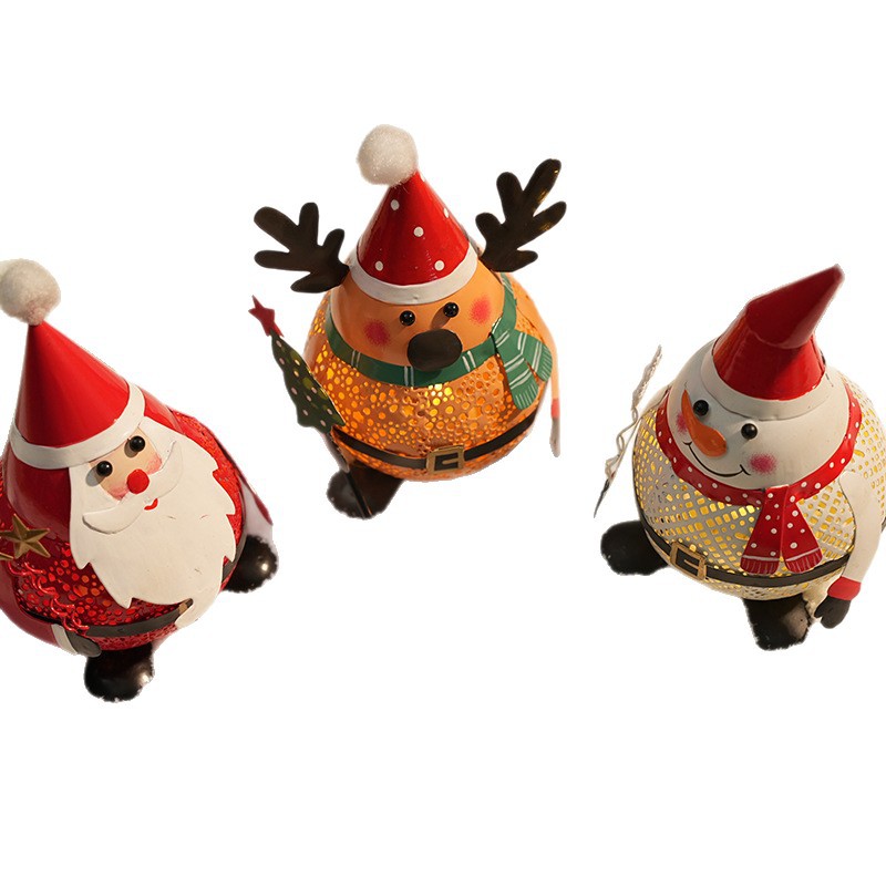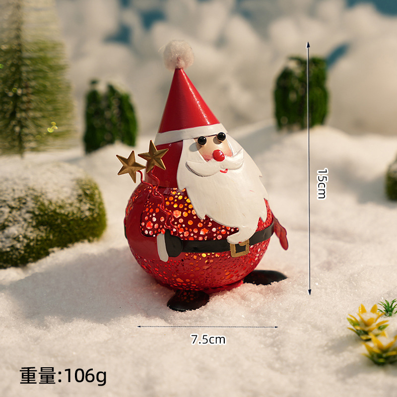 跨境热销铁艺圣诞工艺品彩绘圣诞老人桌面摆件装饰金属圣诞树小夜