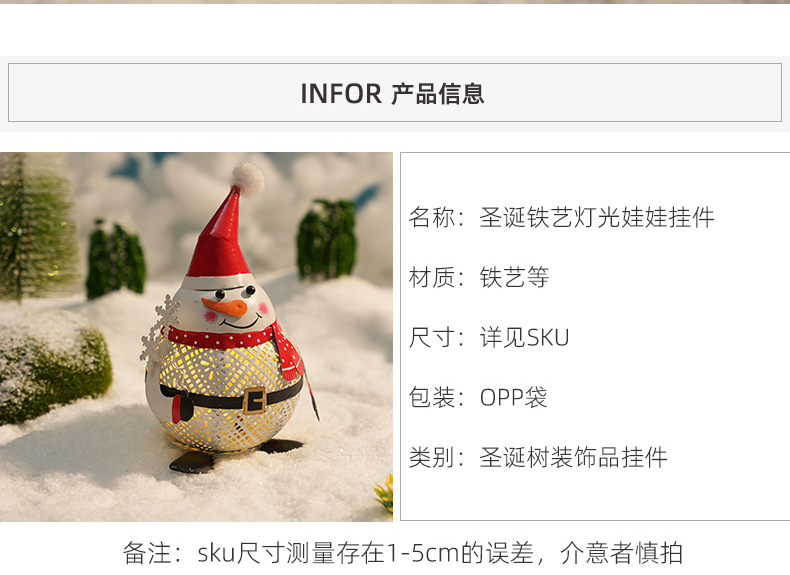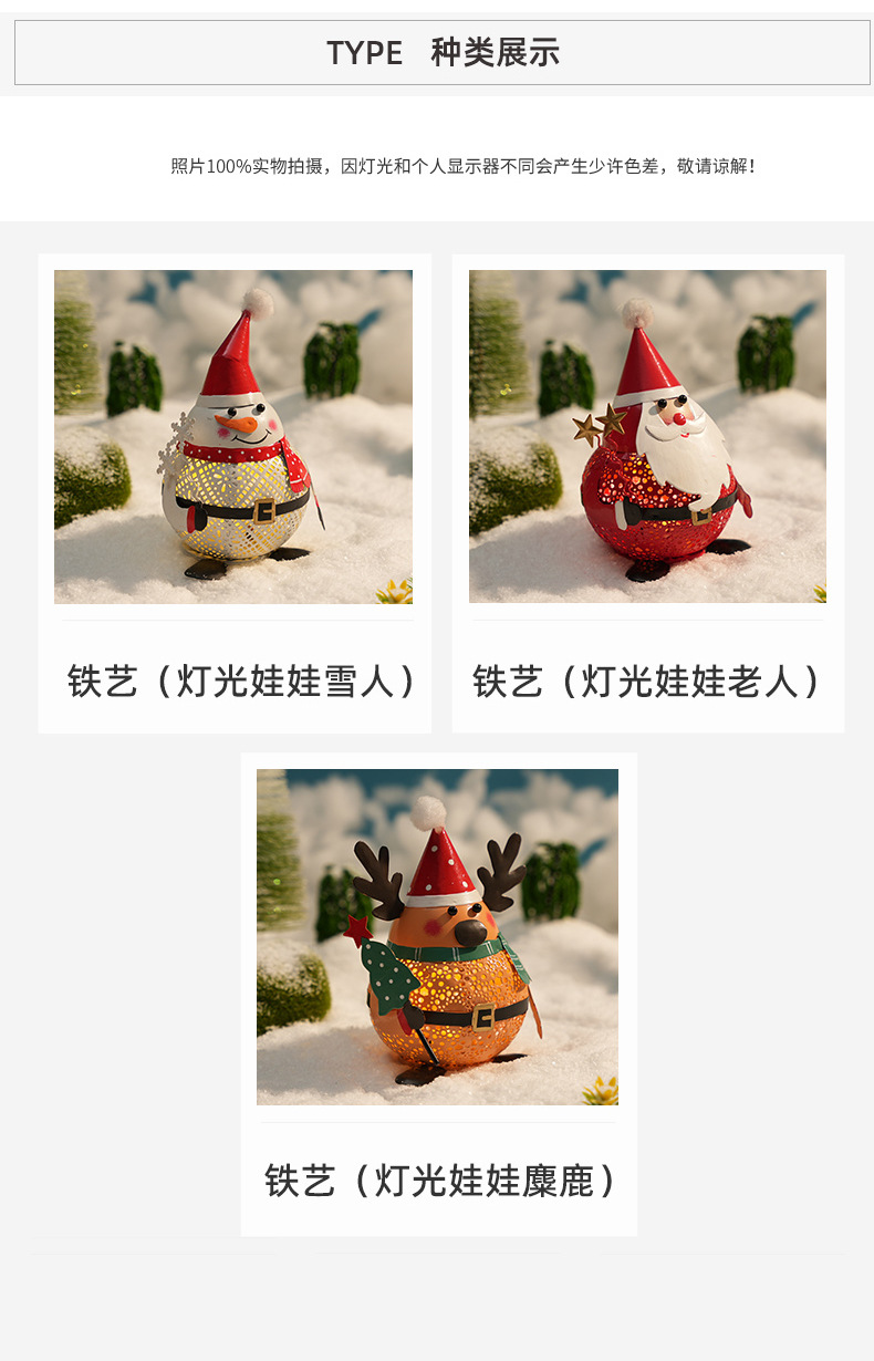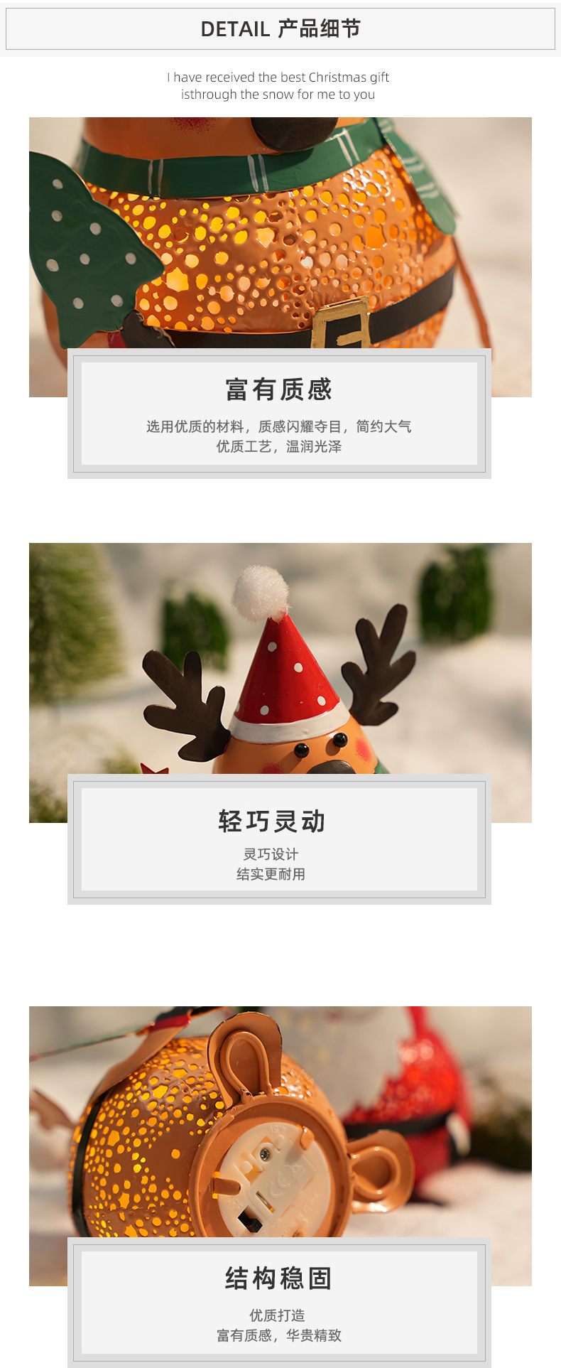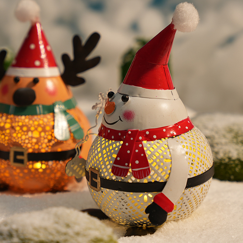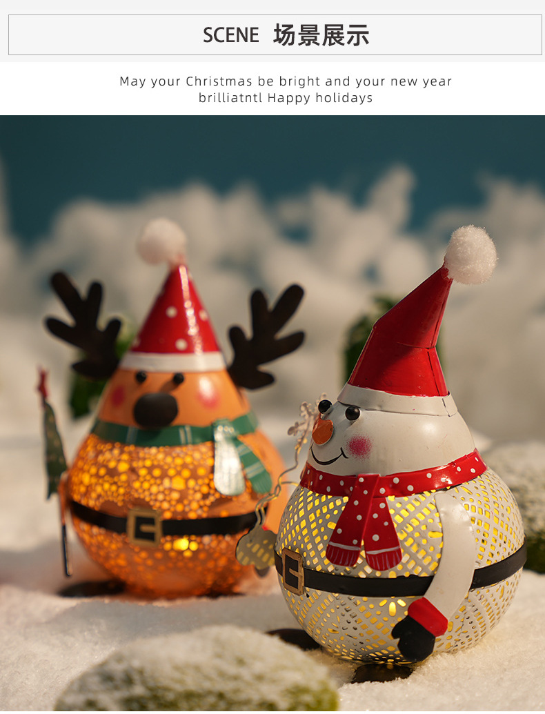 跨境热销铁艺圣诞工艺品彩绘圣诞老人桌面摆件装饰金属圣诞树小夜