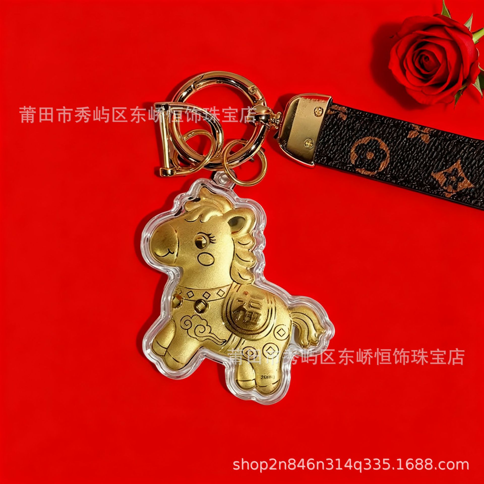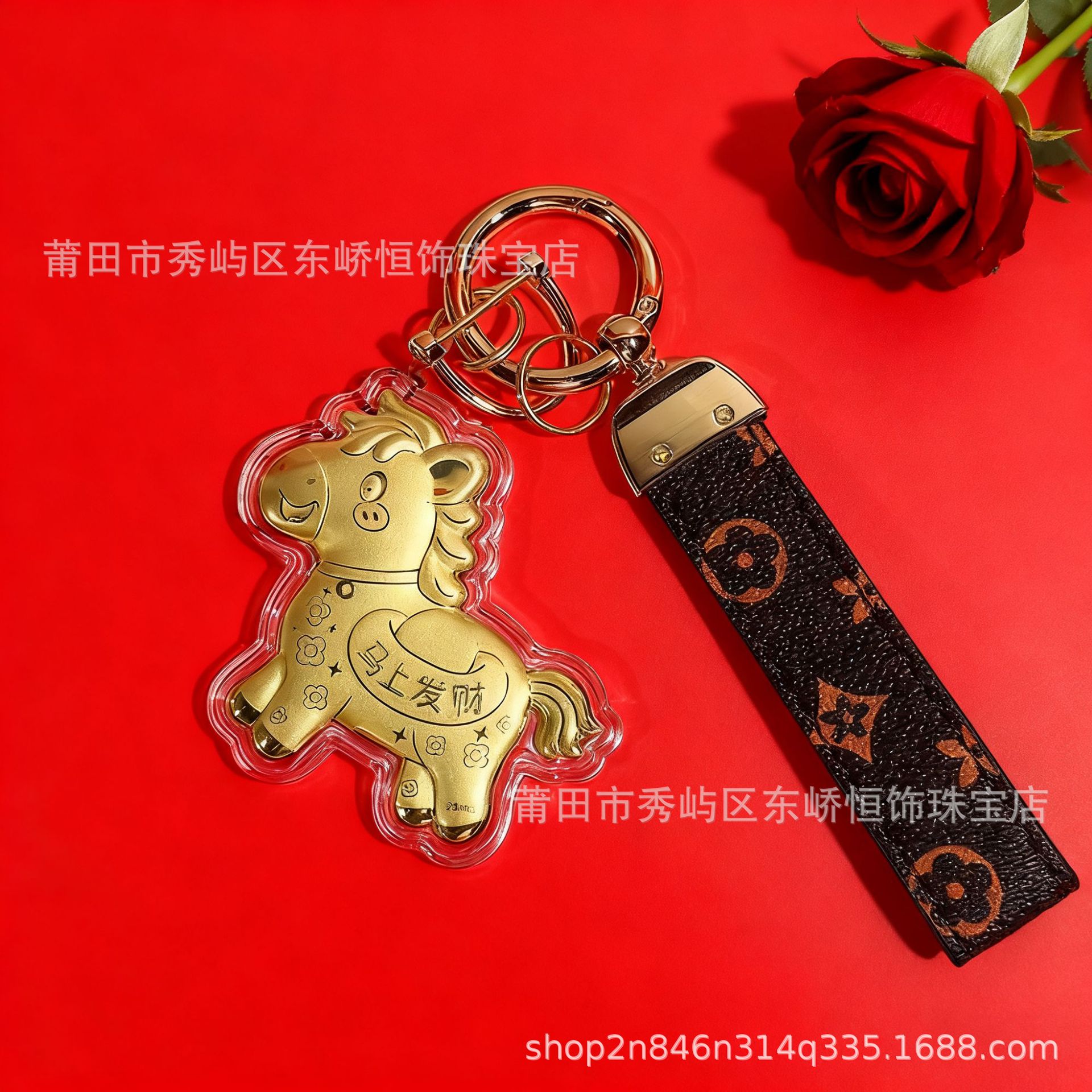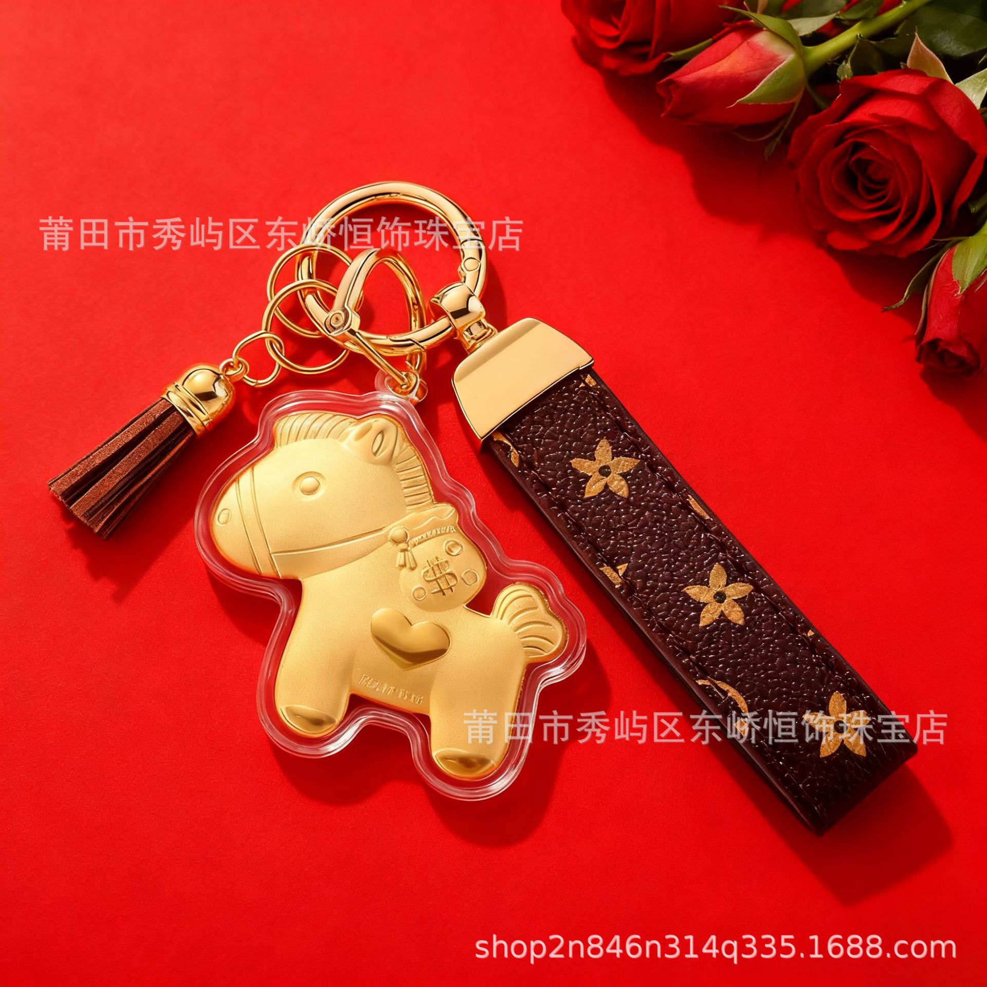 个性黄金马上有钱钥匙扣足金999马年卡通挂件手机链20mg送女朋友