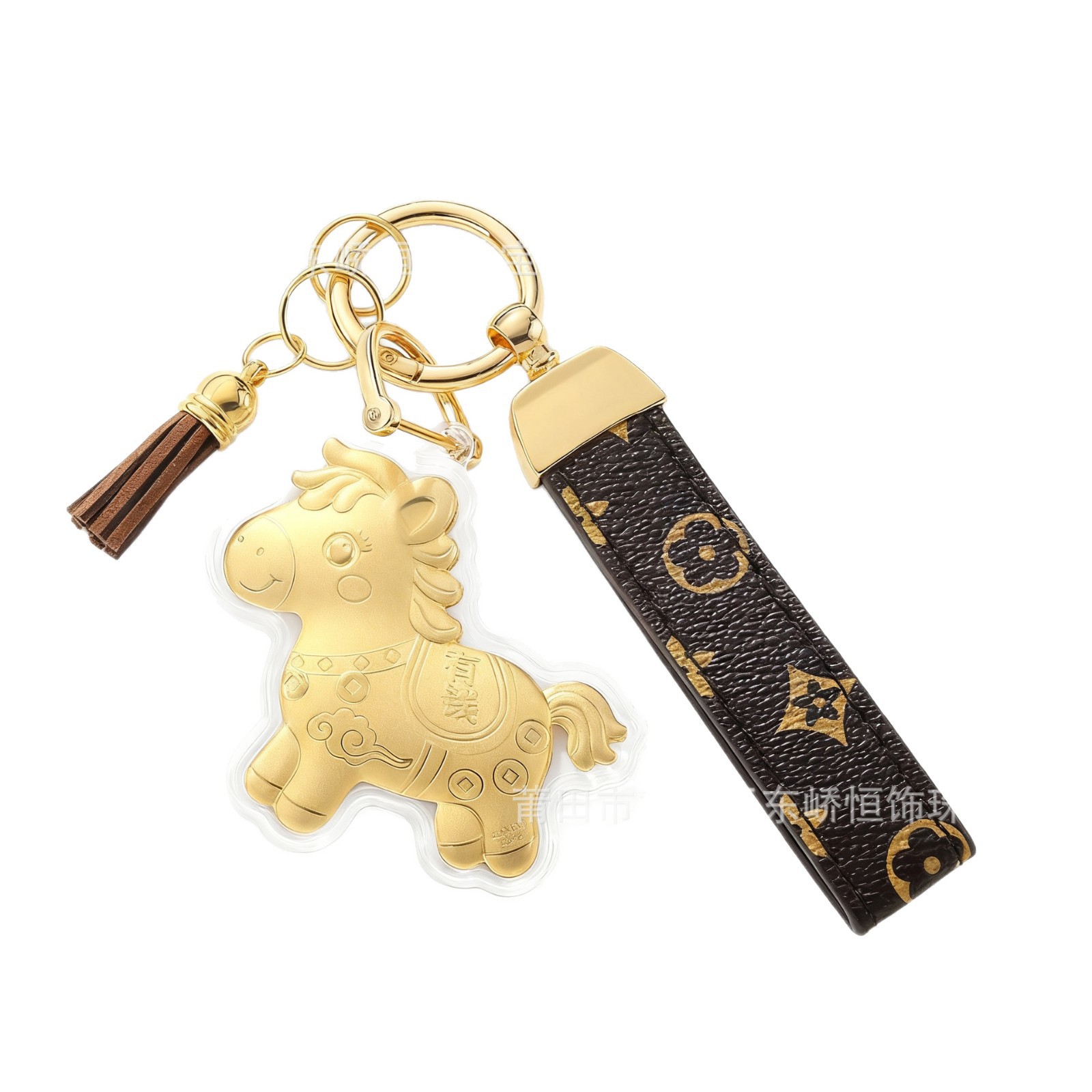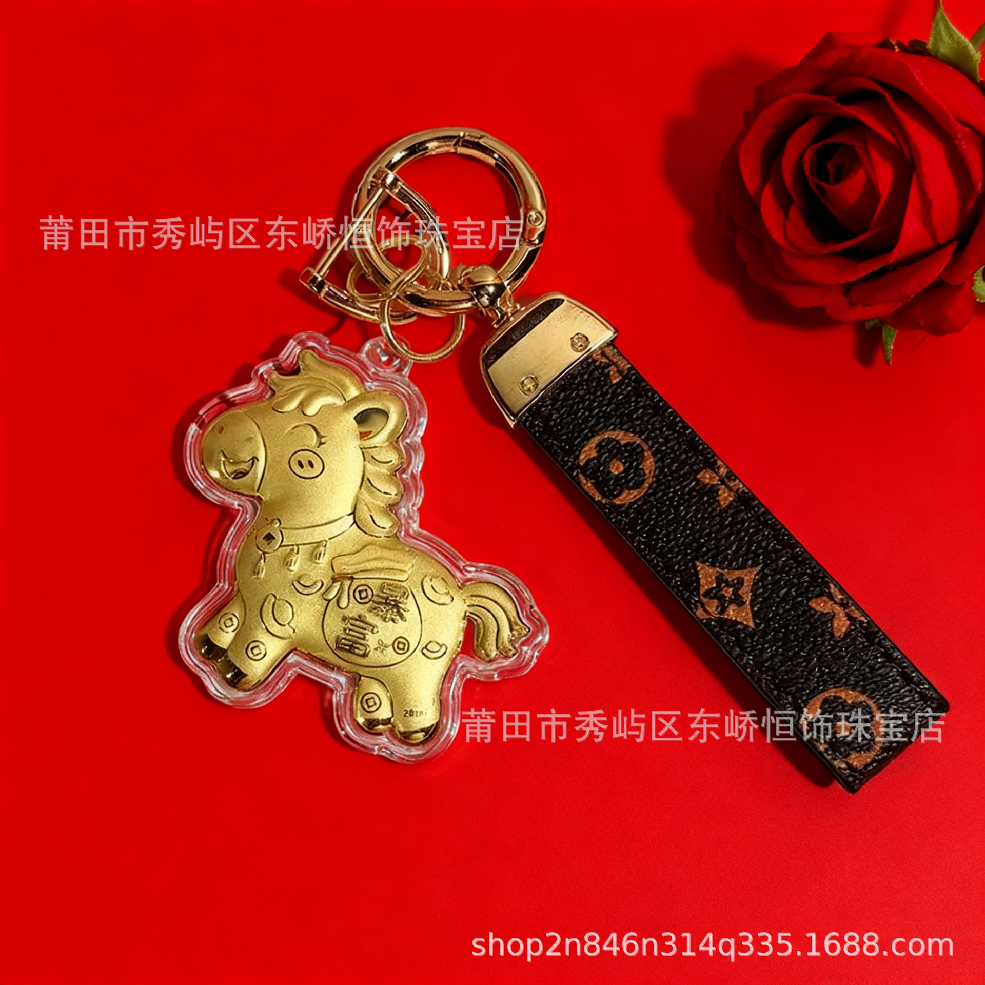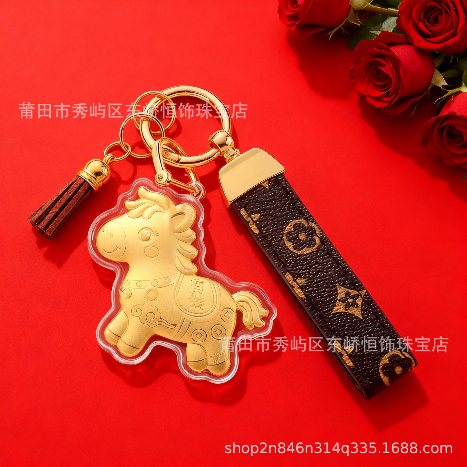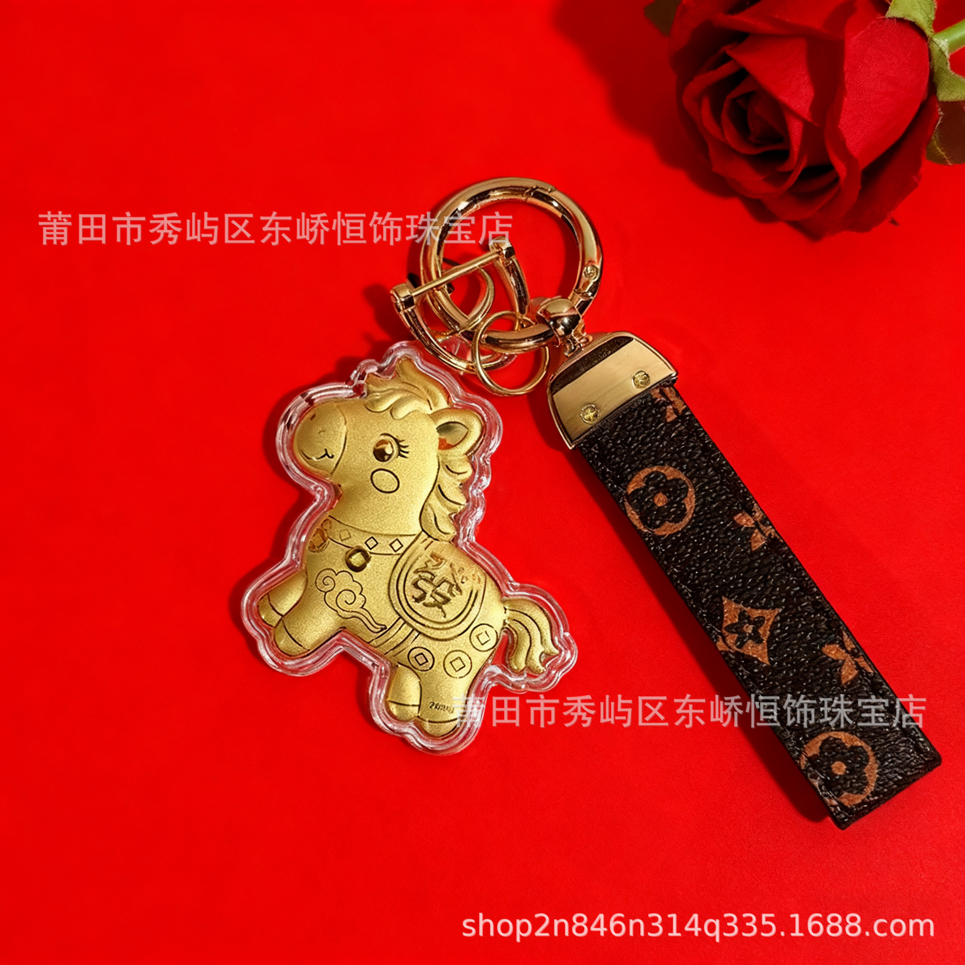 个性黄金马上有钱钥匙扣足金999马年卡通挂件手机链20mg送女朋友
