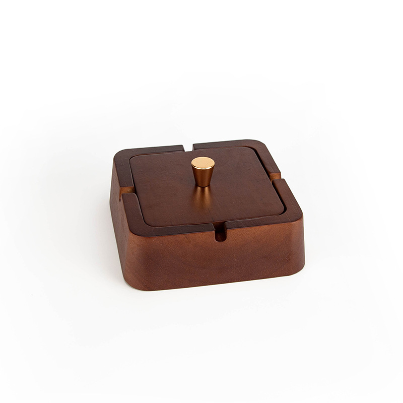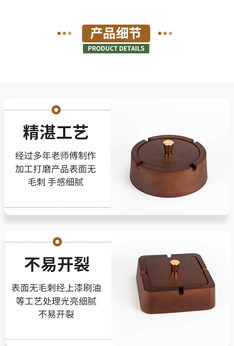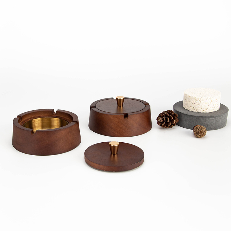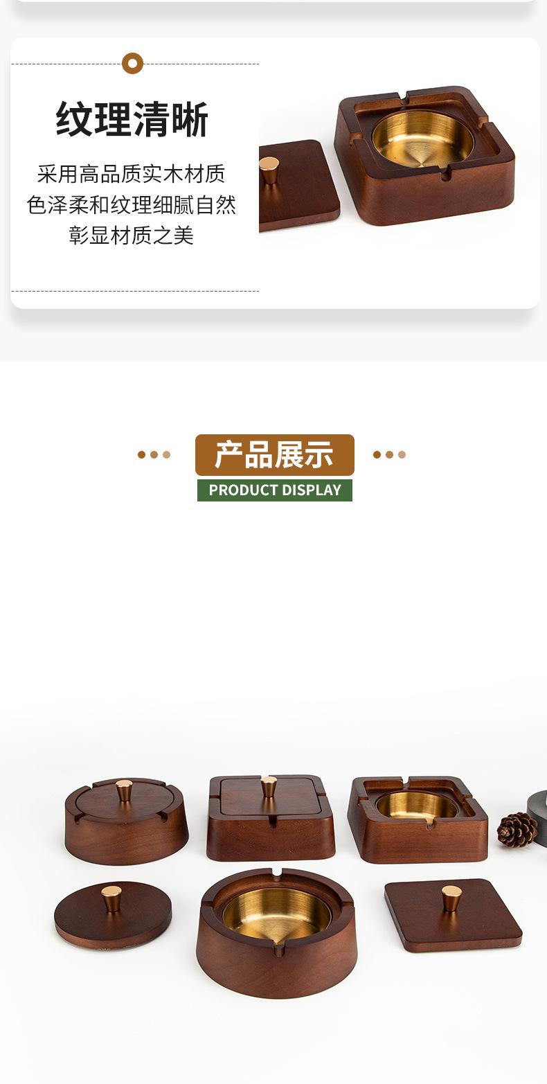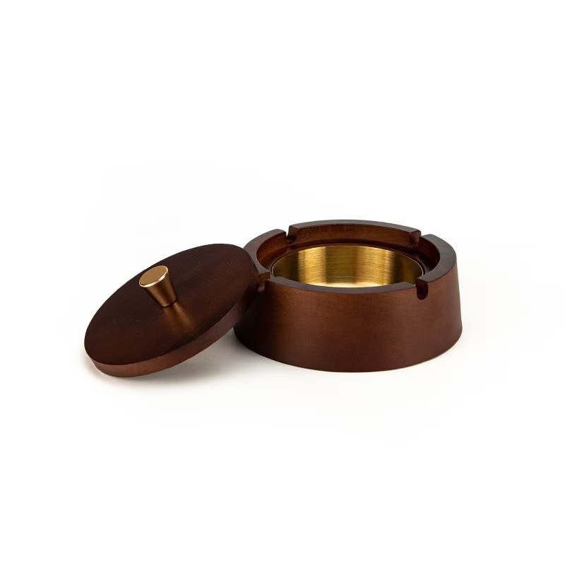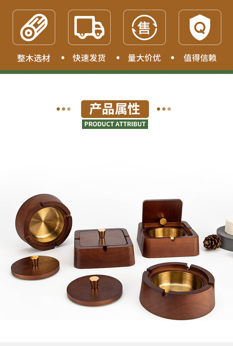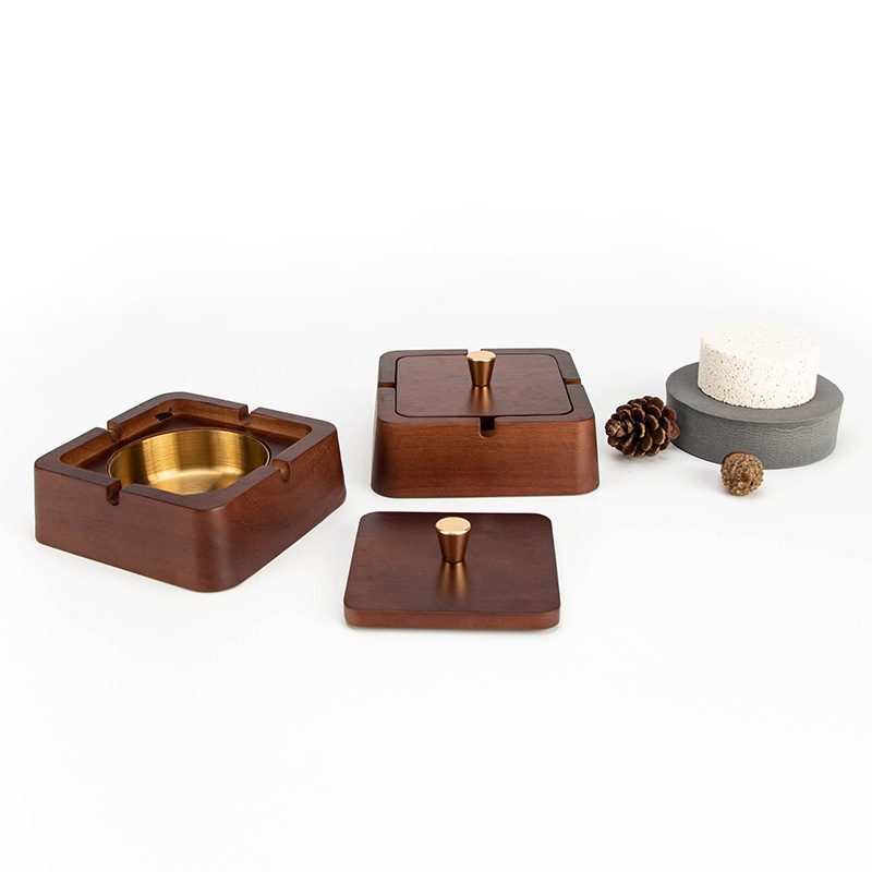跨境实木烟灰缸家用客厅带盖防飞灰不锈钢中国风礼品木质工艺品