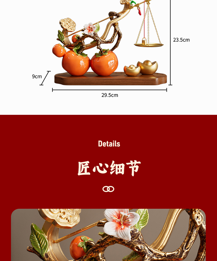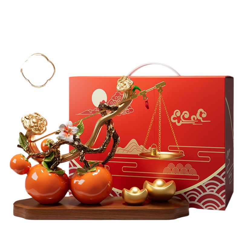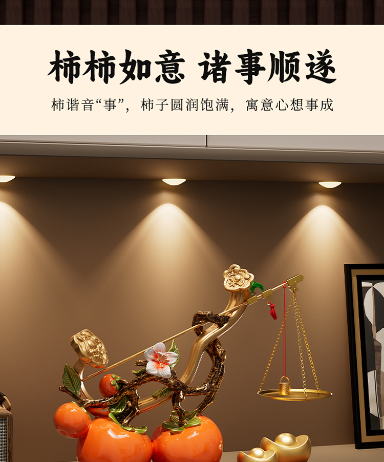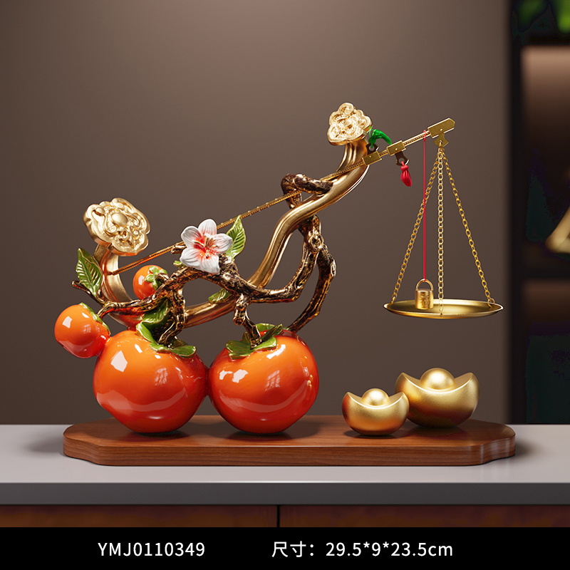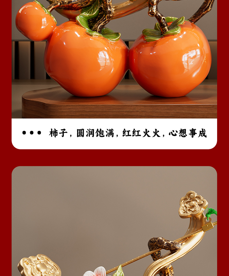 柿柿称心如意柿子摆件客厅玄关电视柜酒柜装饰品搬家乔迁新居礼物
