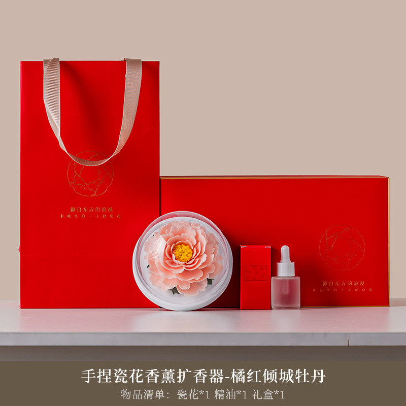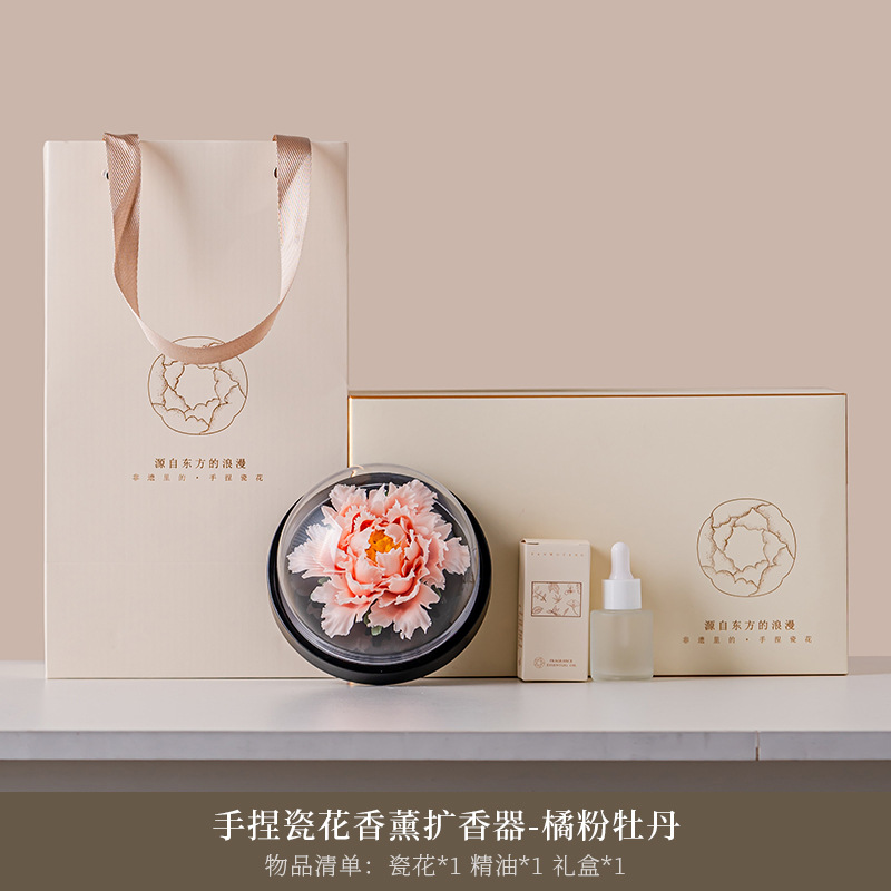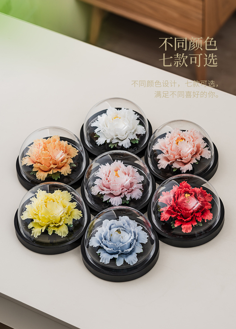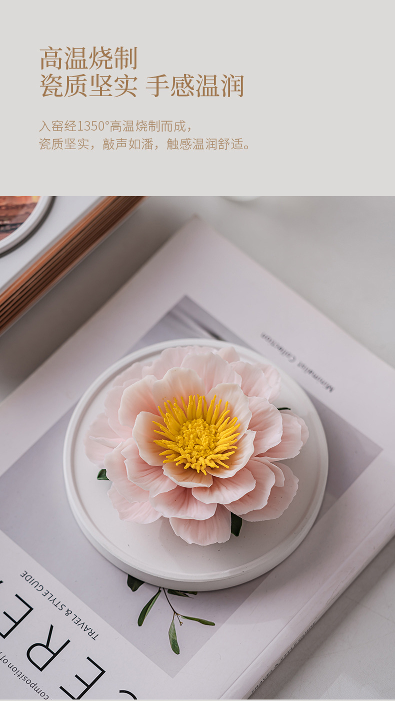 手工牡丹花礼物跨境工艺品车载香薰摆件高级感小众陶瓷花伴手礼品