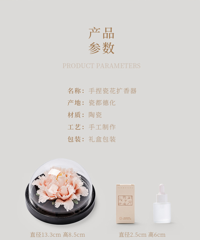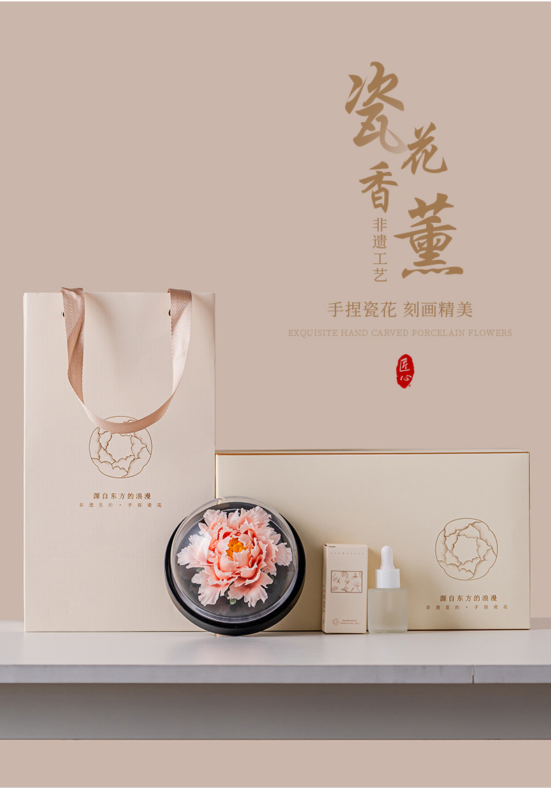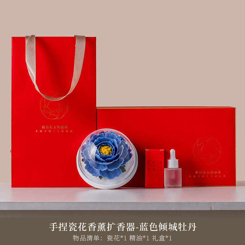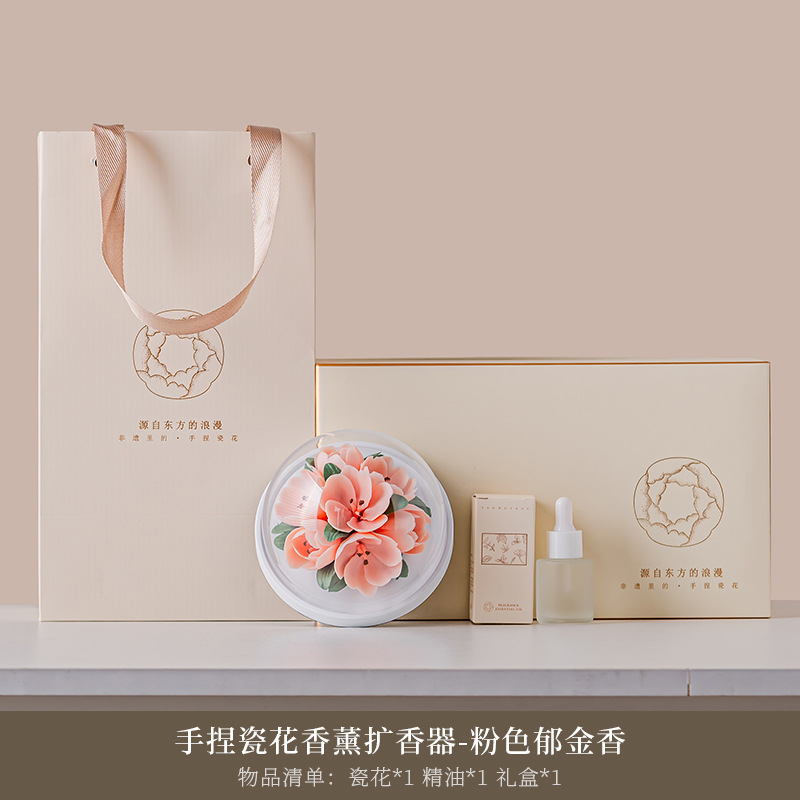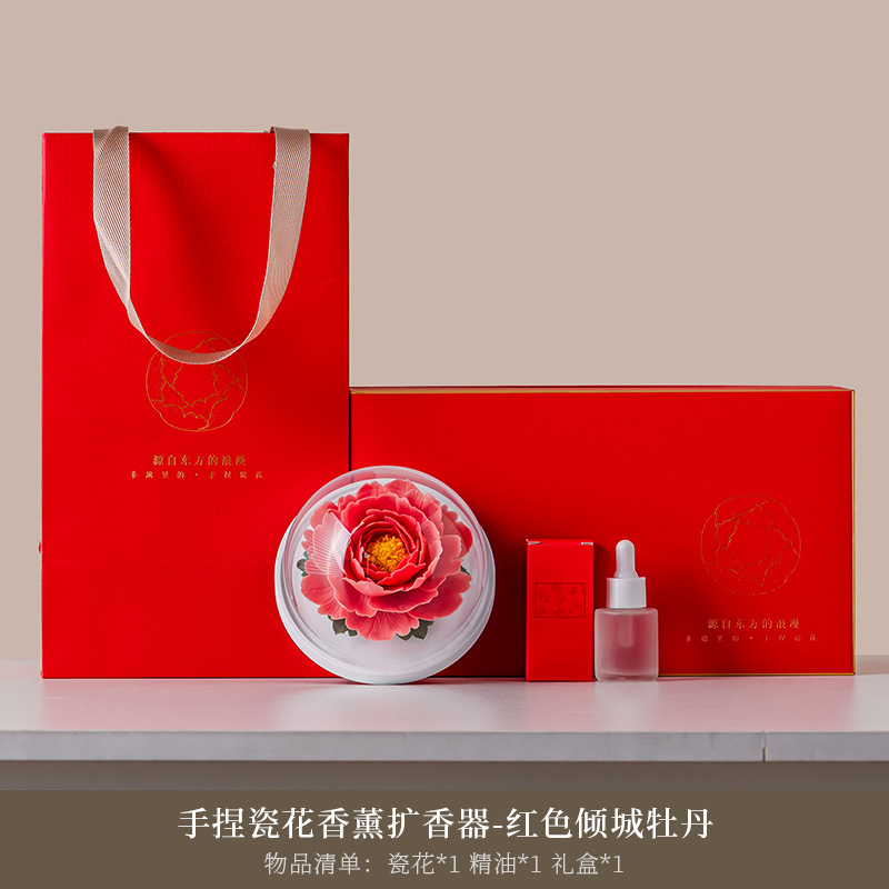 手工牡丹花礼物跨境工艺品车载香薰摆件高级感小众陶瓷花伴手礼品