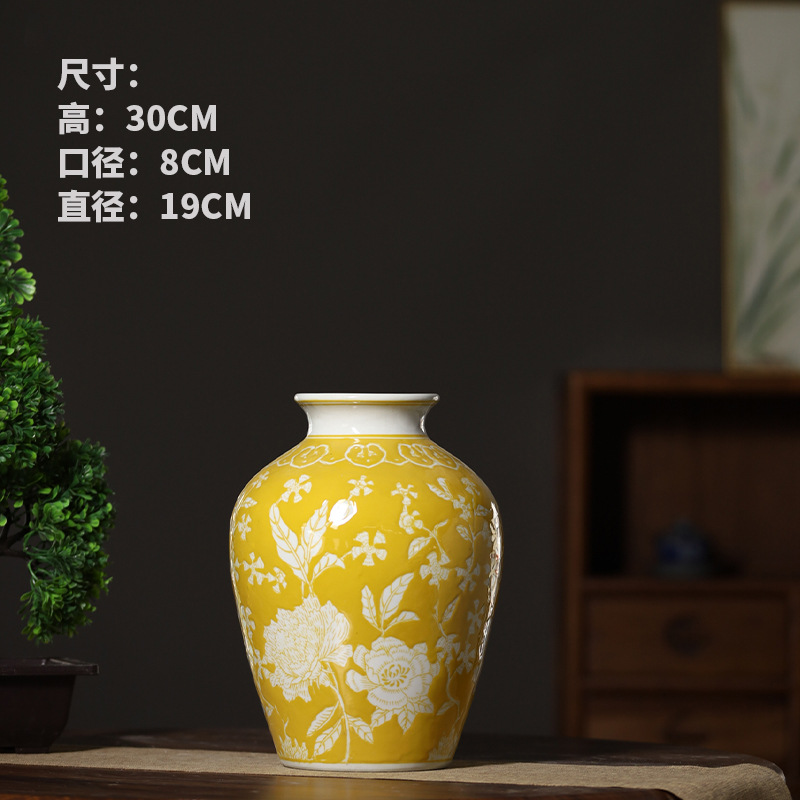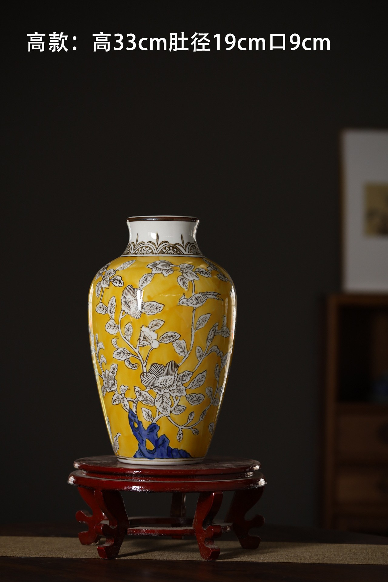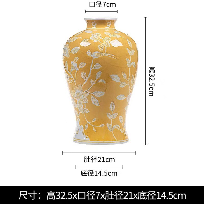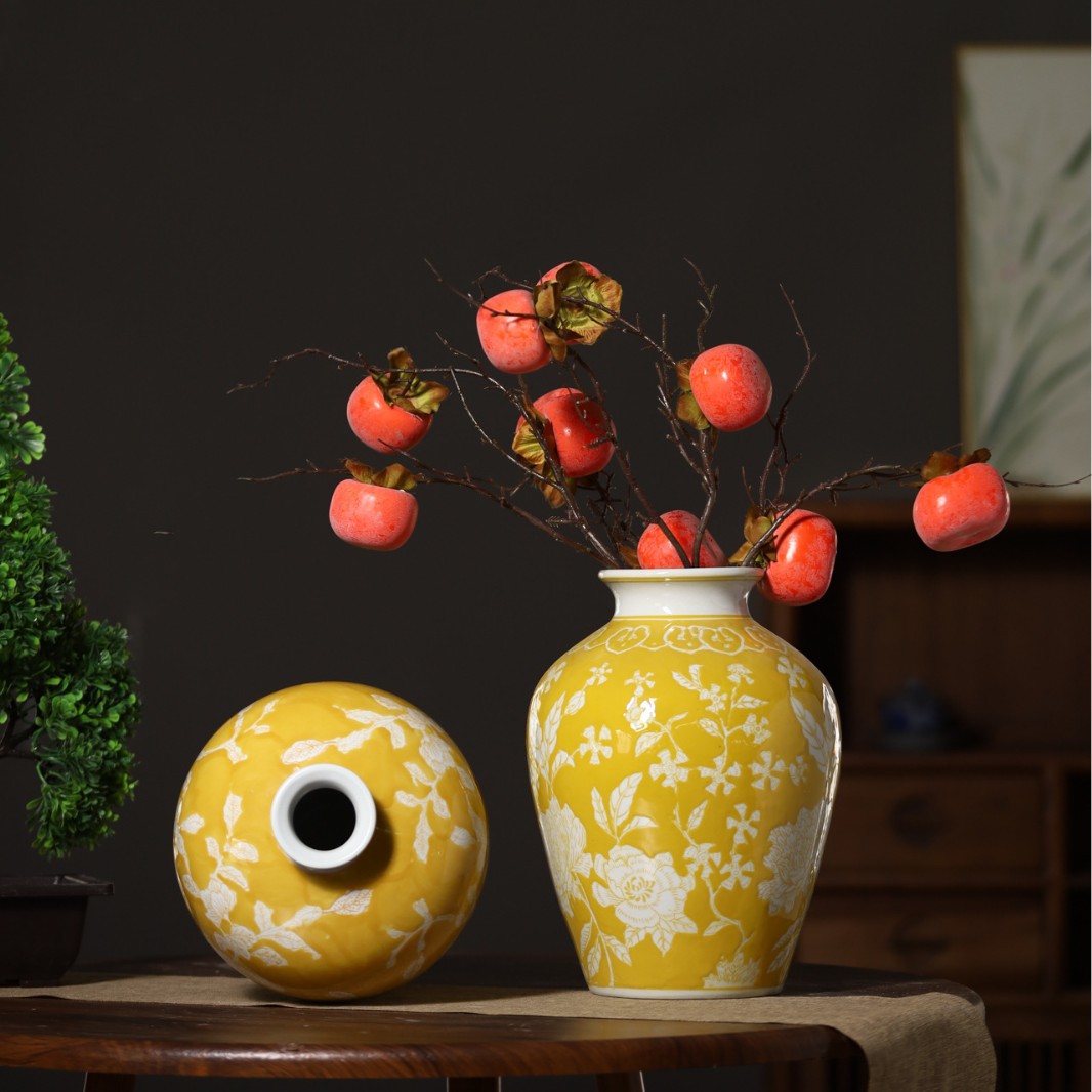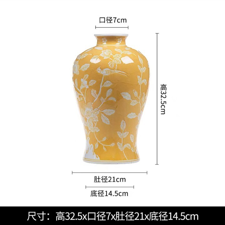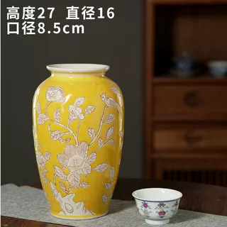 新中式陶瓷花瓶摆件玄关客厅酒店样板房软装饰品黄色花瓶花盆摆件