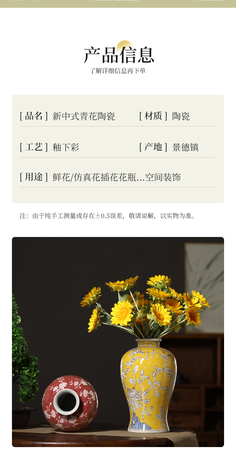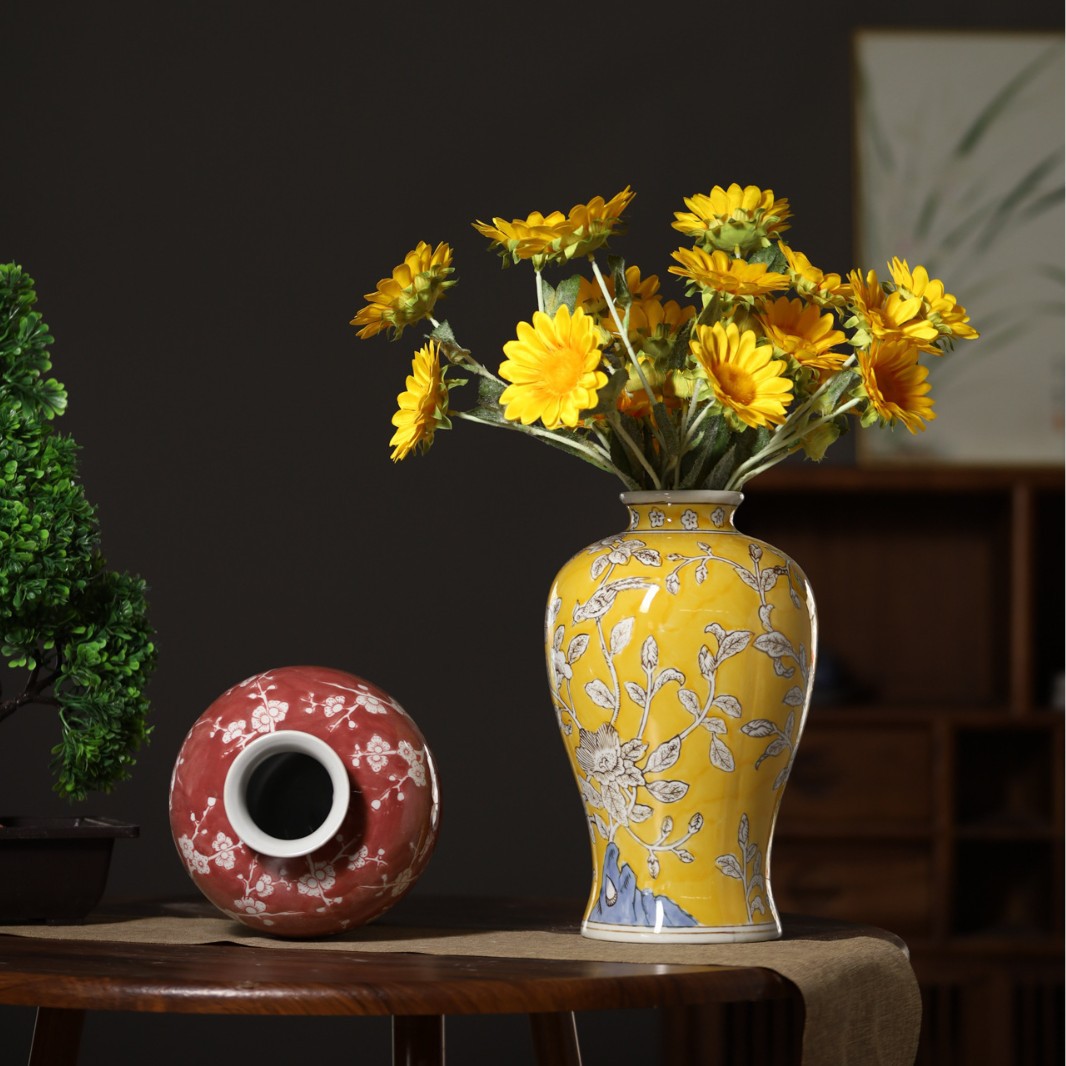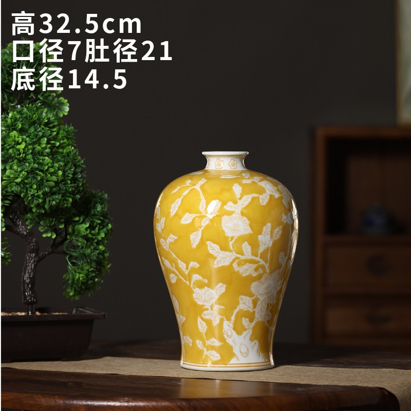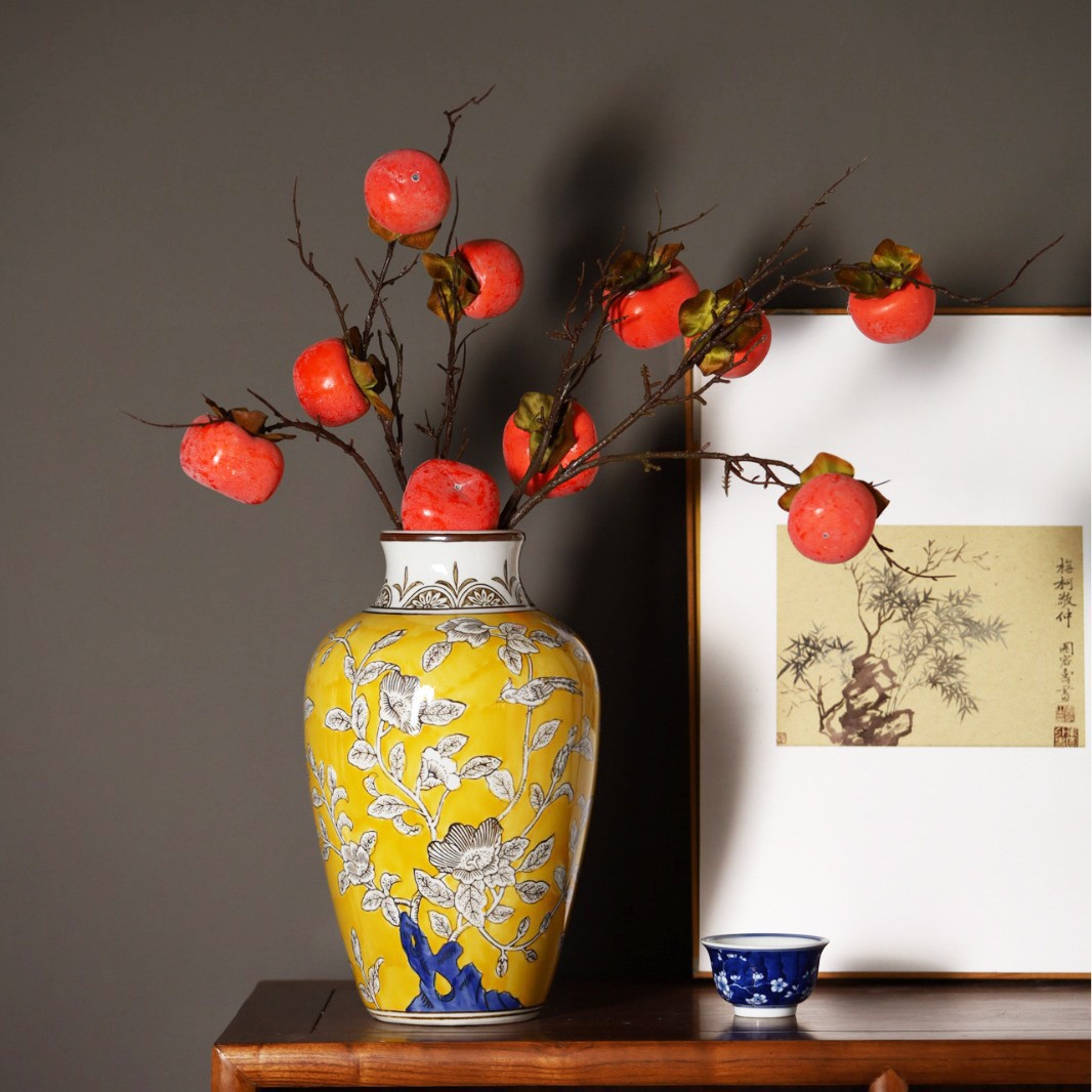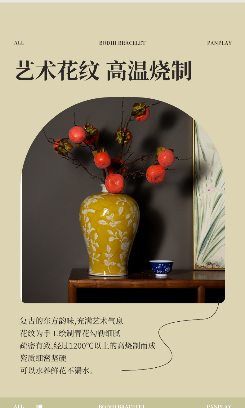 新中式陶瓷花瓶摆件玄关客厅酒店样板房软装饰品黄色花瓶花盆摆件
