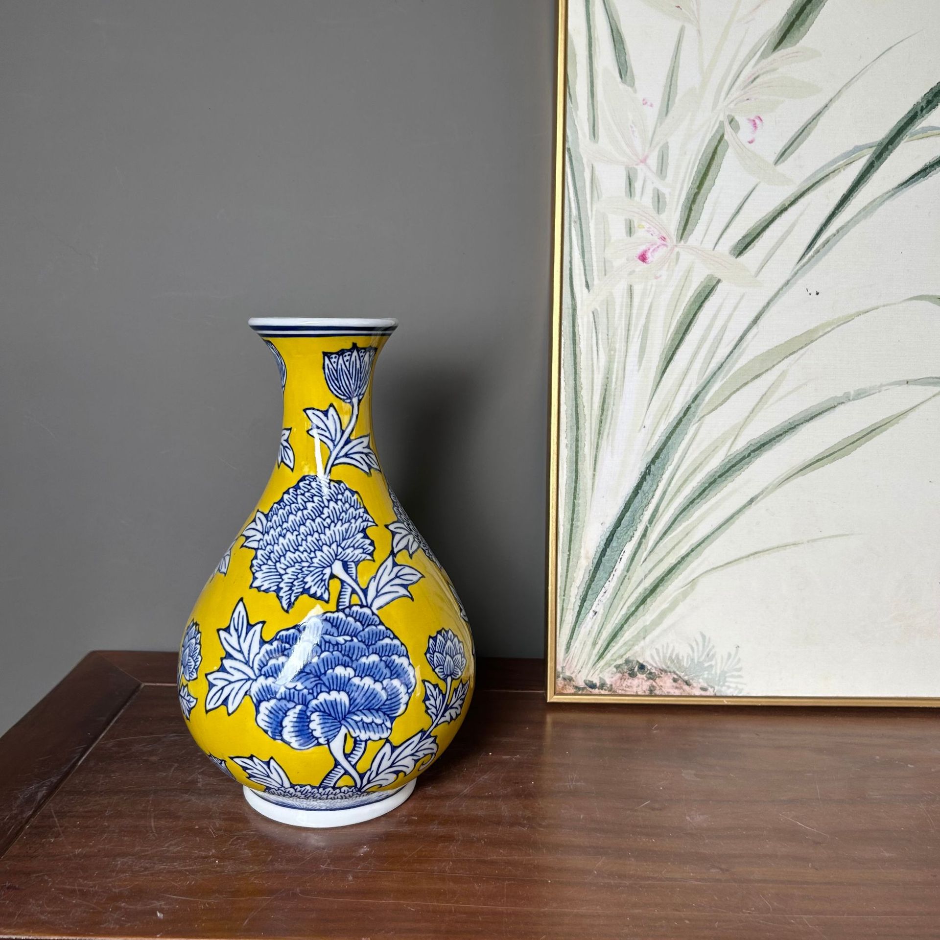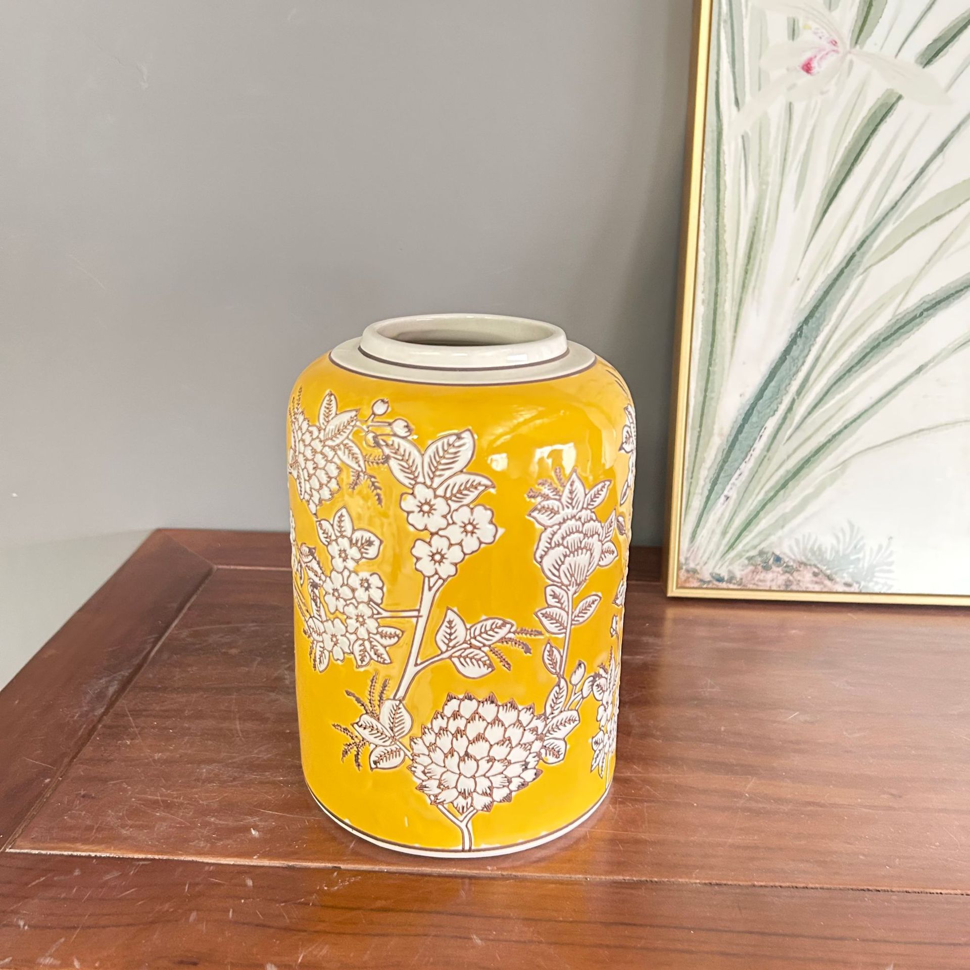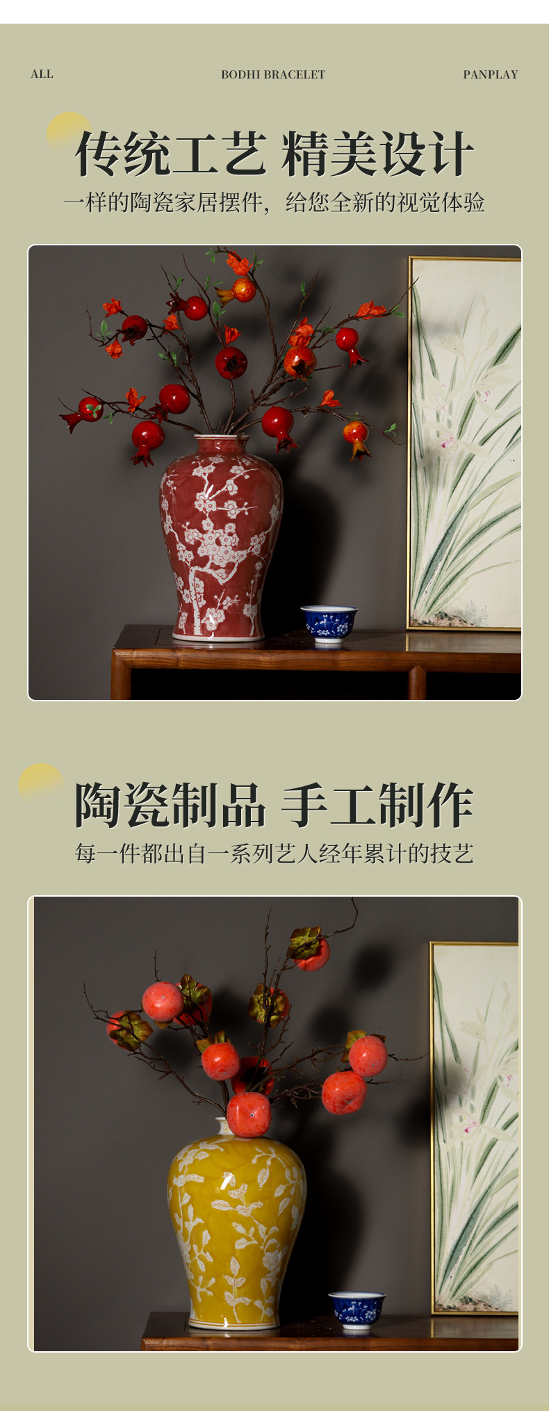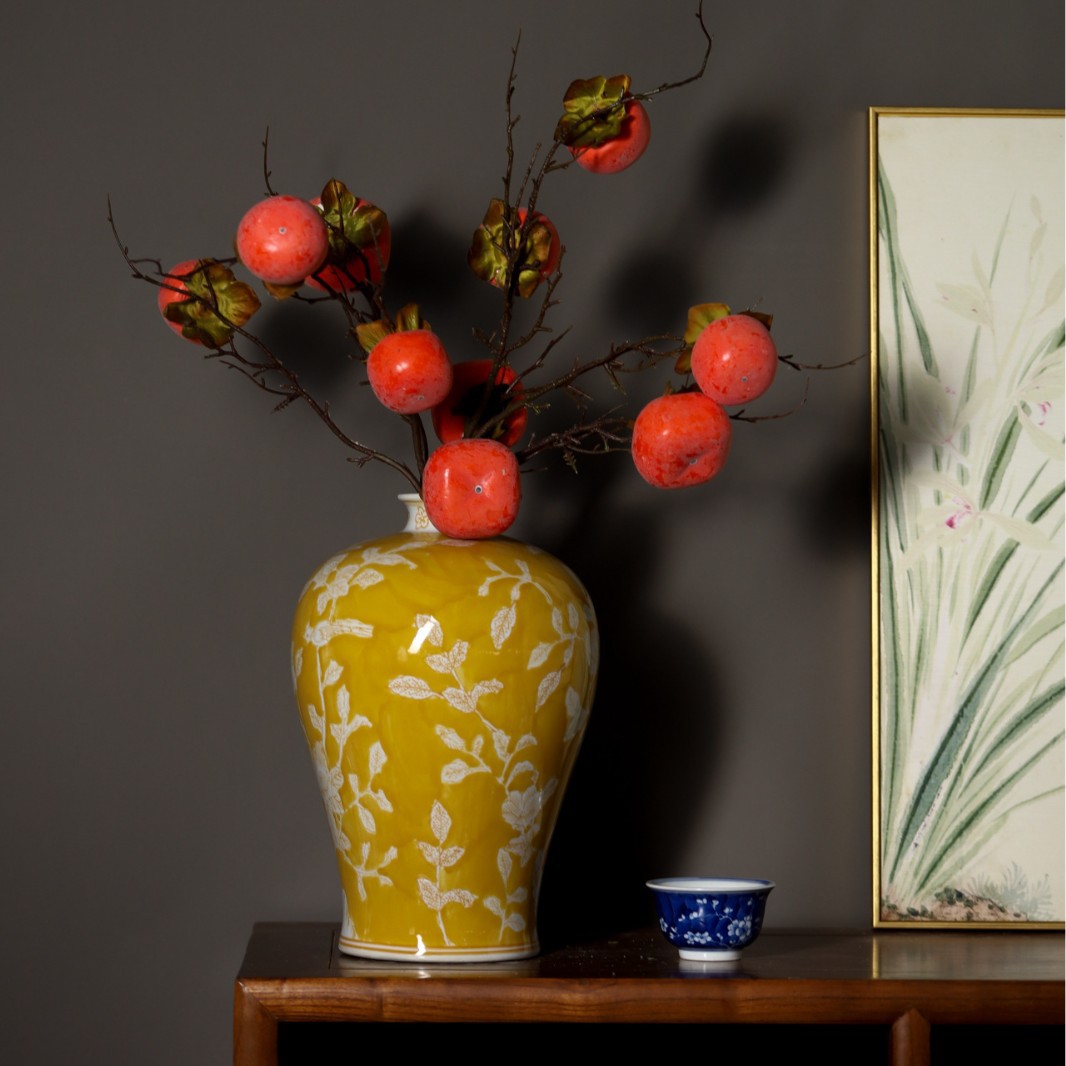 新中式陶瓷花瓶摆件玄关客厅酒店样板房软装饰品黄色花瓶花盆摆件
