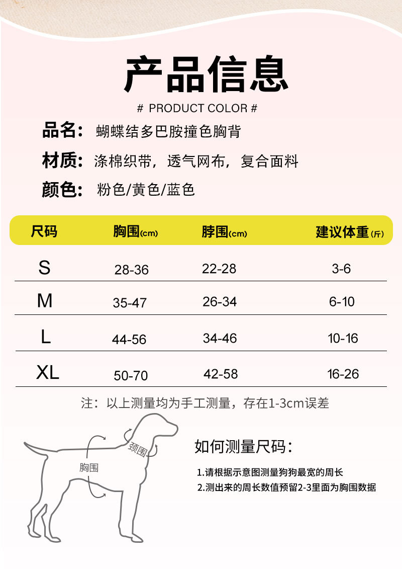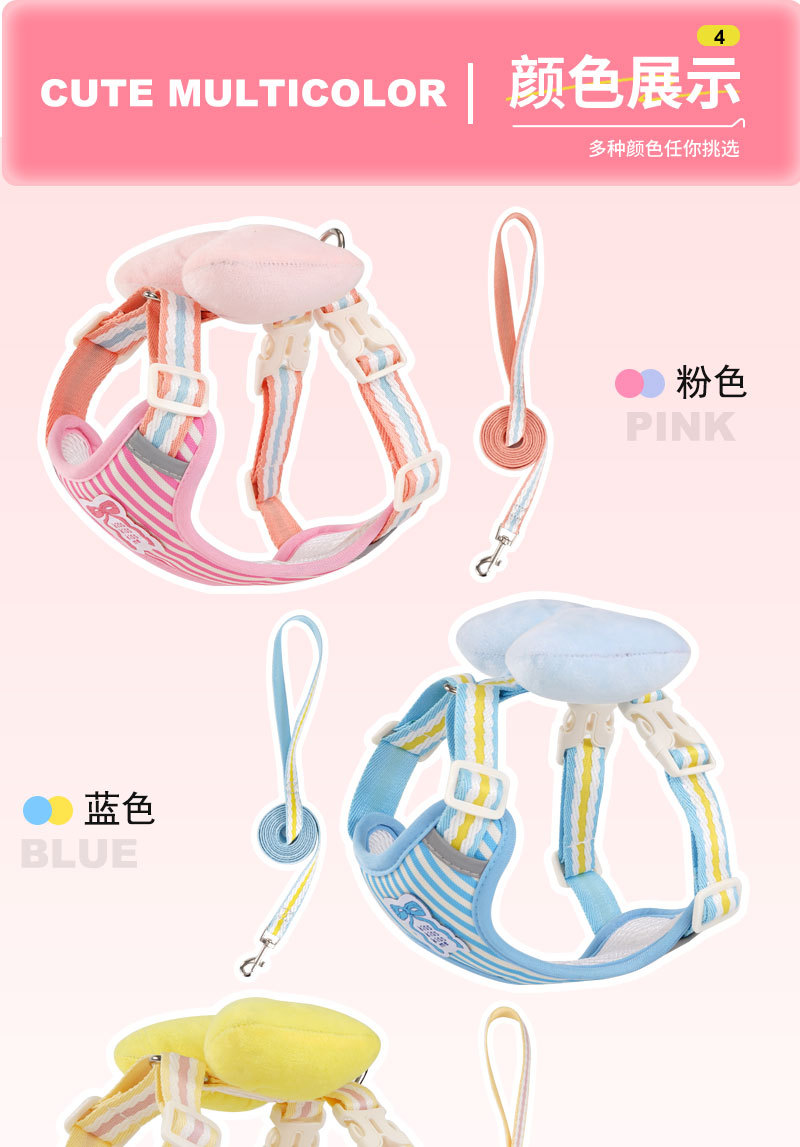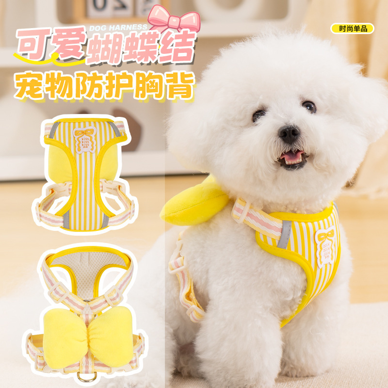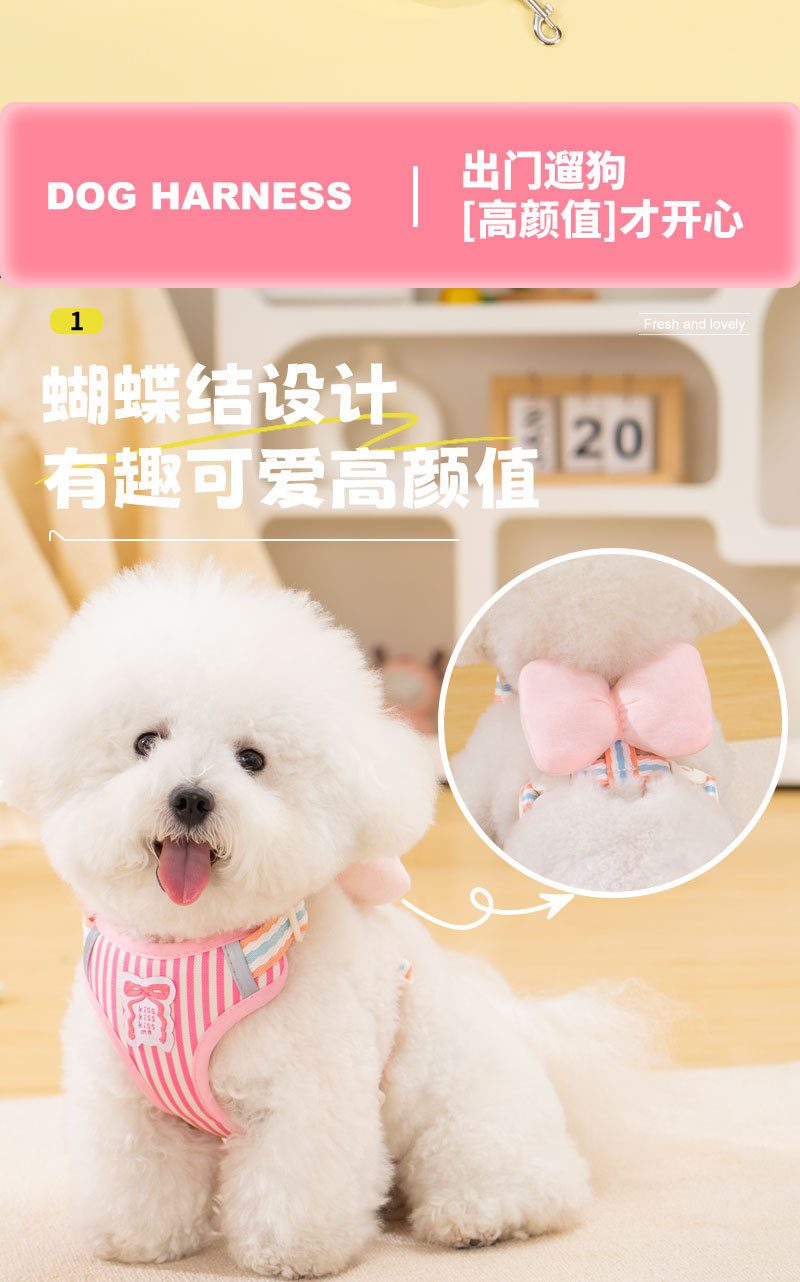 狗狗牵引绳蝴蝶结胸背带四季款小型犬不勒脖防挣脱牵引绳宠物园艺
