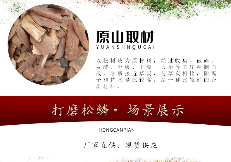 打磨松树皮园林绿化景观装饰宠物垫材马尾松樟子松松鳞打磨树皮