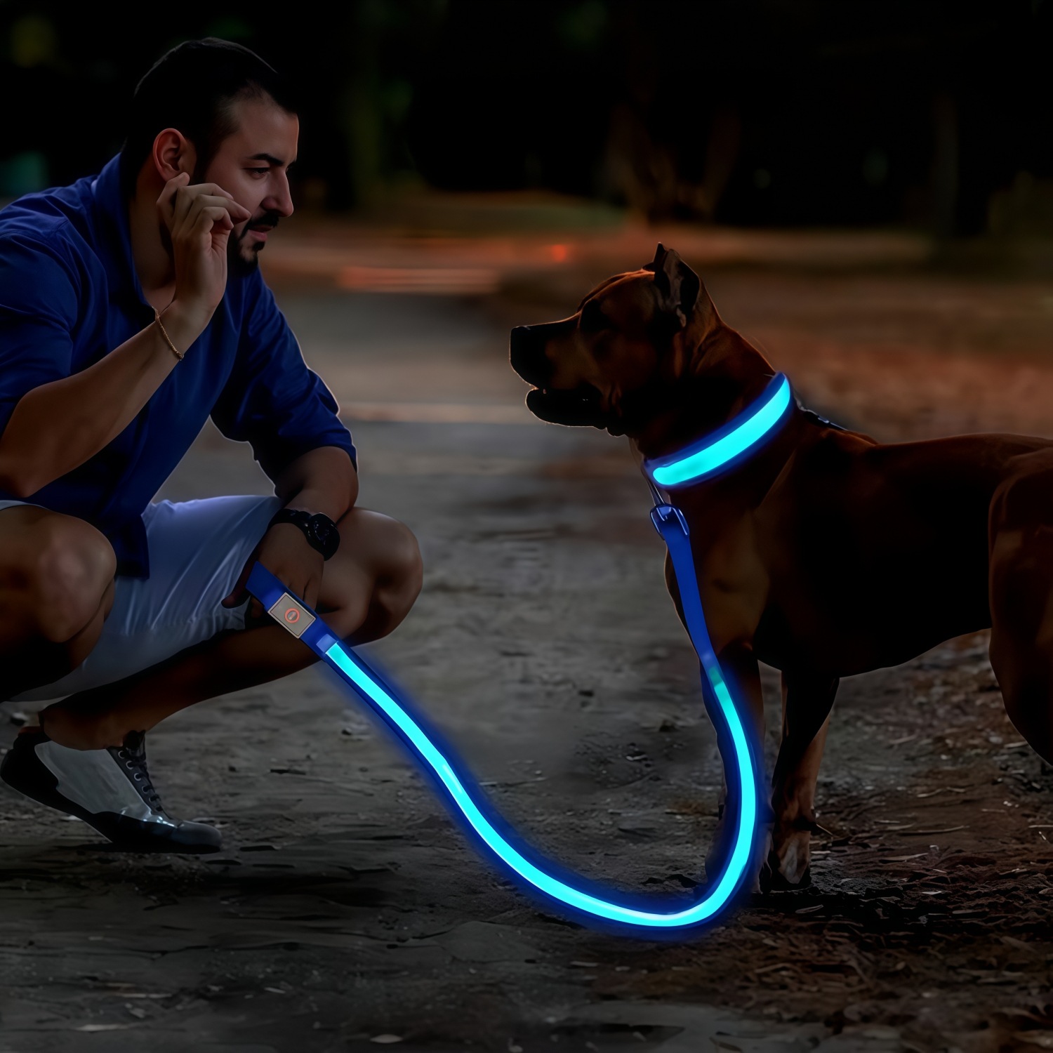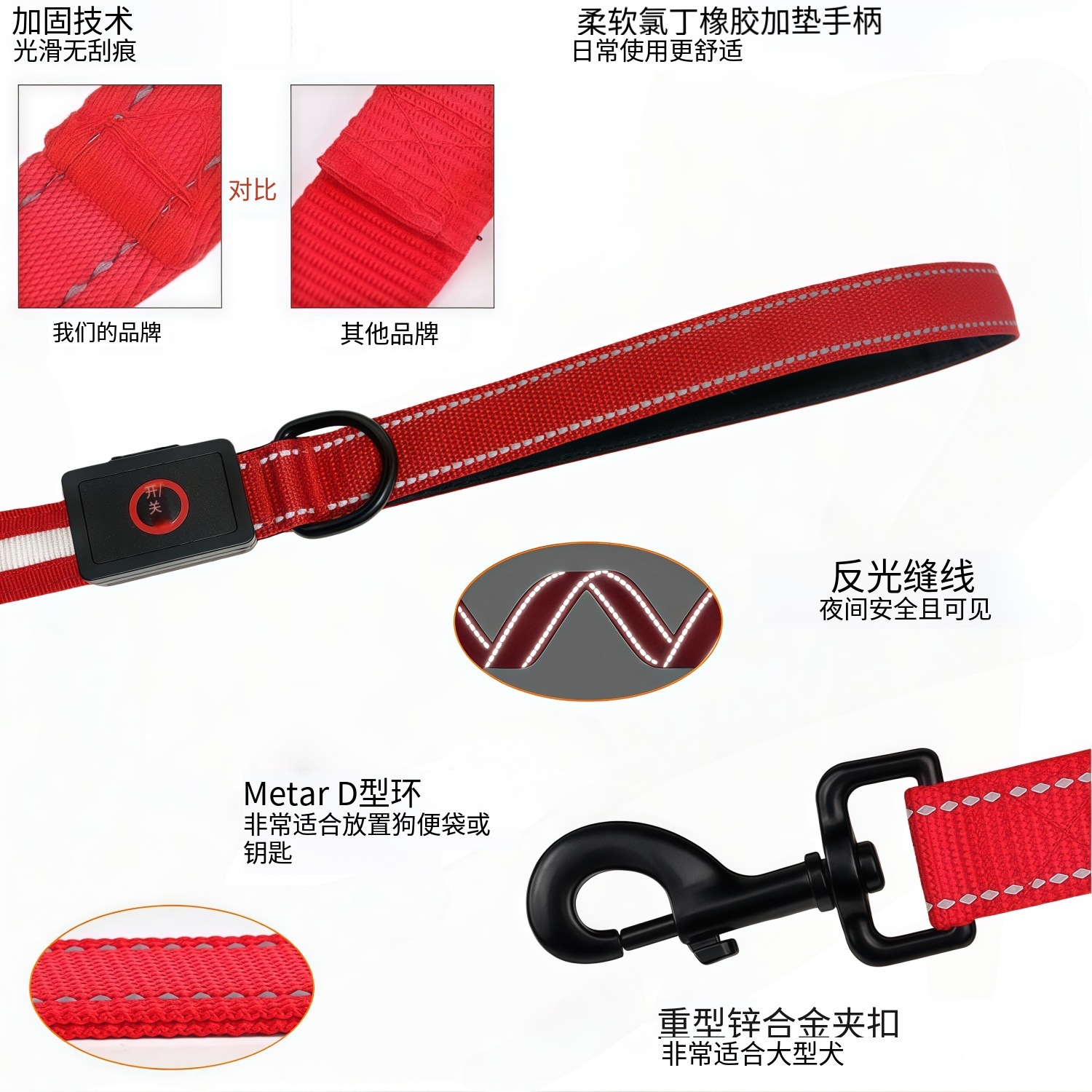 led发光狗拉带宠物牵引绳TypeC充电高亮防走丢户外遛狗宠物园艺