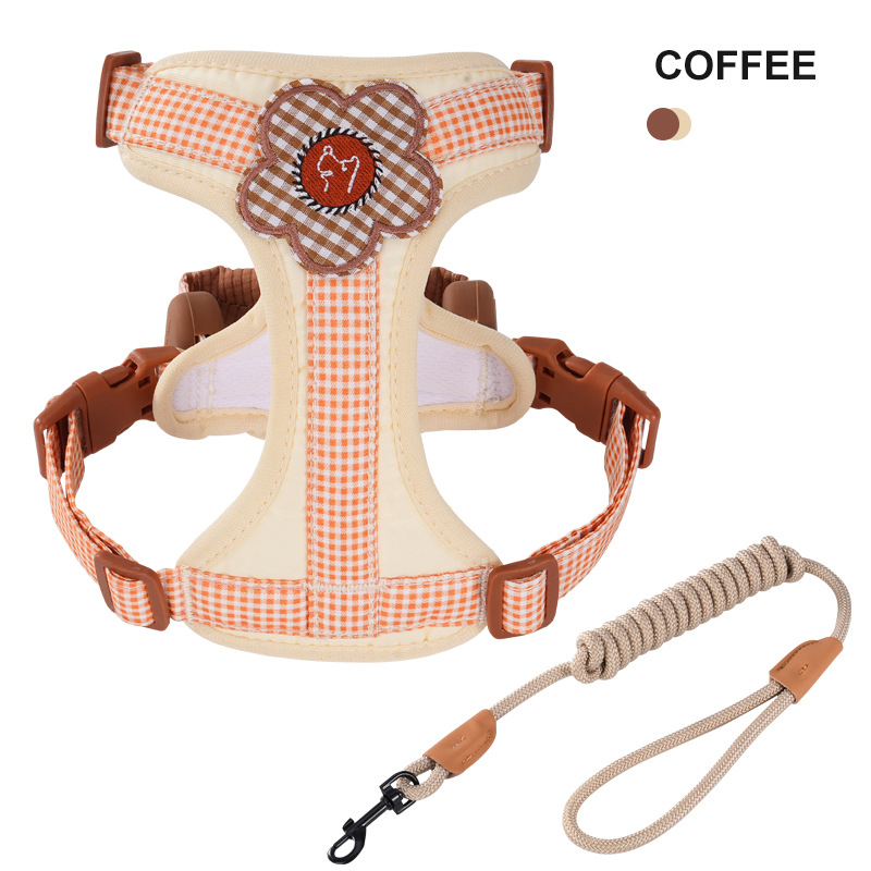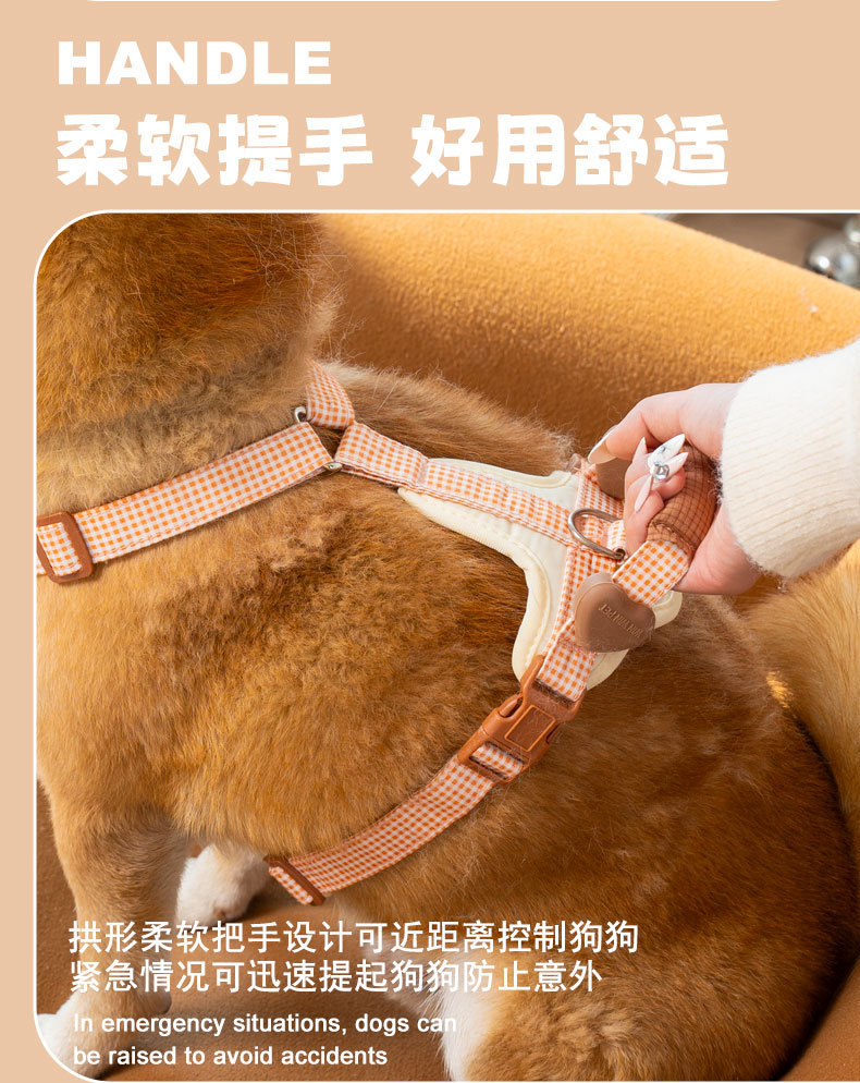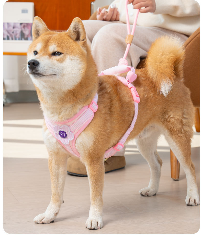 狗狗牵引绳中小型犬防爆冲胸背带柯基背心式遛狗绳宠物园艺遛狗绳