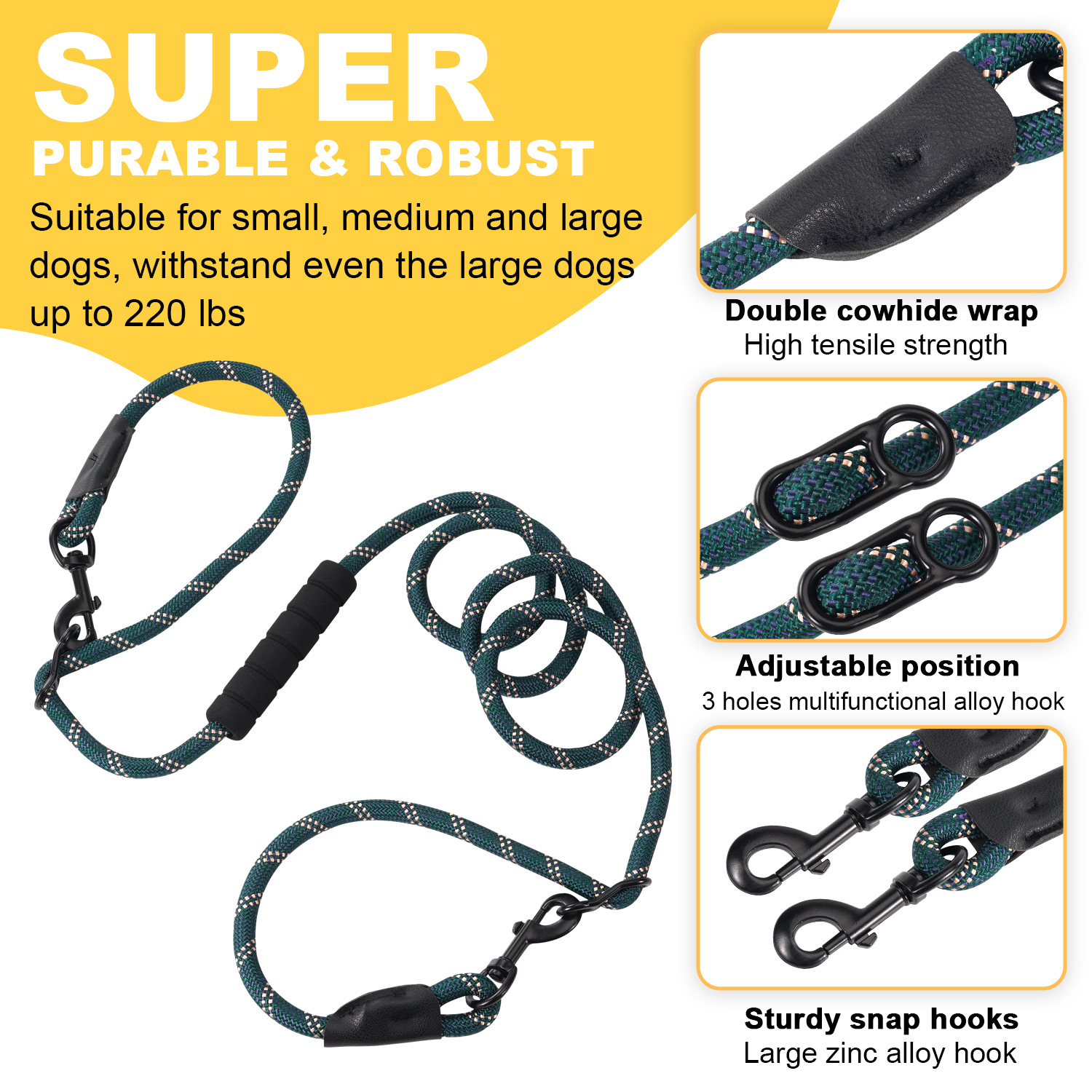 跨境狗狗牵引绳一拖二P绳双牵遛狗绳宠物牵引绳小中大型宠物园艺