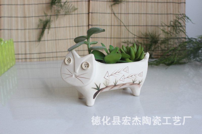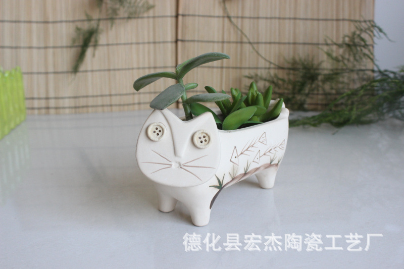 陶瓷多肉花盆粗陶猫咪多肉动物多肉盆4534园艺陶土绿植园艺必备