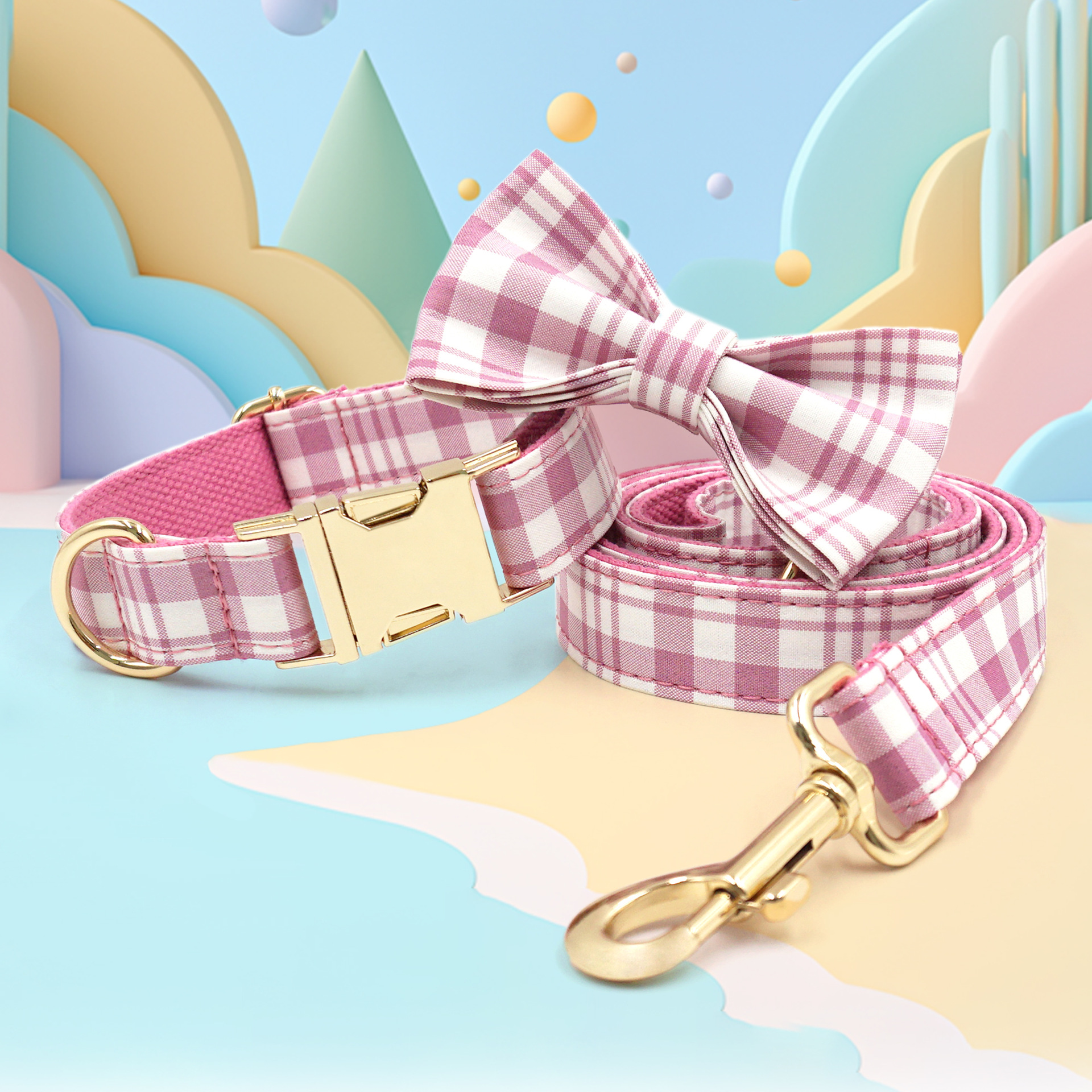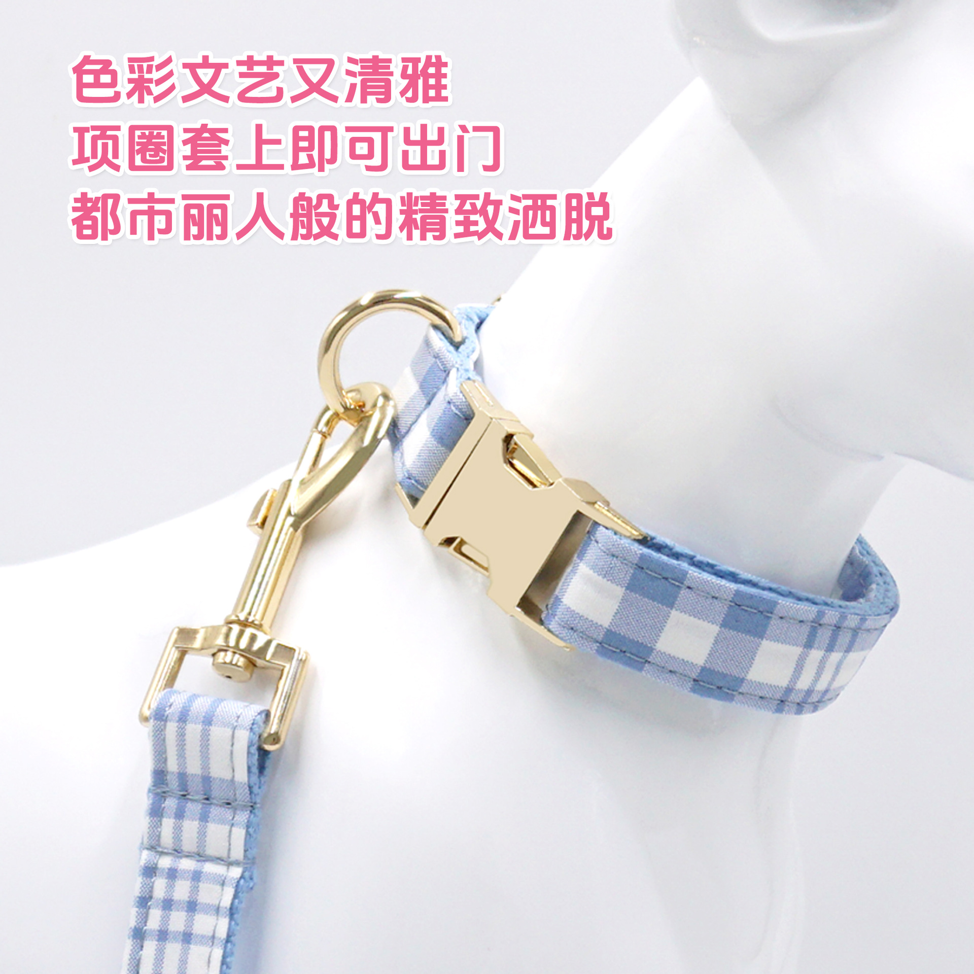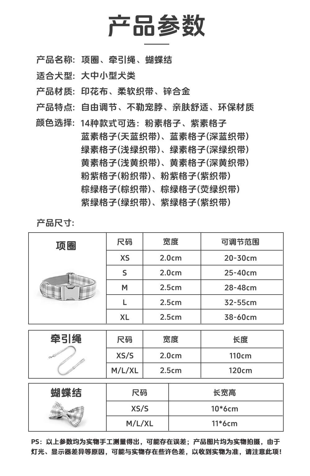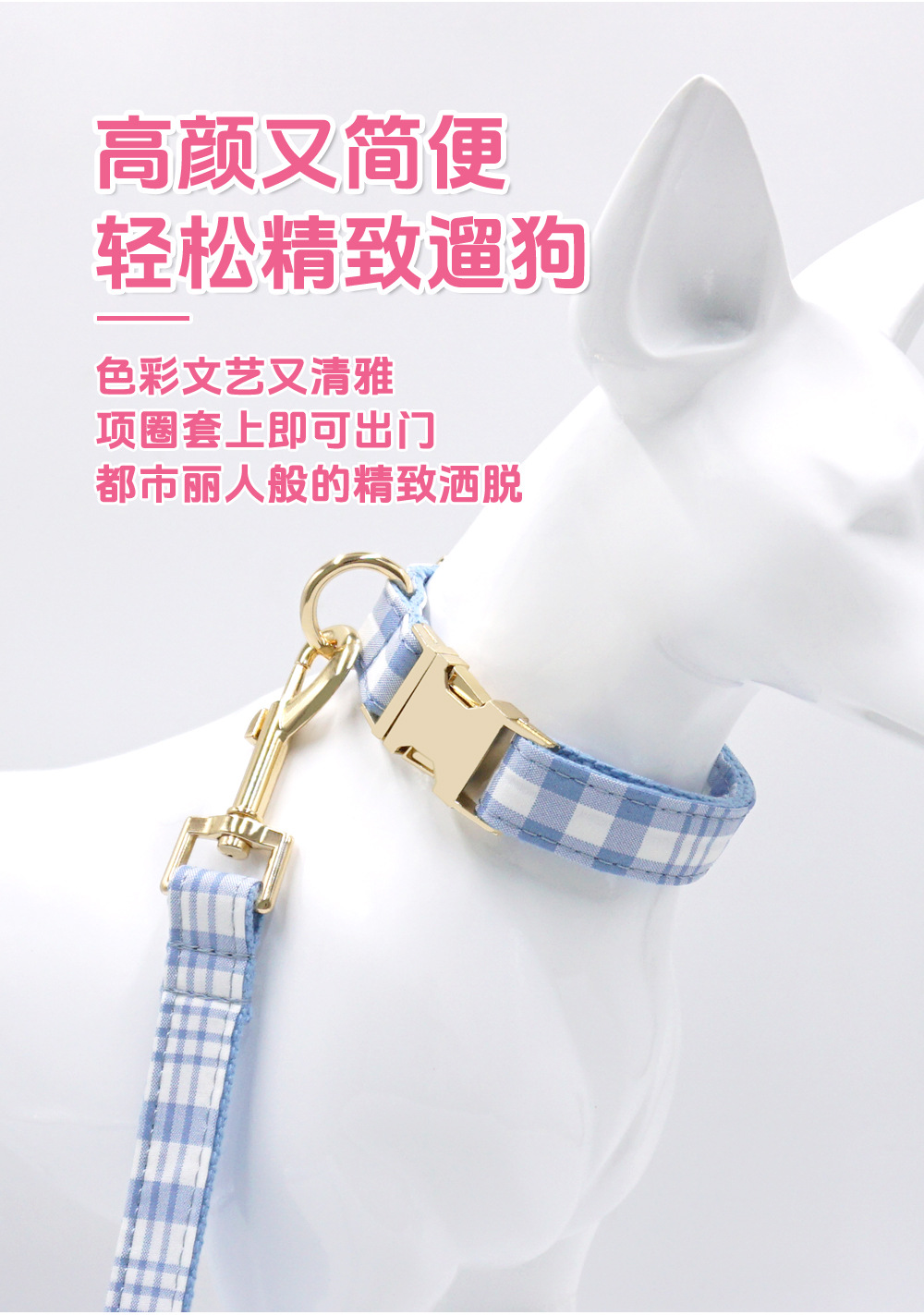 格子宠物牵引套装 跨境狗狗牵引绳宠物项圈 狗狗项圈牵引绳狗绳