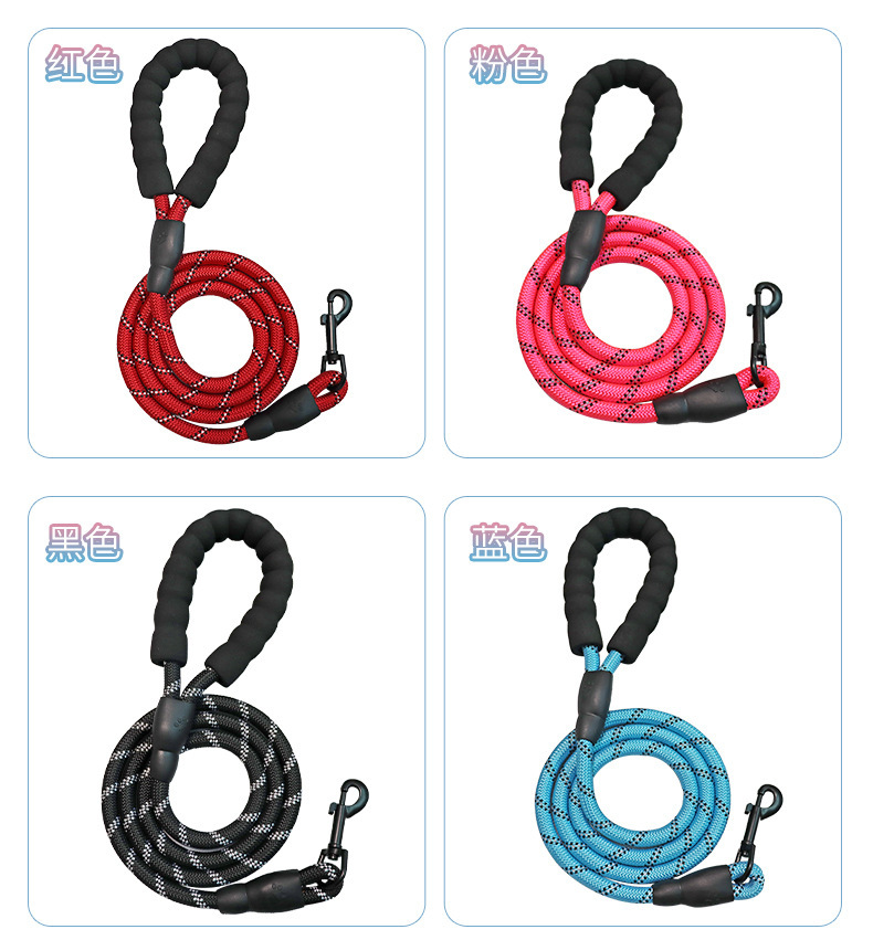 跨境专供反光圆绳狗链子牵狗绳不勒手牵引带宠物牵引绳防爆冲狗绳