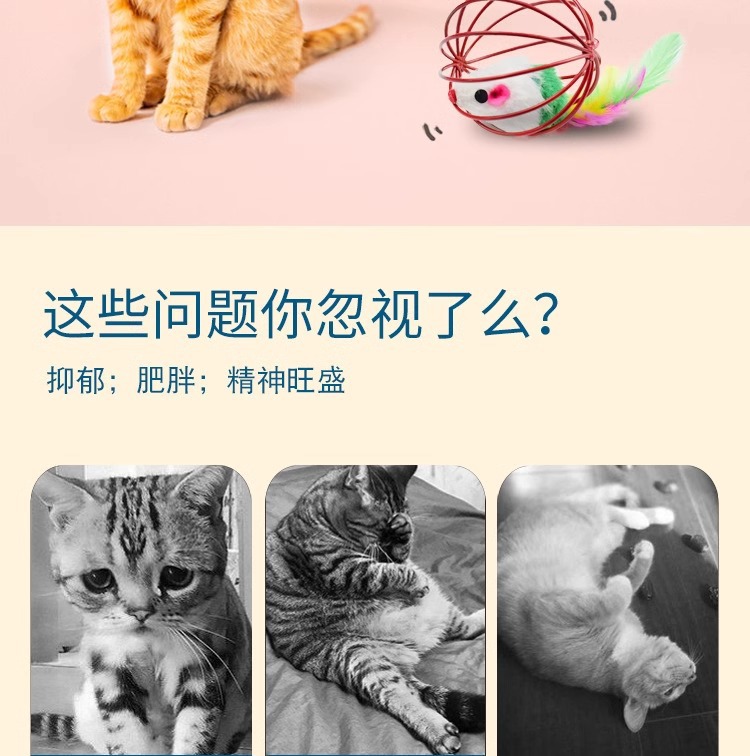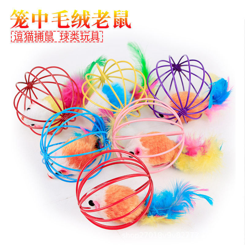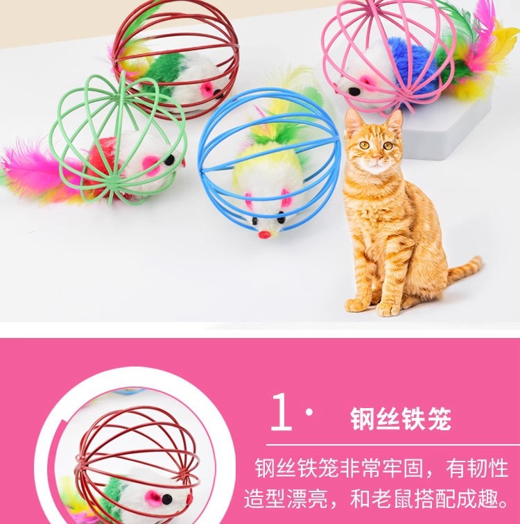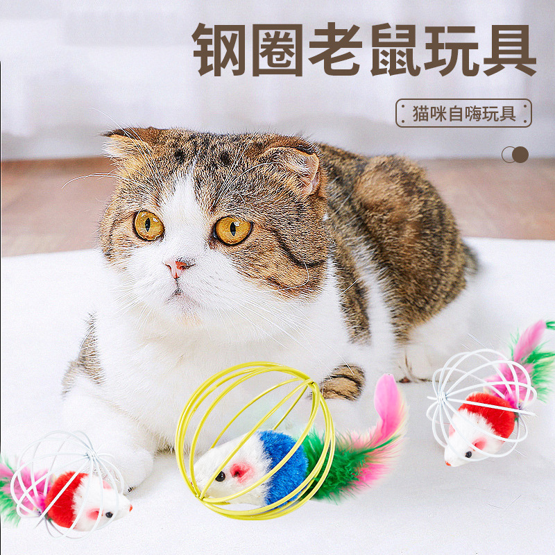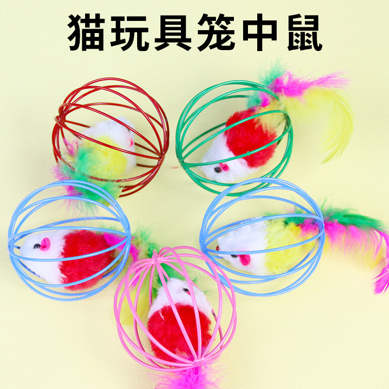猫咪玩具笼中鼠逗猫自嗨玩具互动猫咪宠物毛绒老鼠笼中鼠