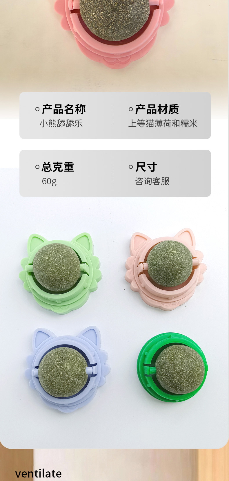 猫薄荷球旋转球猫薄荷球自嗨猫咪薄荷球玩具贴墙舔舔乐宠物玩具
