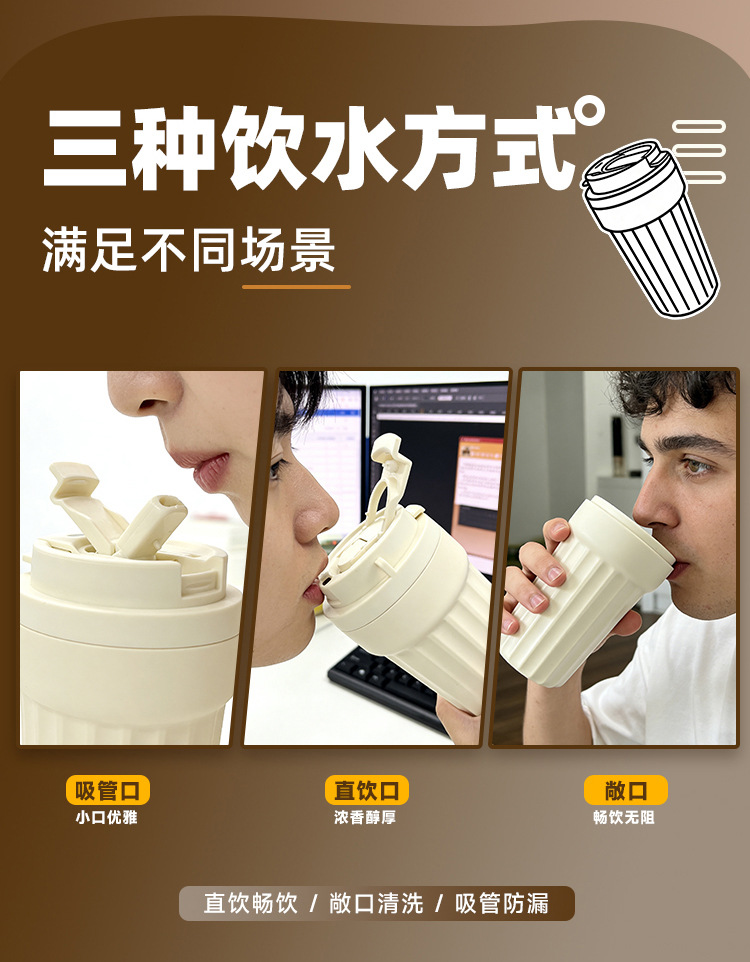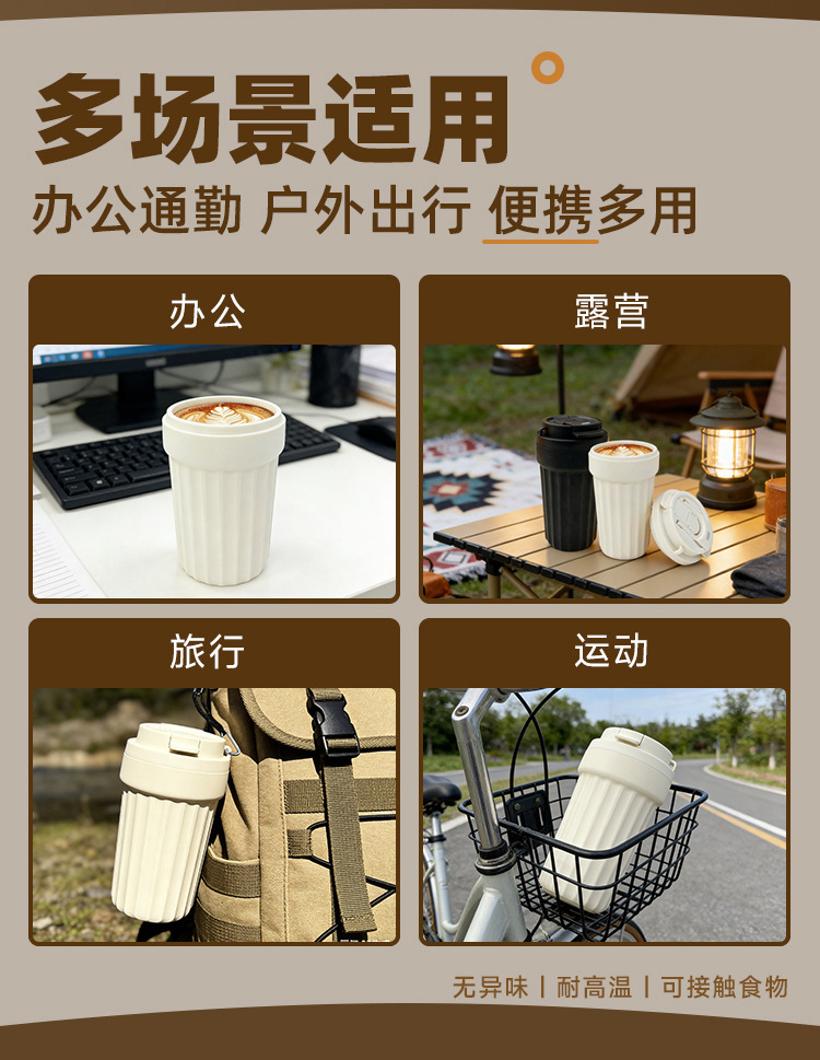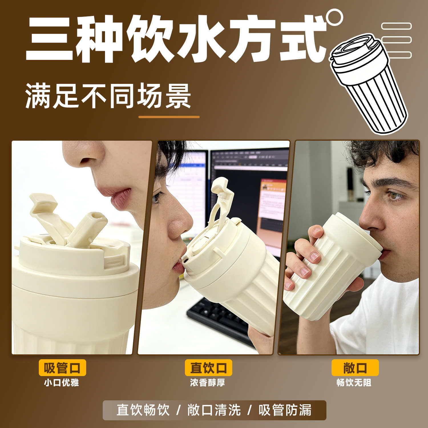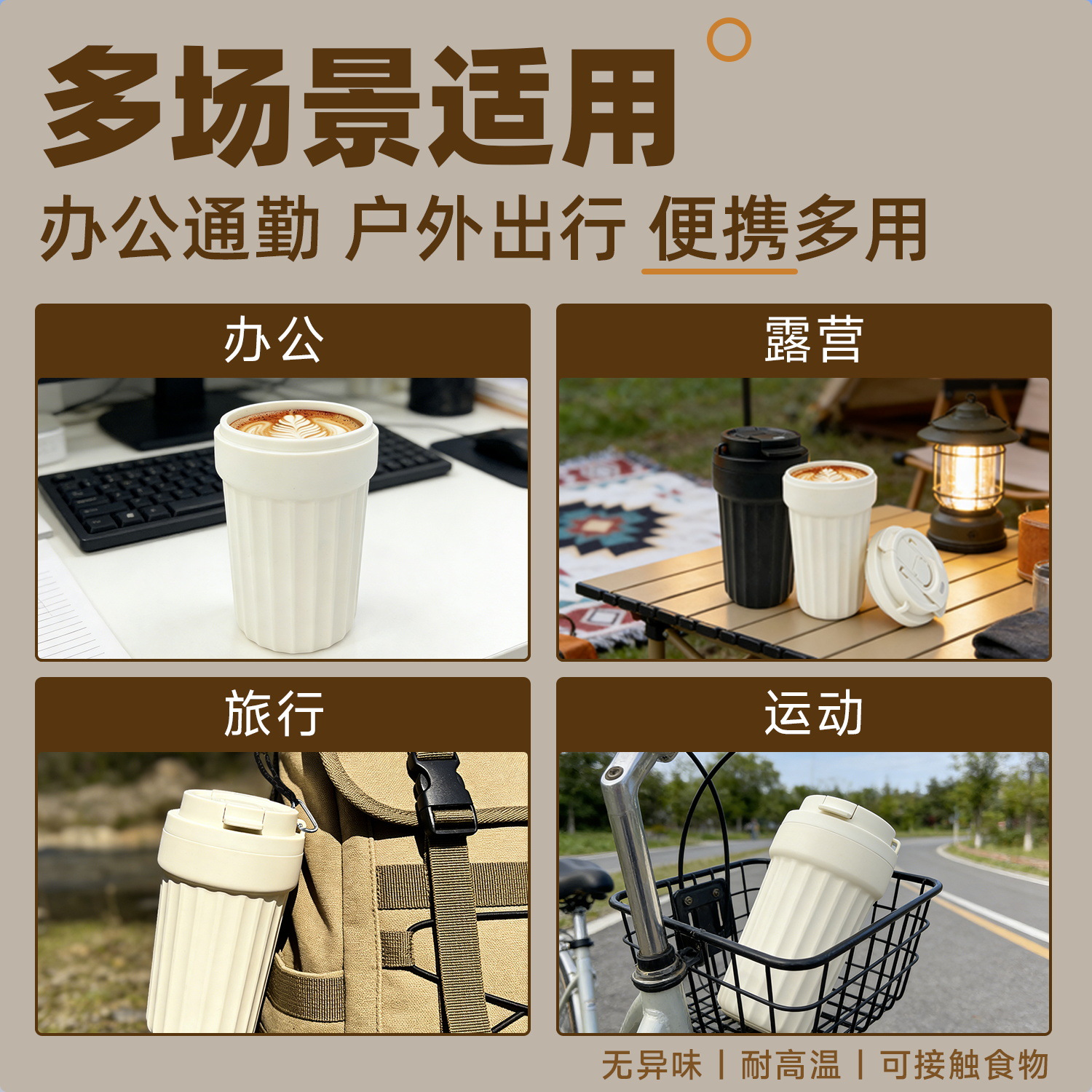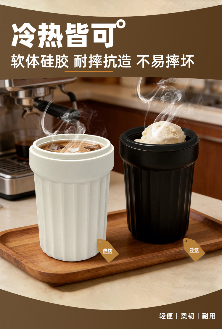 跨境新款批发食品级硅胶双饮直筒咖啡杯高颜值提绳户外随行水杯子