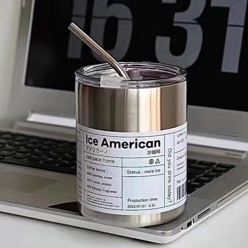 冰美式咖啡杯304不锈钢保温杯高颜值ins随手杯便携随行水杯吸管杯