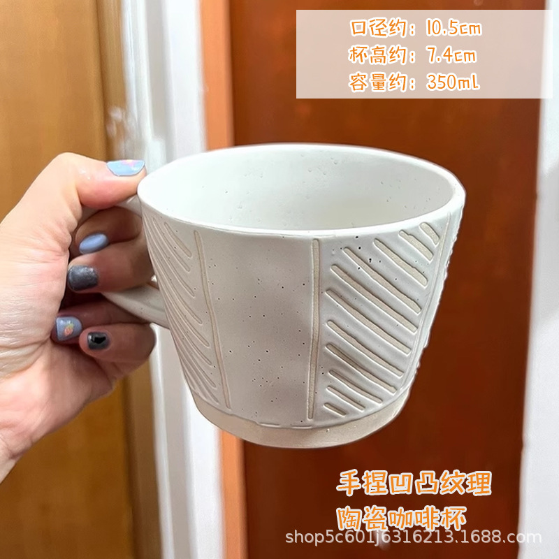 美式手冲咖啡杯子高颜值陶瓷马克杯好看的家用大口径手捏凹凸水杯