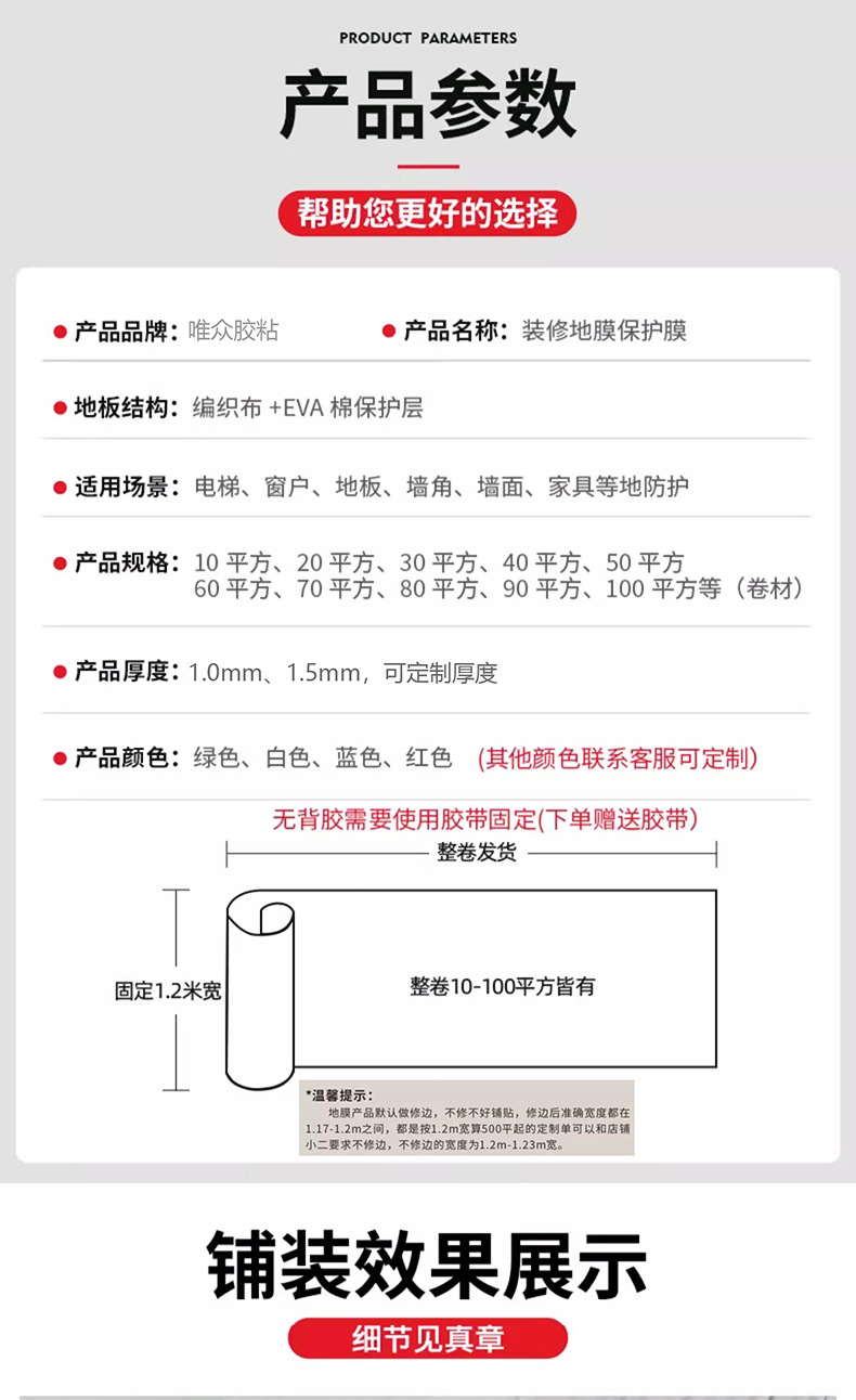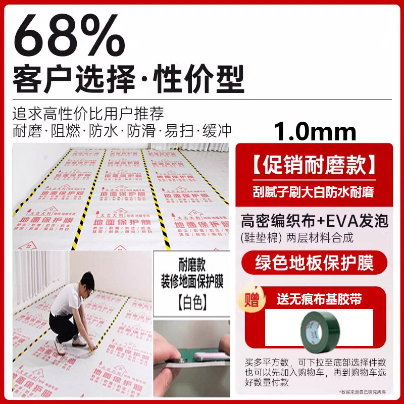 装修地面保护膜地砖瓷砖木地板防护垫加厚耐磨地膜家装一次性铺地