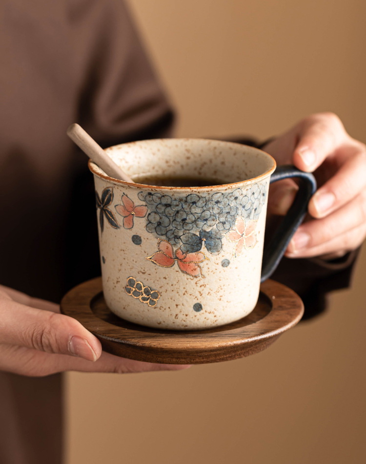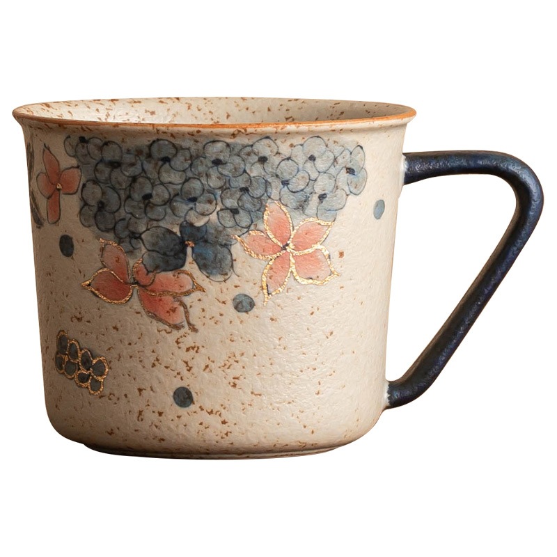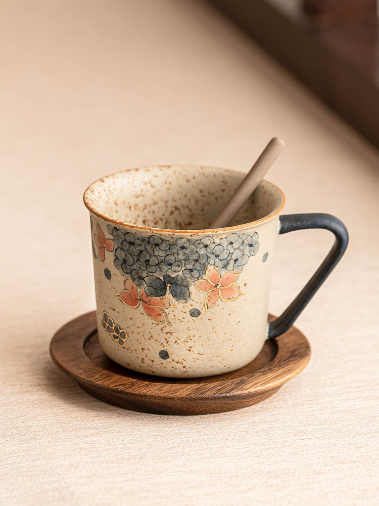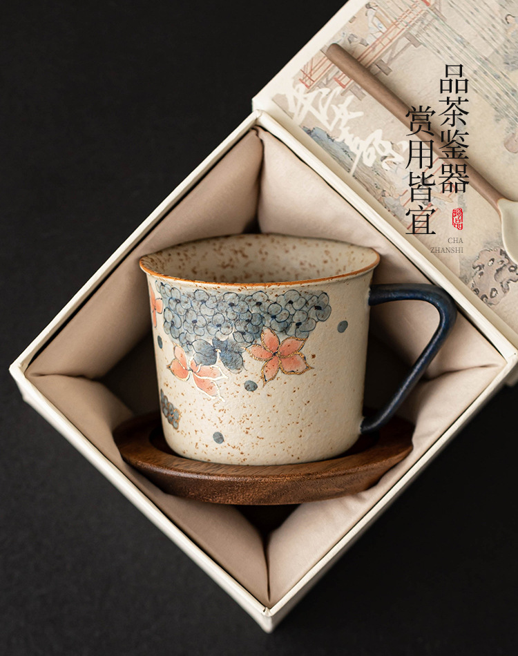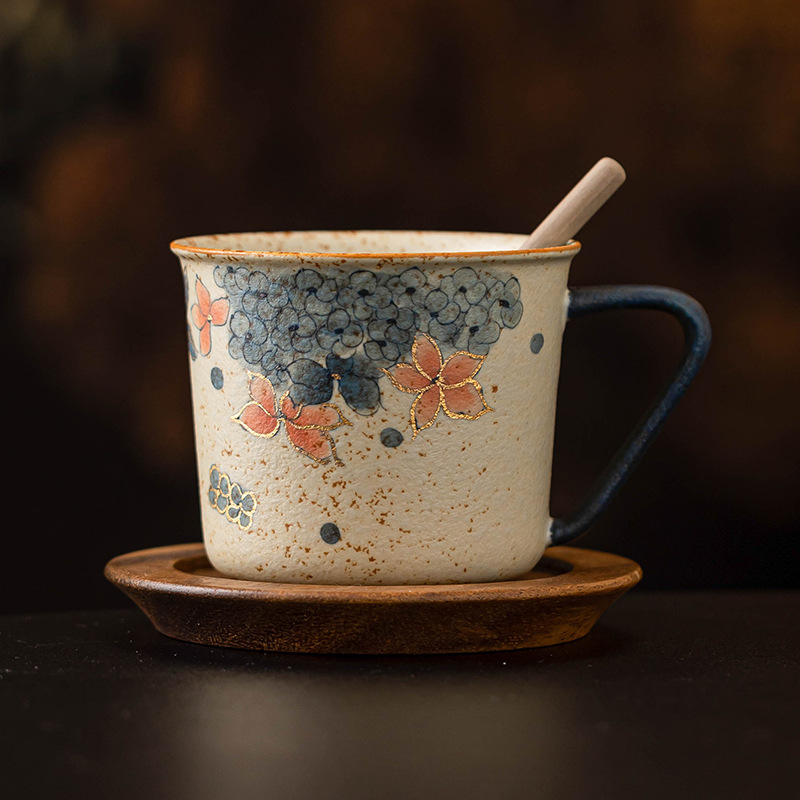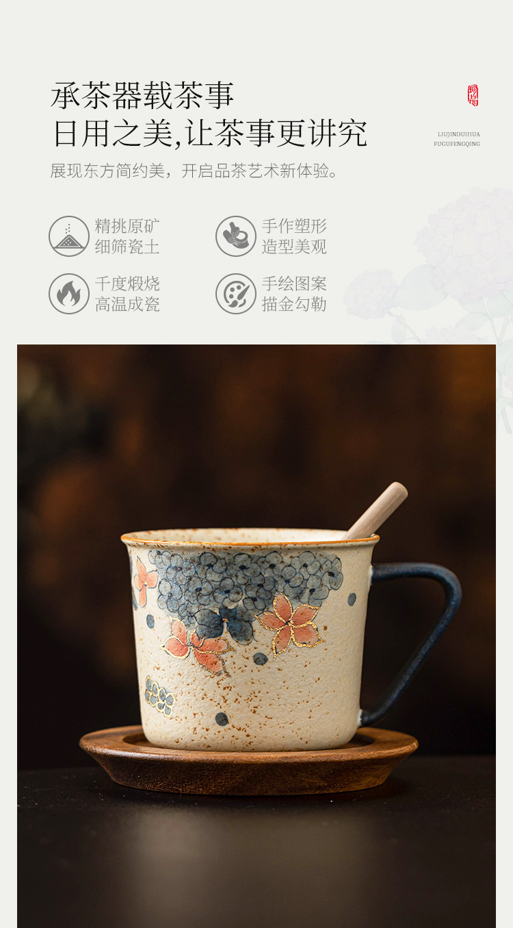 青花火石红咖啡杯描金绣球花拿铁拉花杯子家用高档精致马克杯水杯