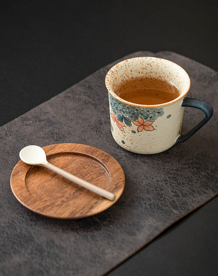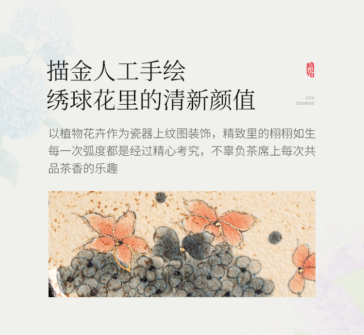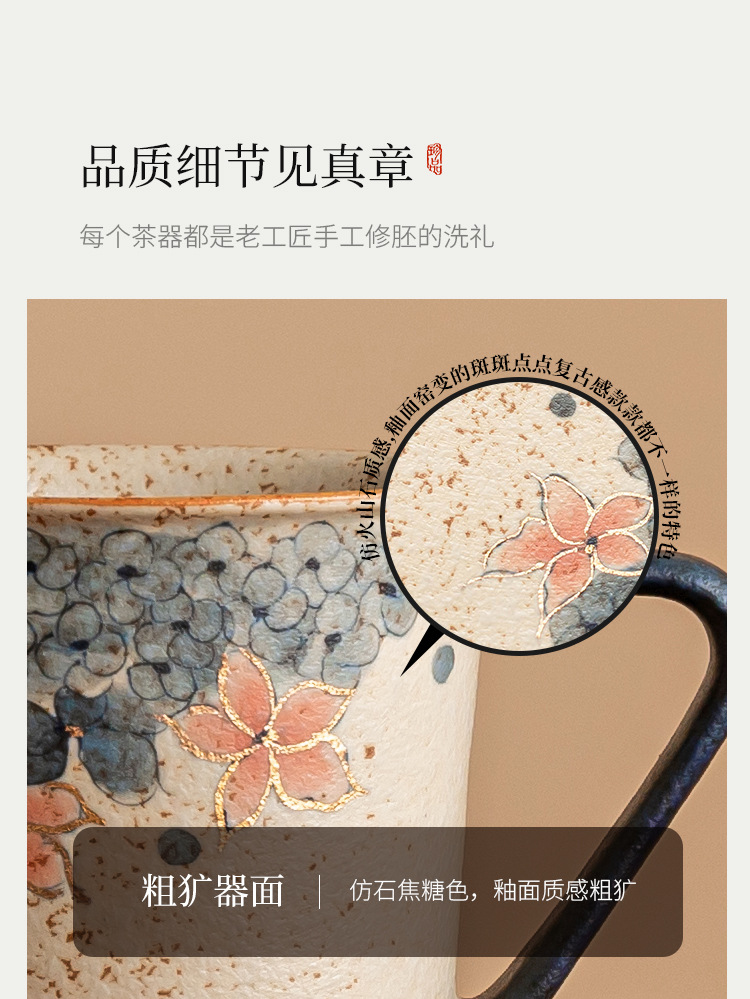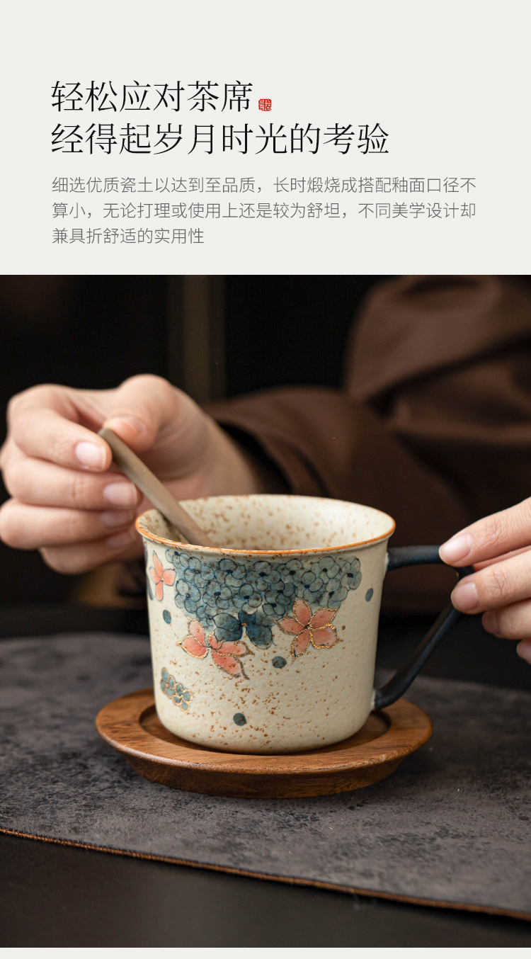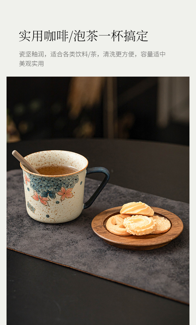 青花火石红咖啡杯描金绣球花拿铁拉花杯子家用高档精致马克杯水杯