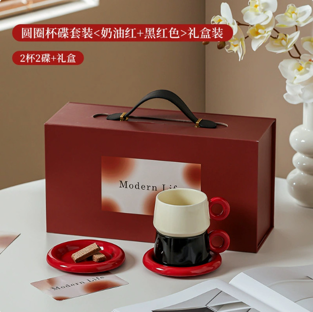 结婚礼物陶瓷咖啡杯套装 送闺蜜伴手礼 小众情侣杯子高级感一对