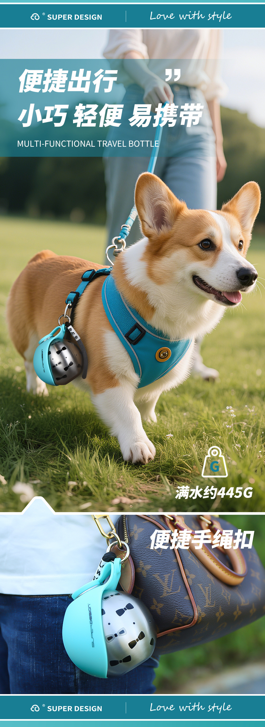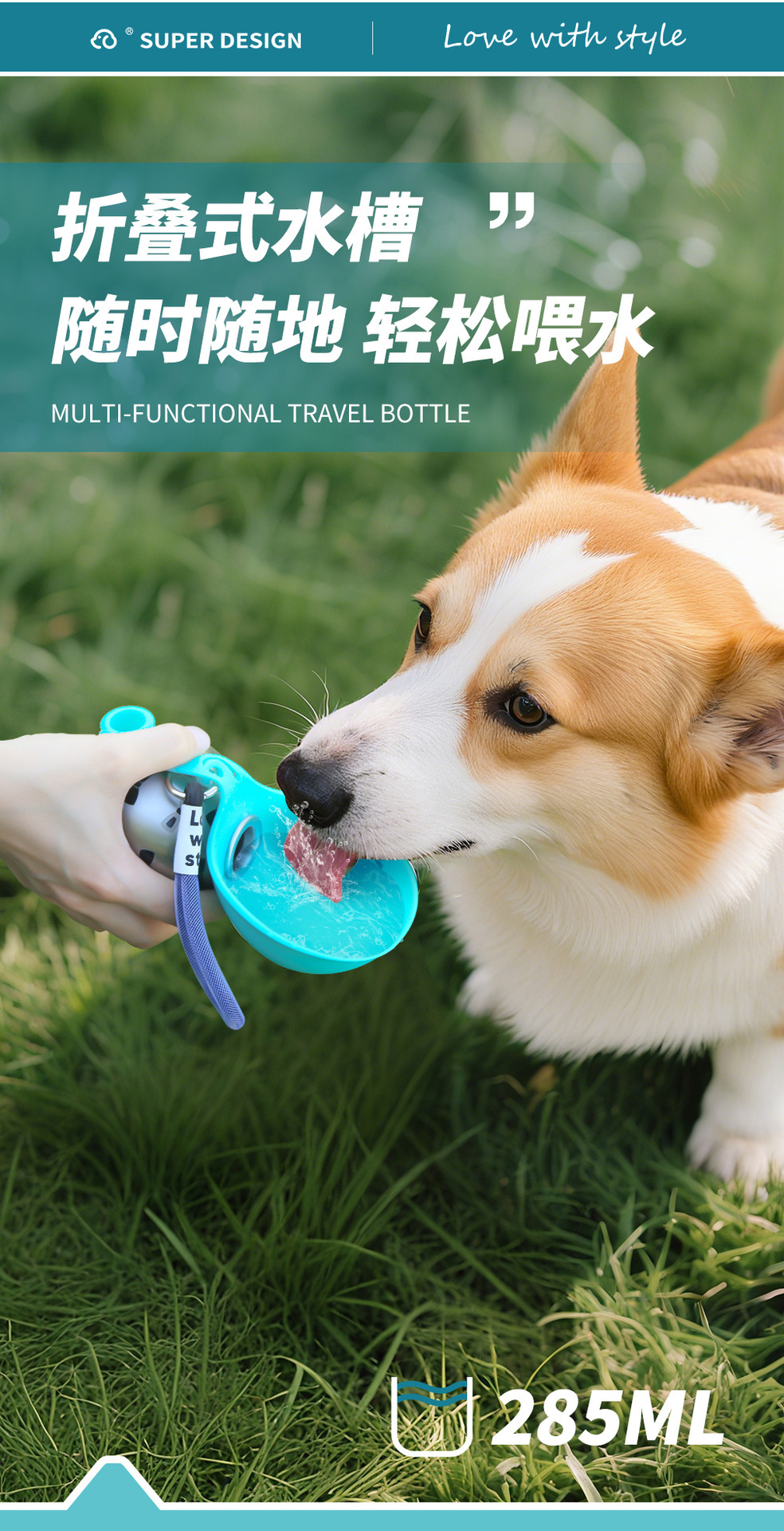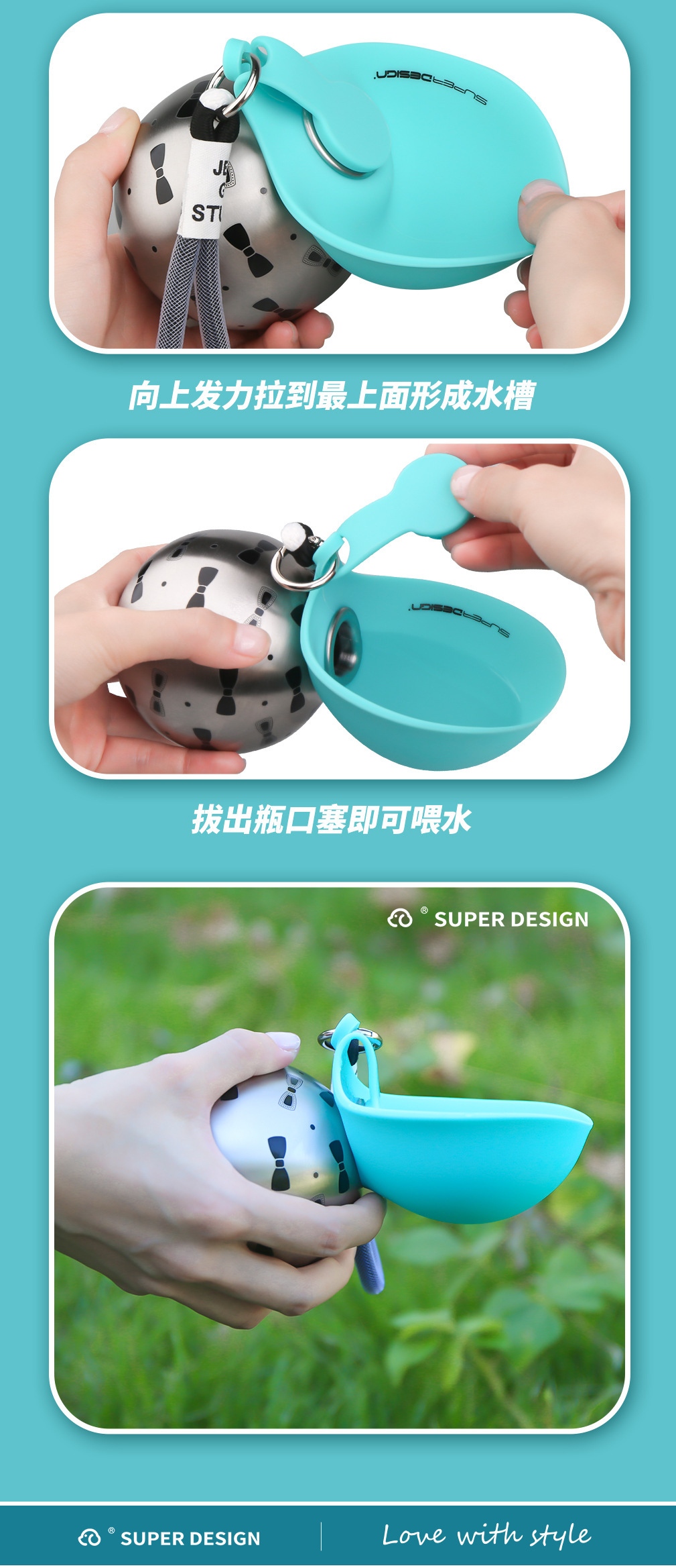 休普户外便携饮水器可折叠猫咪遛狗喂水随行杯304不锈钢宠物水壶
