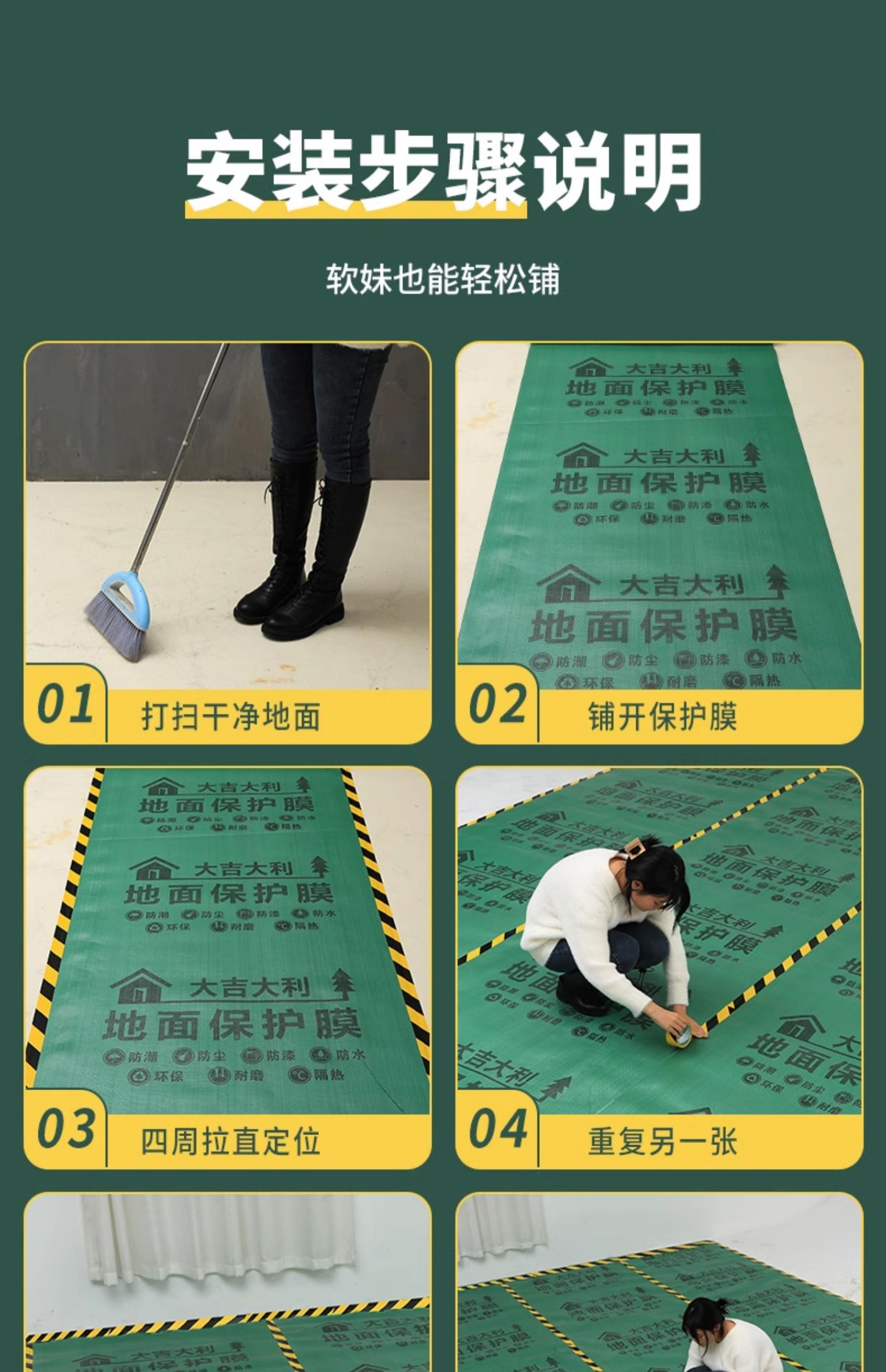 装修地面保护膜地砖瓷砖木地板防护垫加厚耐磨地膜家装一次性铺地