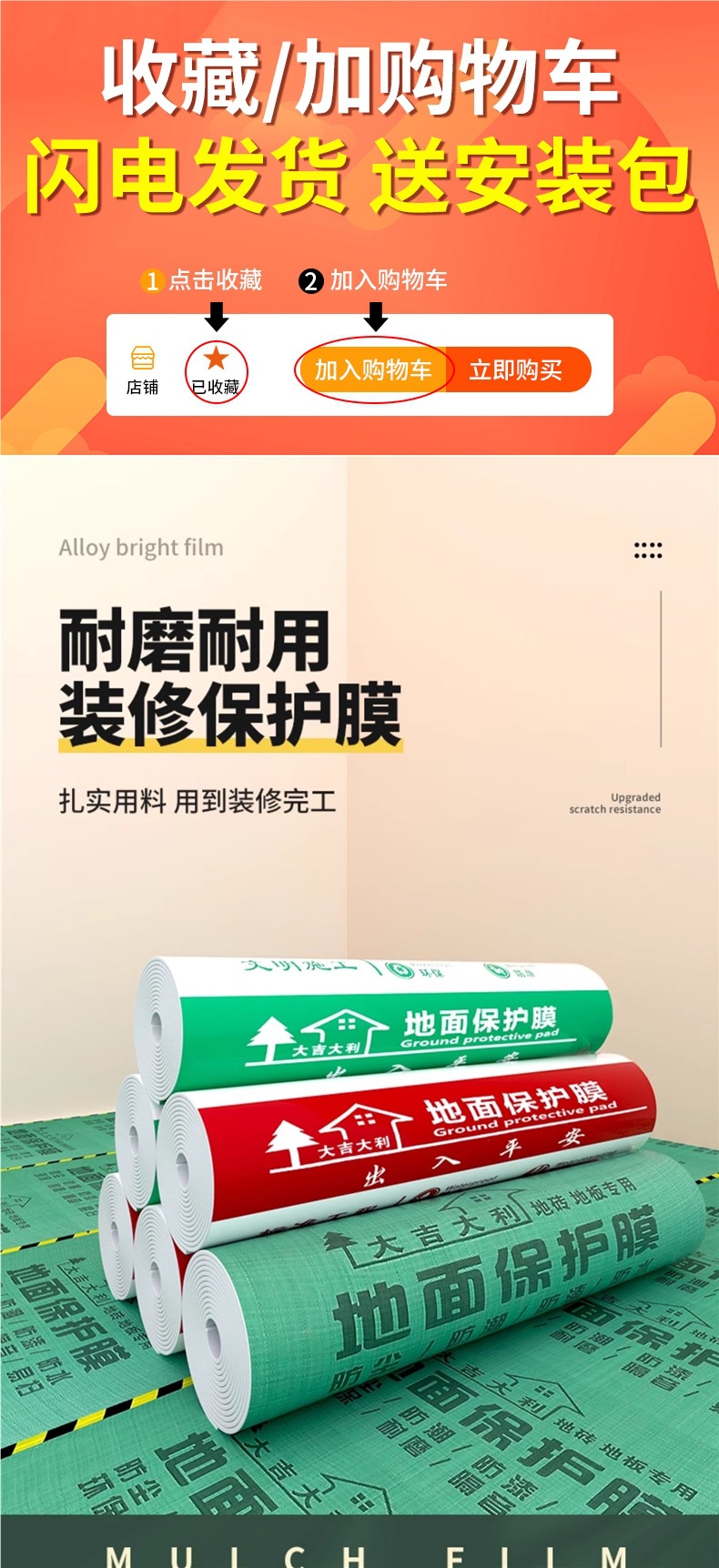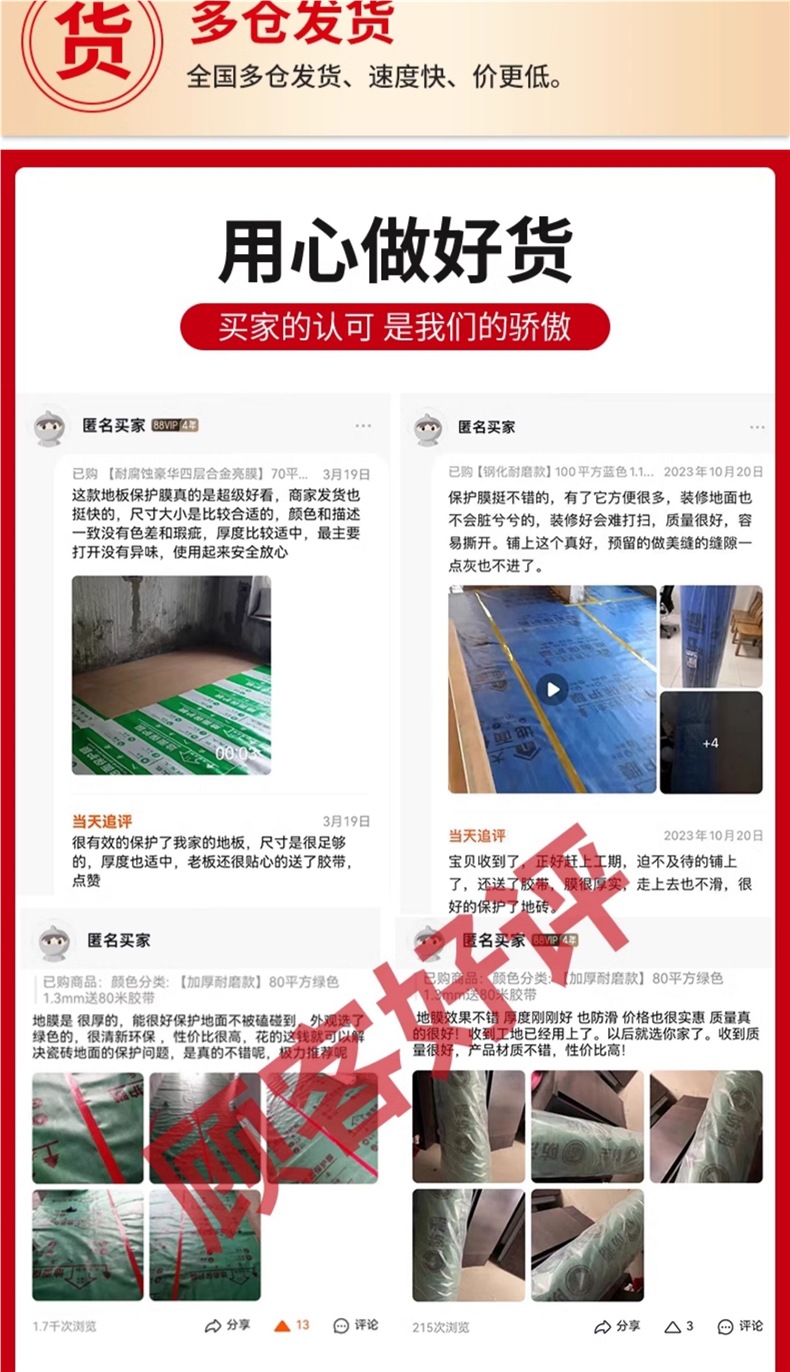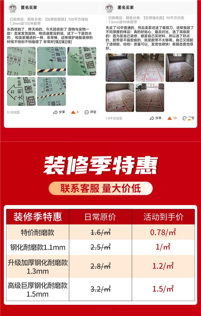 装修地面保护膜地砖瓷砖木地板防护垫加厚耐磨地膜家装一次性铺地