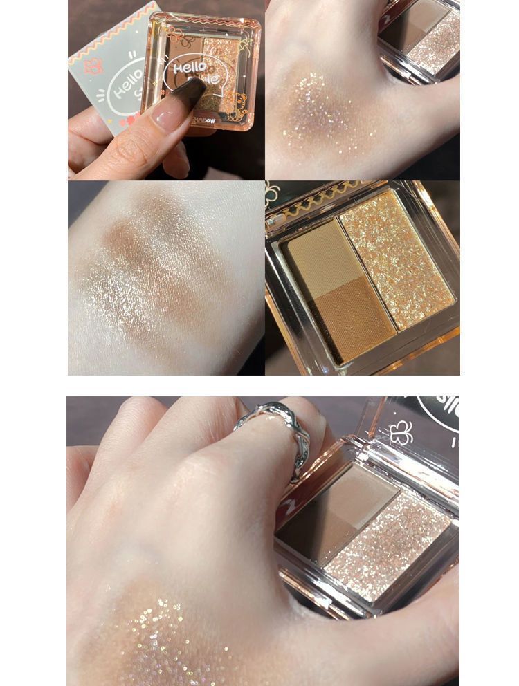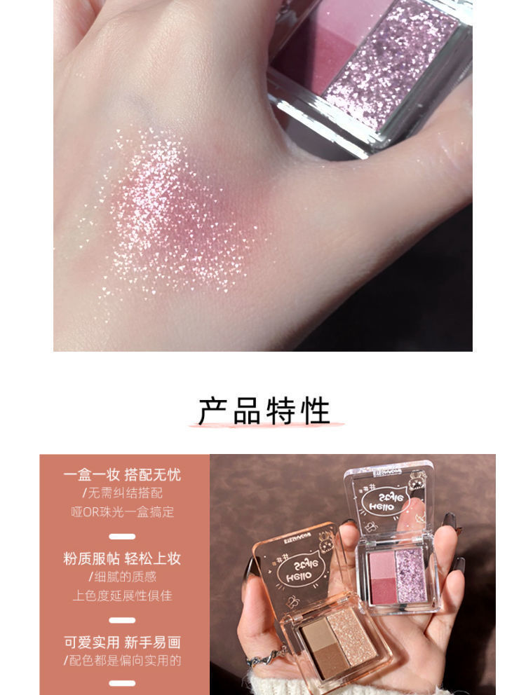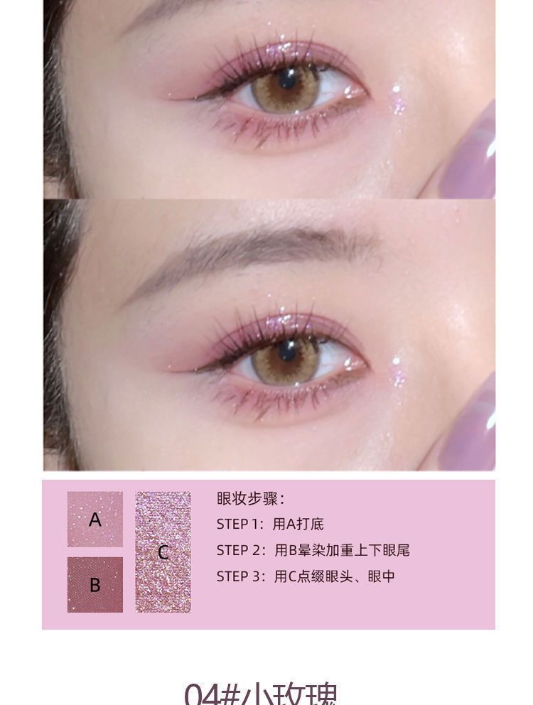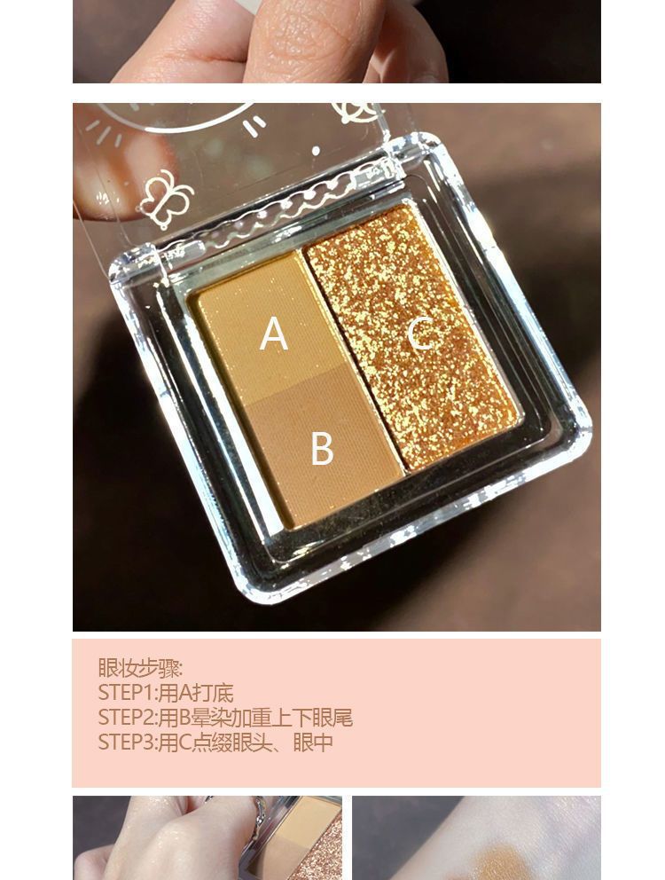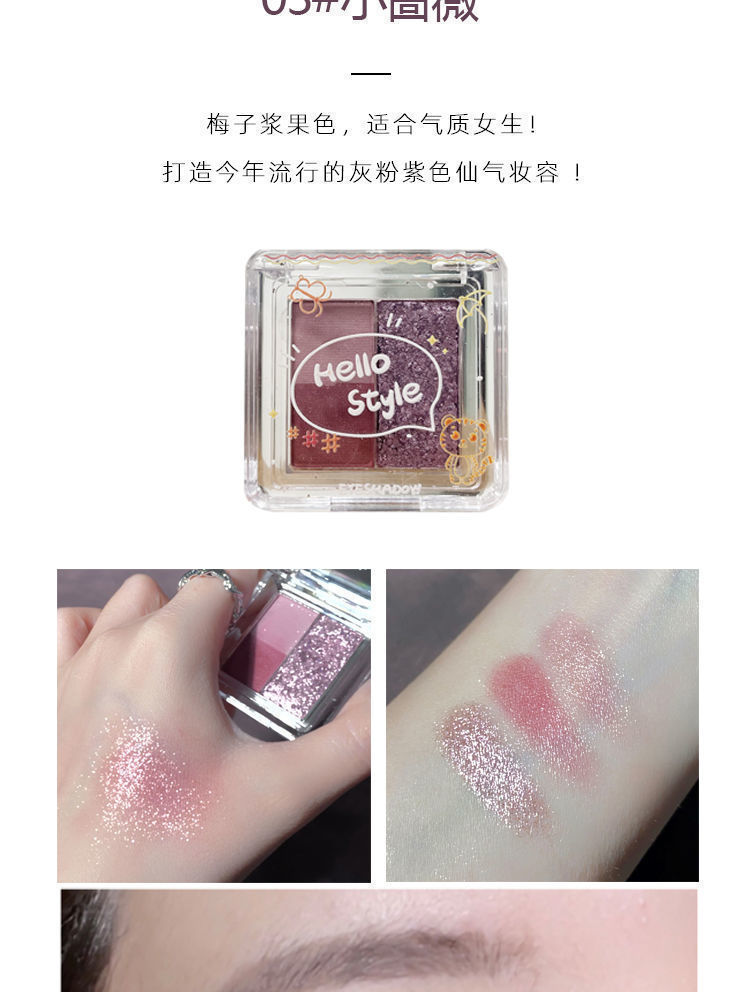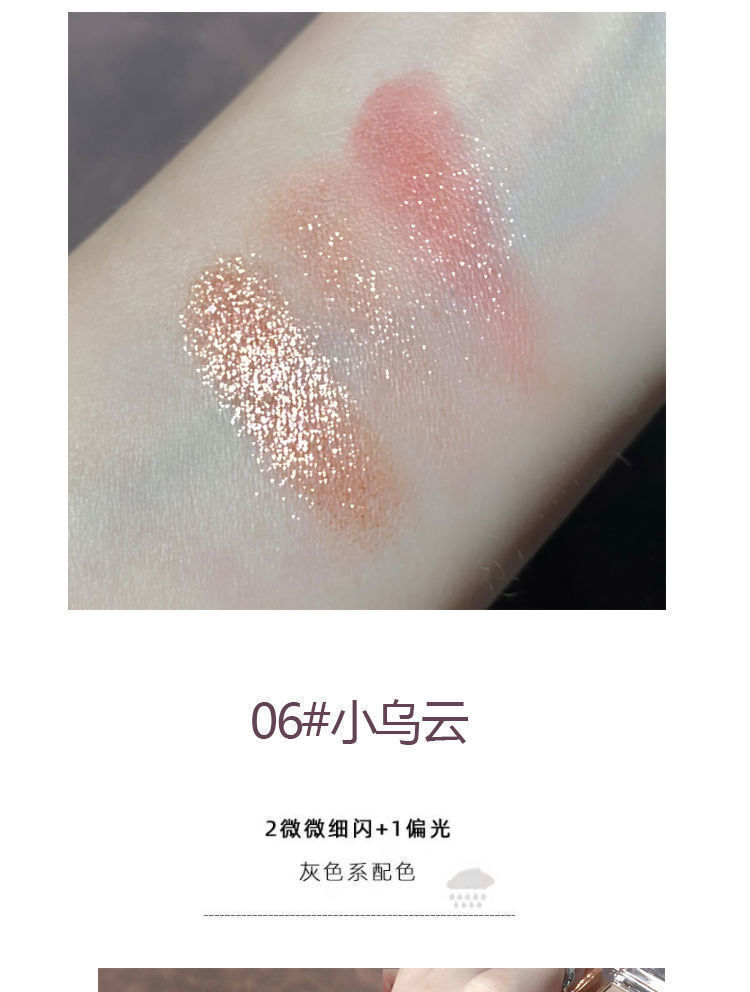 冰葡萄粉紫色超火小巧玲珑三色眼影便携大地色哑光珠光细闪大地色