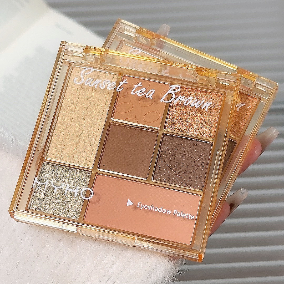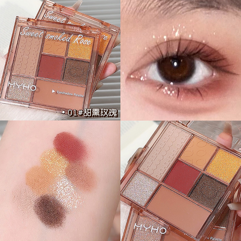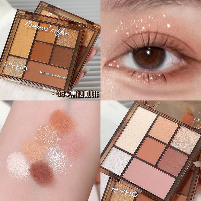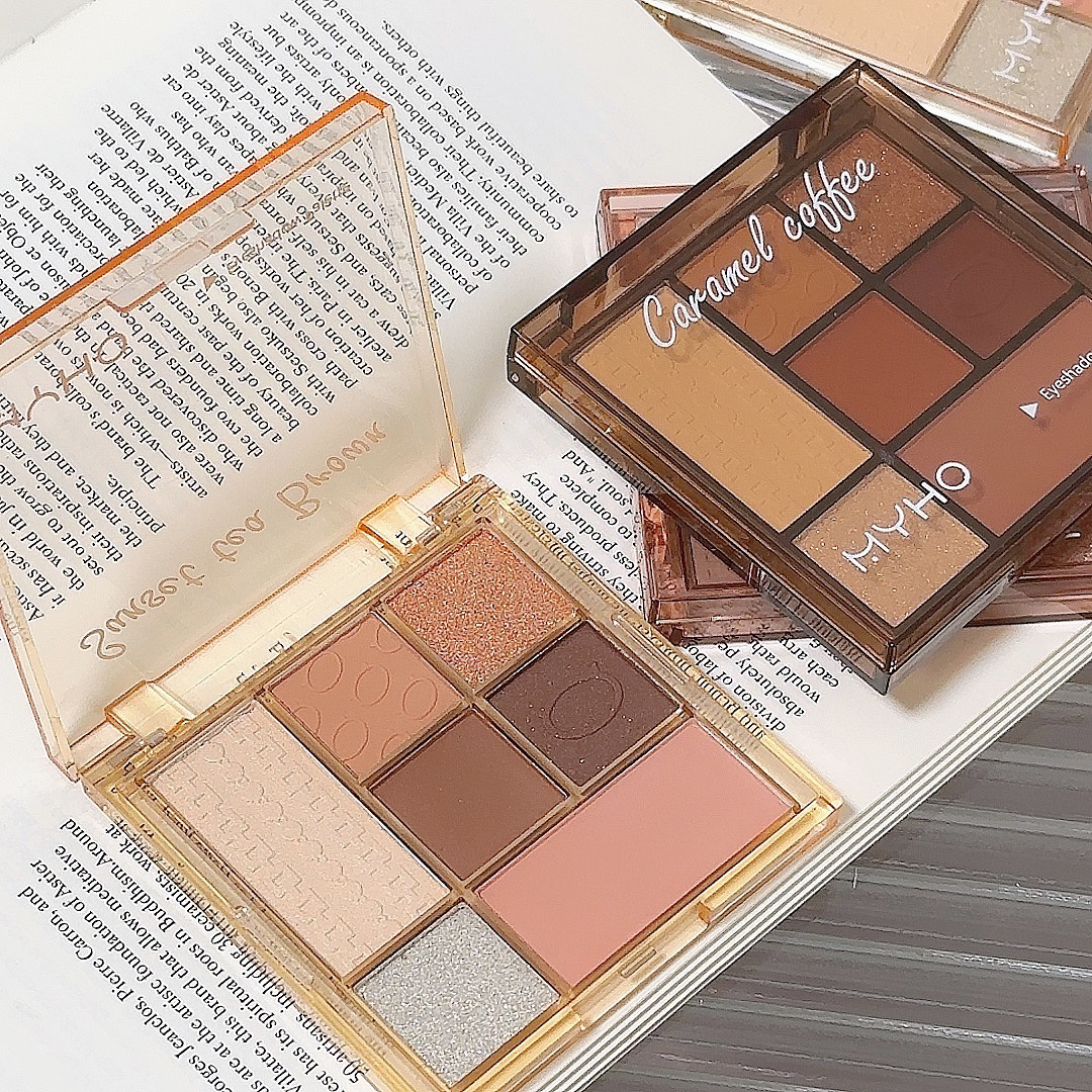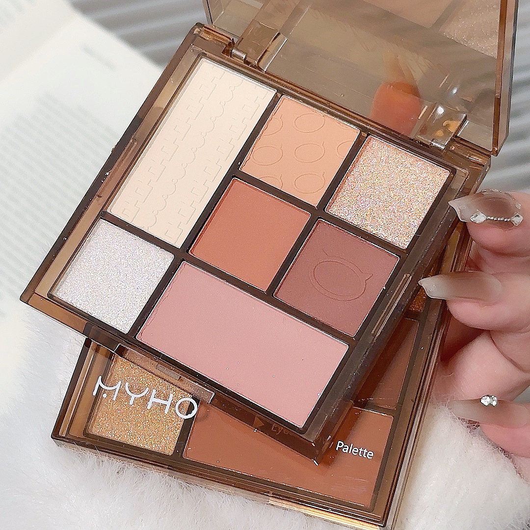 MYHO一盘多用腮红修容综合盘大地色哑光珠光七色眼影盘平价彩妆