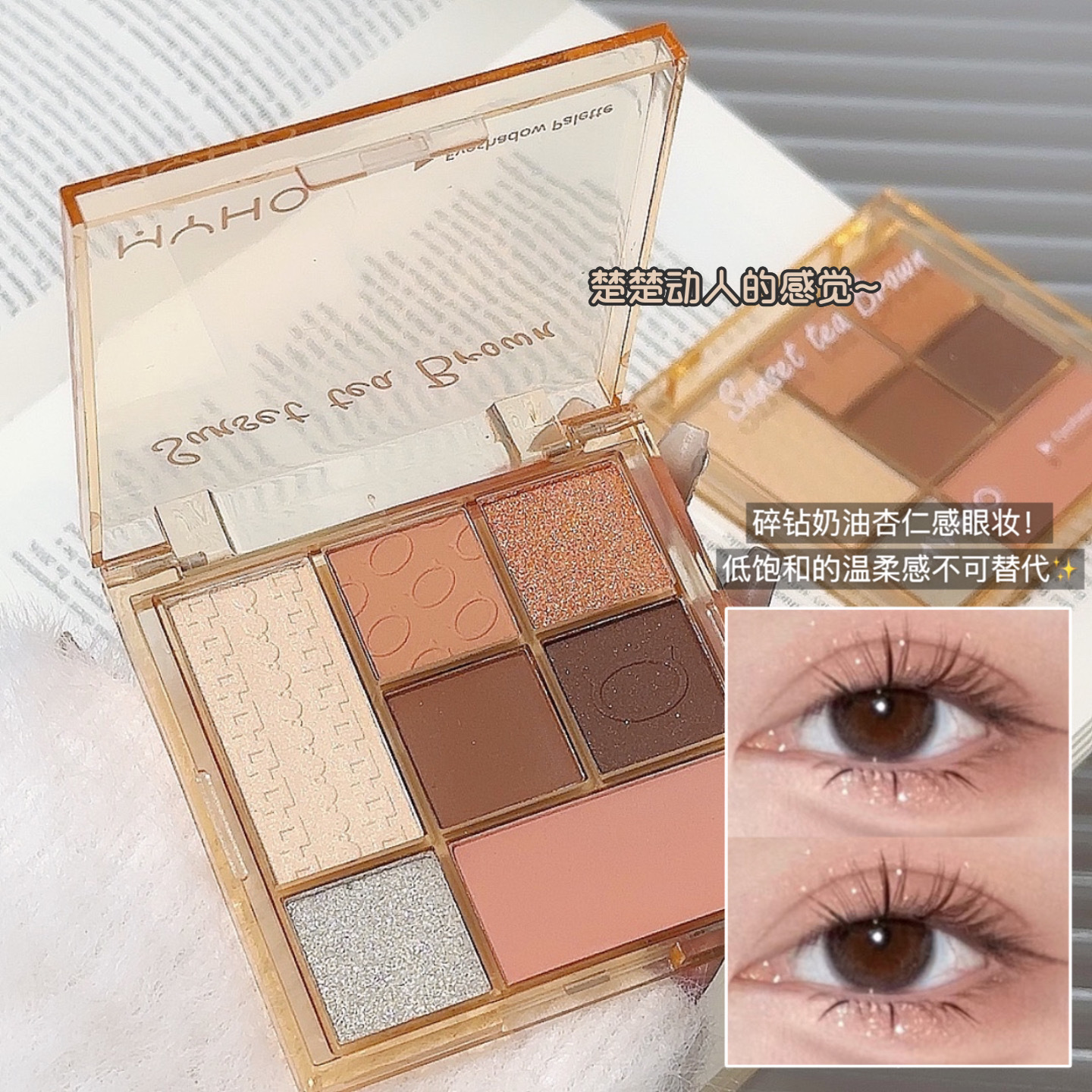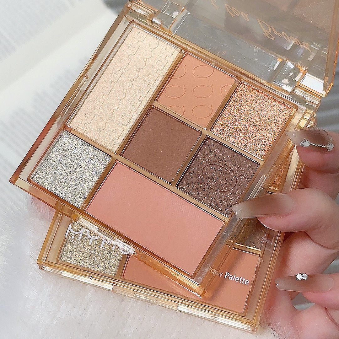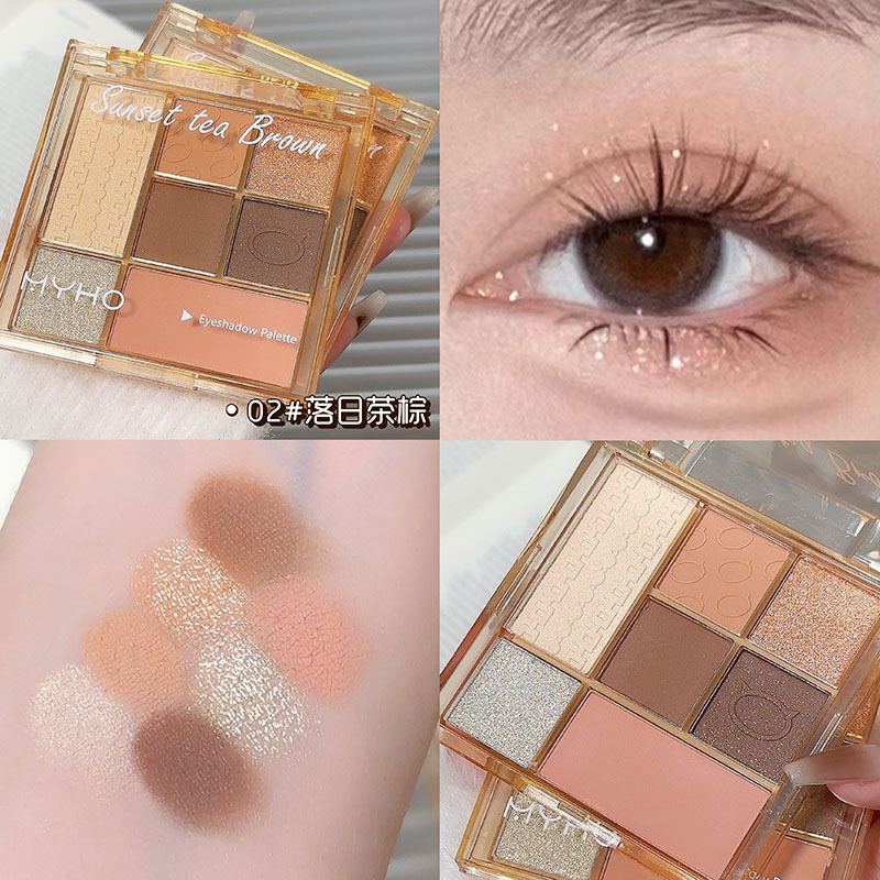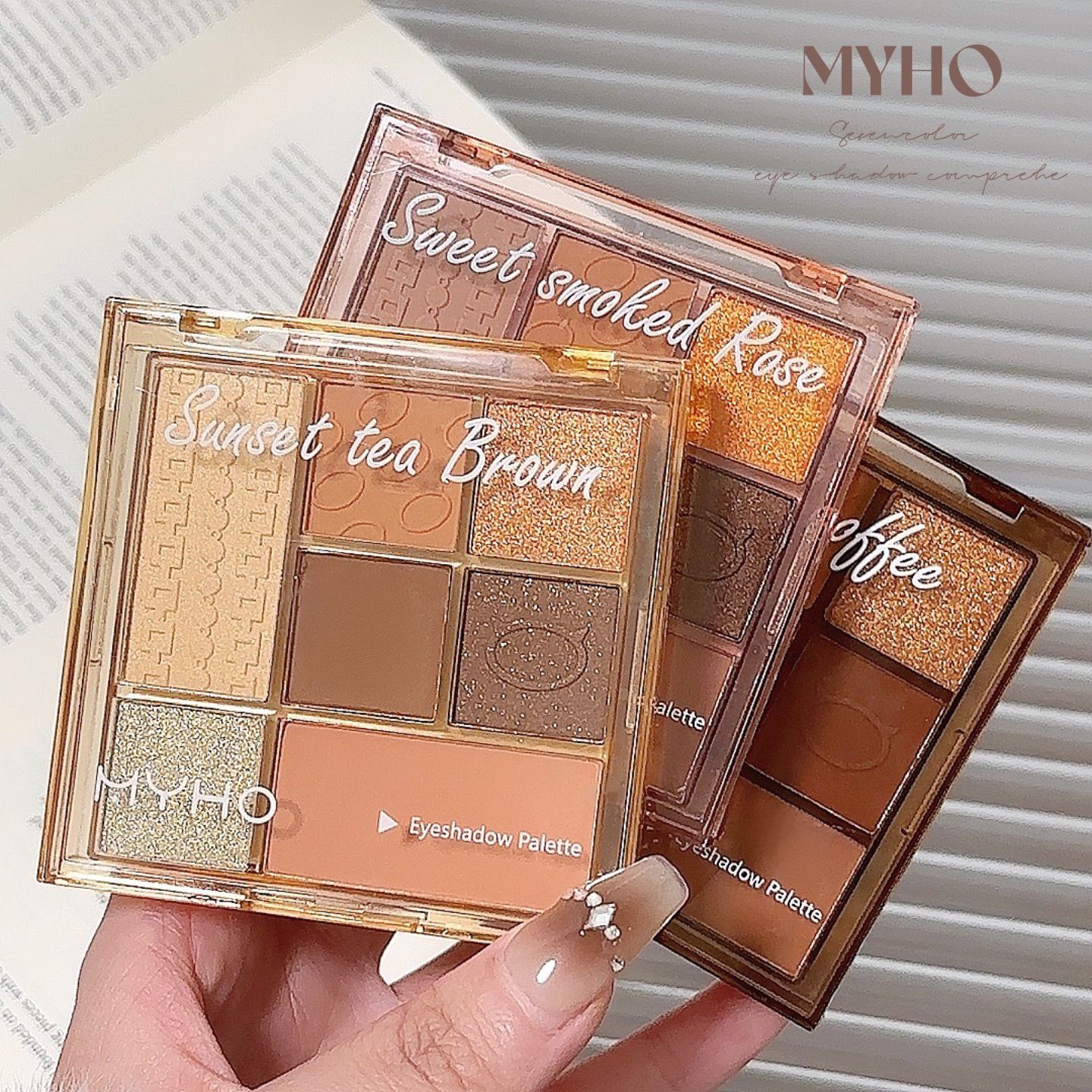 MYHO一盘多用腮红修容综合盘大地色哑光珠光七色眼影盘平价彩妆