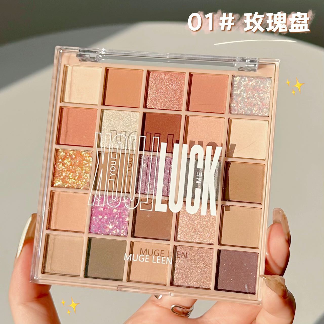 新款氛围感25色眼影盘珠光哑光大地色亮晶晶水泥玫瑰系百搭眼影盘