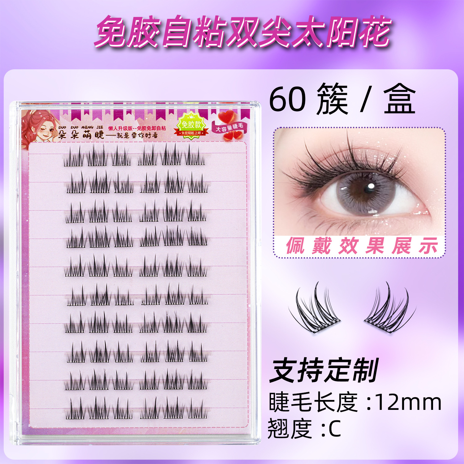 朵朵萌睫假睫毛自然仿真睫毛懒人双尖太阳花分段式新手免胶睫毛书