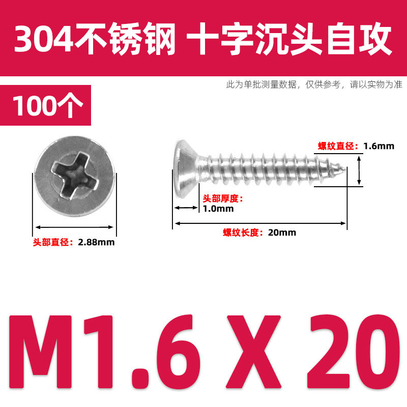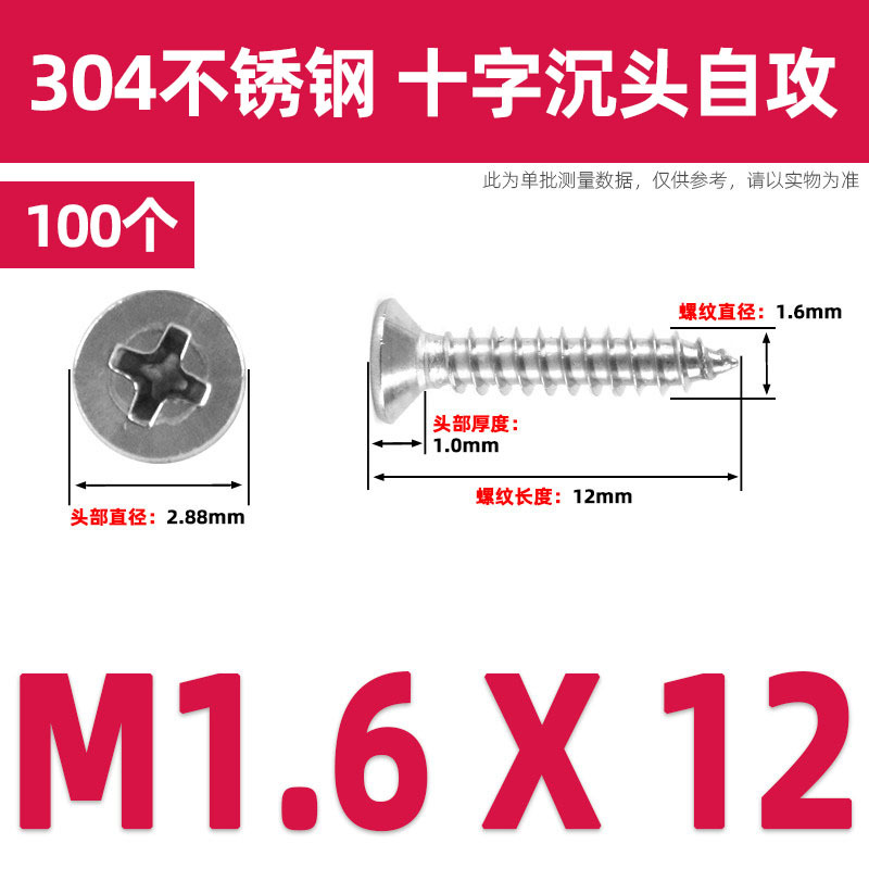 304不锈钢十字平头自攻螺丝钉GB846 木牙十字沉头螺丝批发 M1.0M3