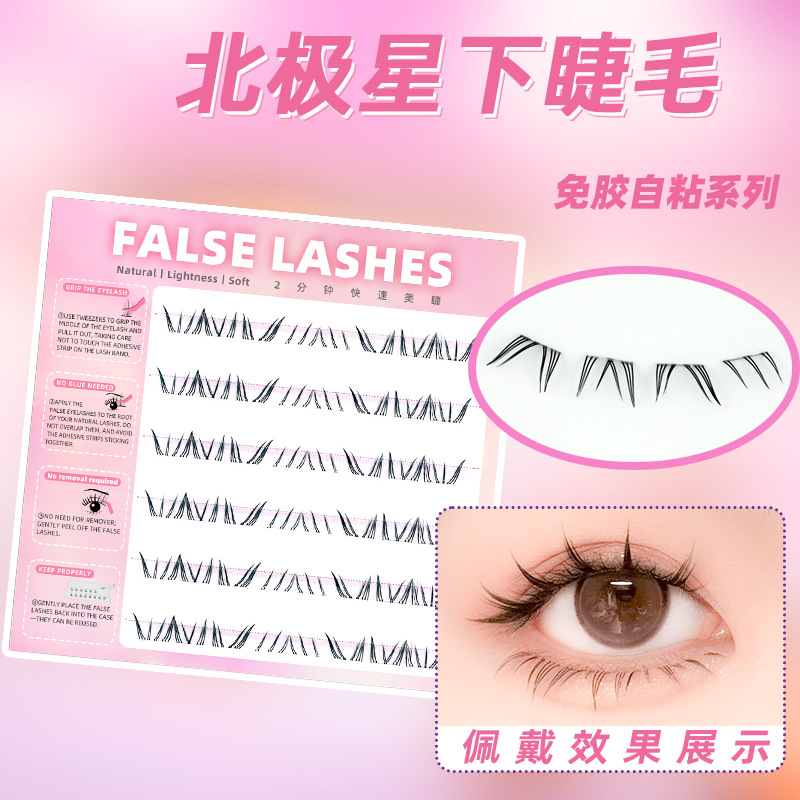 北极星免胶自粘下睫毛梦幻精灵纯欲睫毛自然仿真眼睫毛贴上镜批发