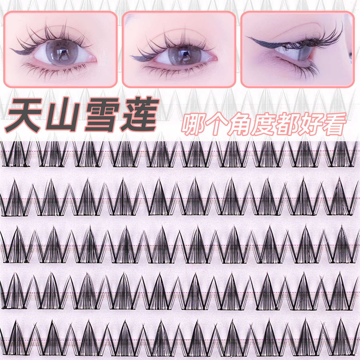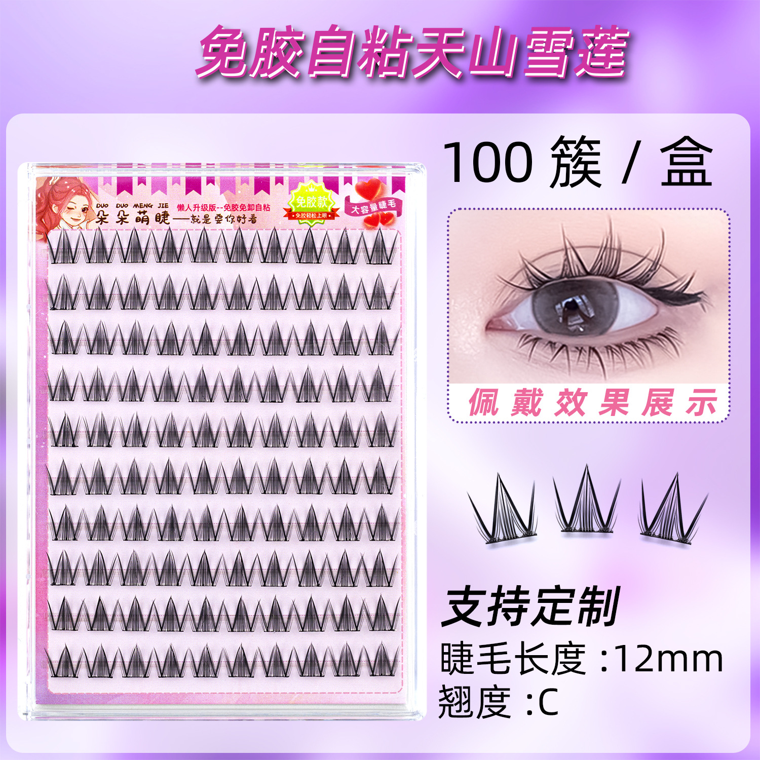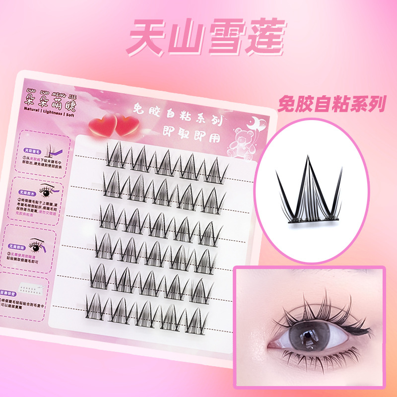 朵朵萌睫假睫毛硬梗天山雪莲睫毛贴免胶自粘眼睫毛漫画感睫毛批发