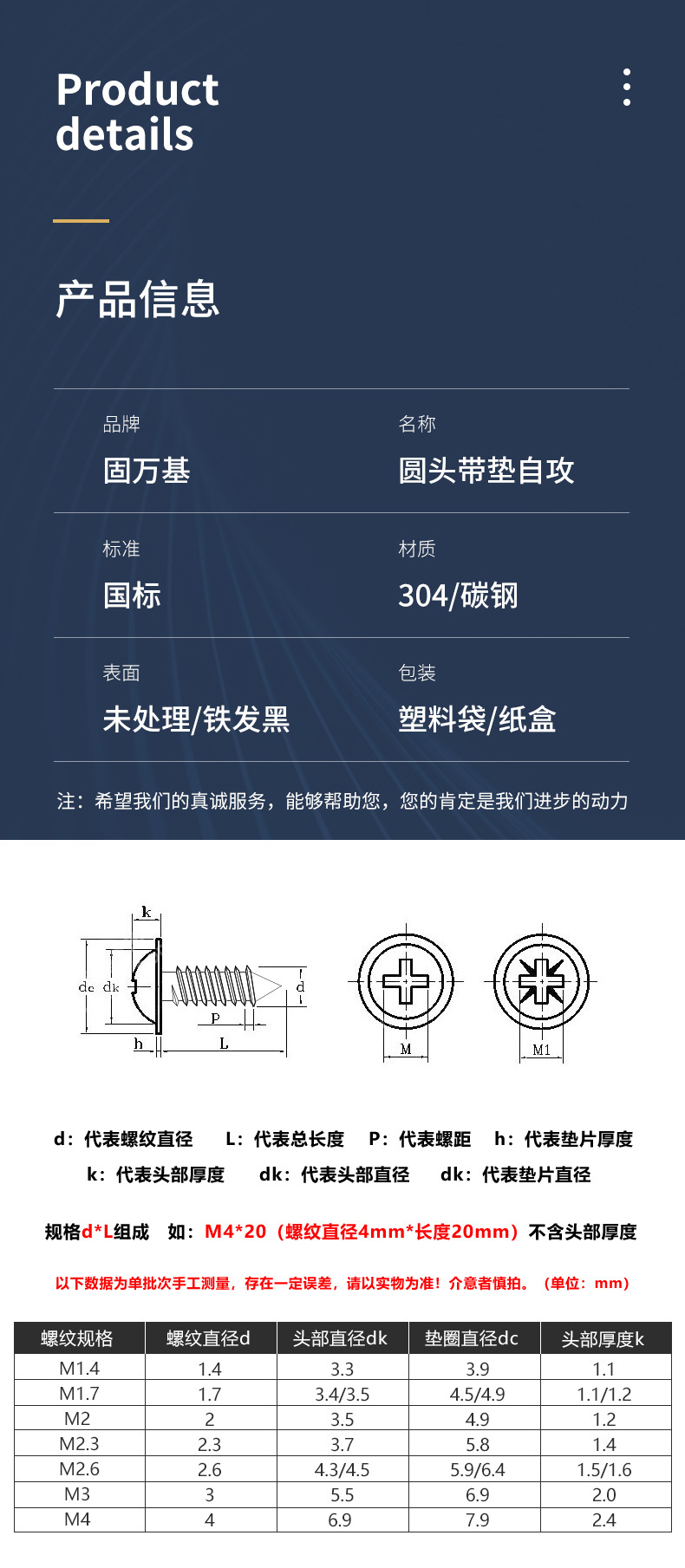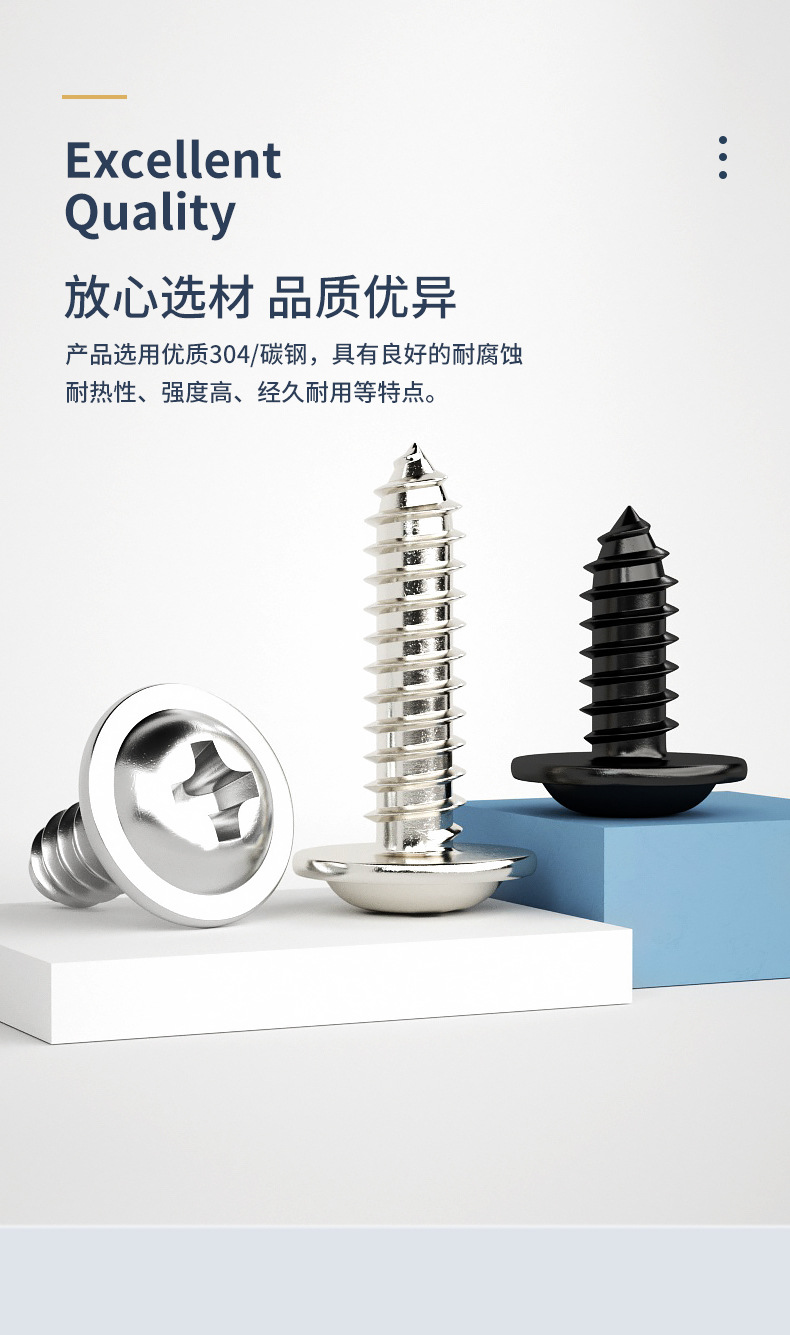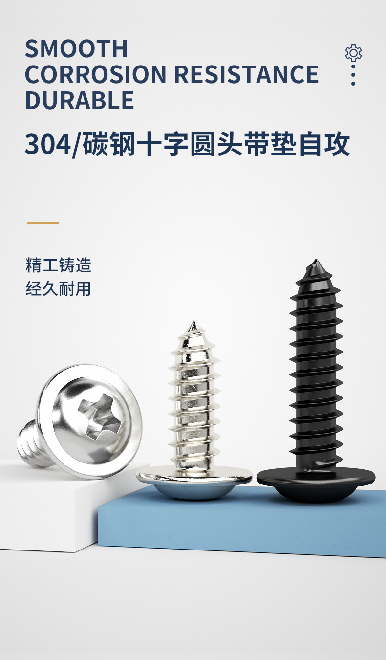 304不锈钢十字圆头带垫自攻螺丝钉带垫螺丝M1.4M1.7/M2M2.6/M3M4