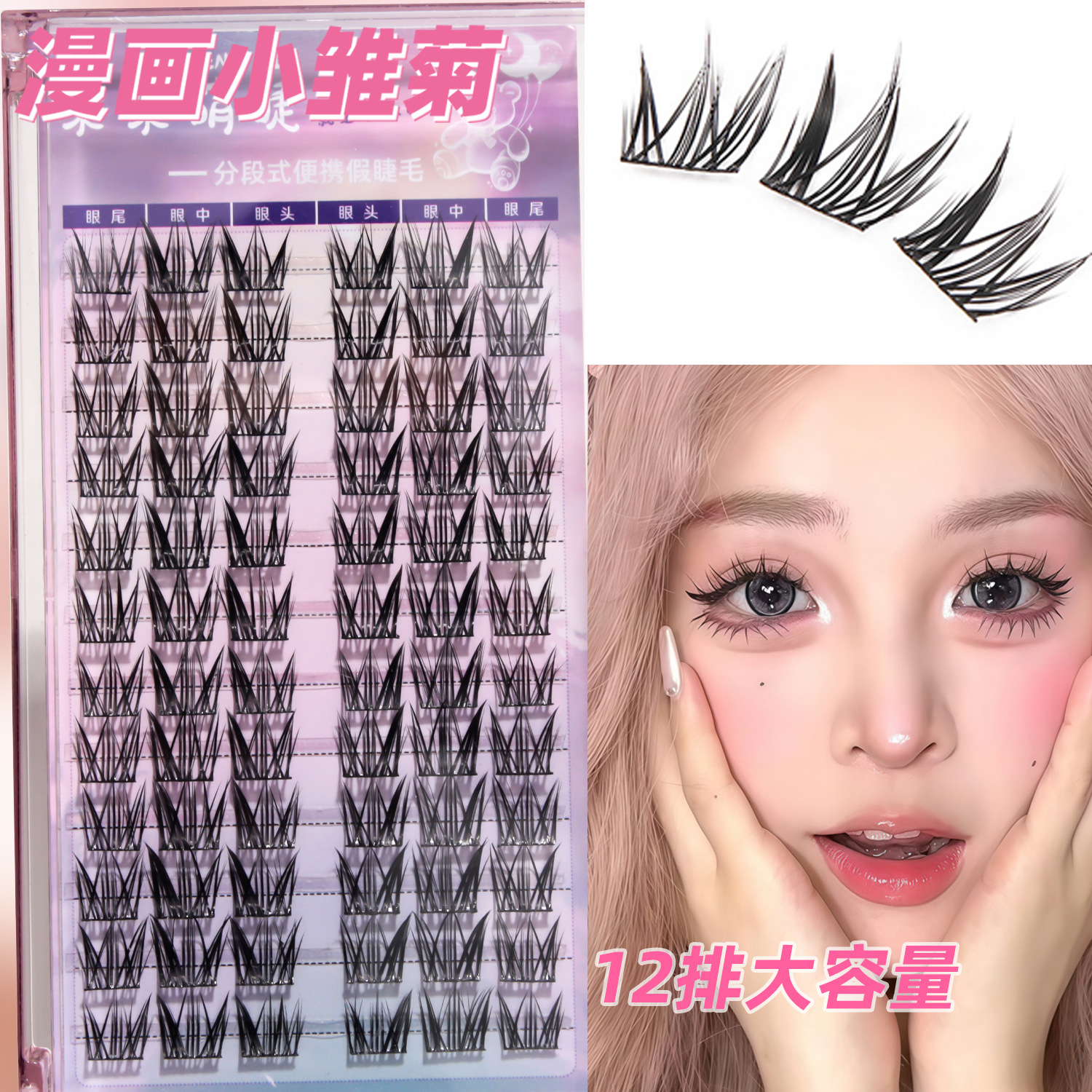 假睫毛胶水款小雏菊仿真自然款睫毛分段式眼睫毛大容量漫画睫毛