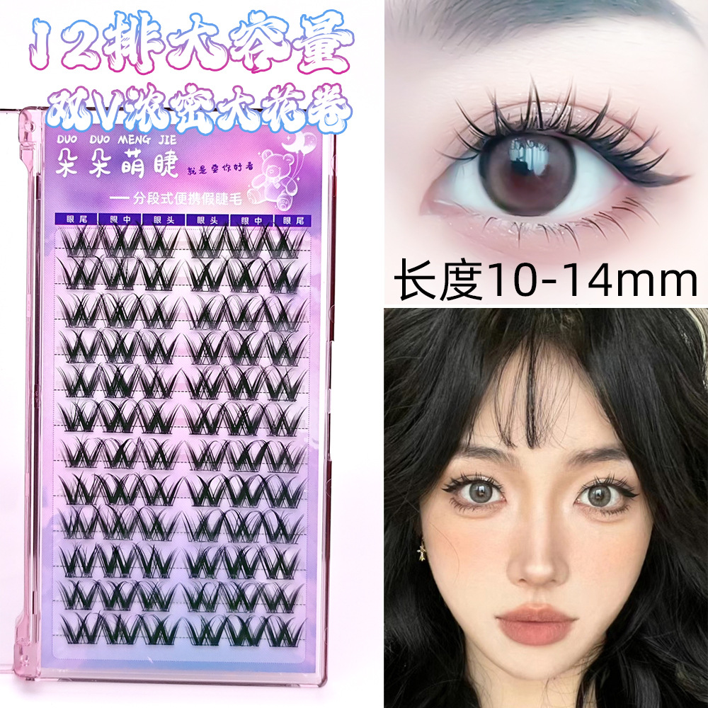 假睫毛大花卷浓密卷翘睫毛分段式眼睫毛大容量胶水款欧美风睫毛