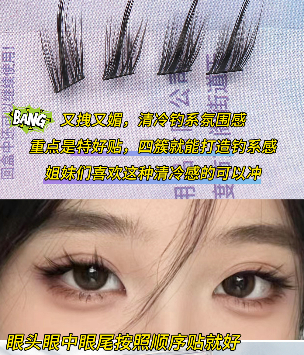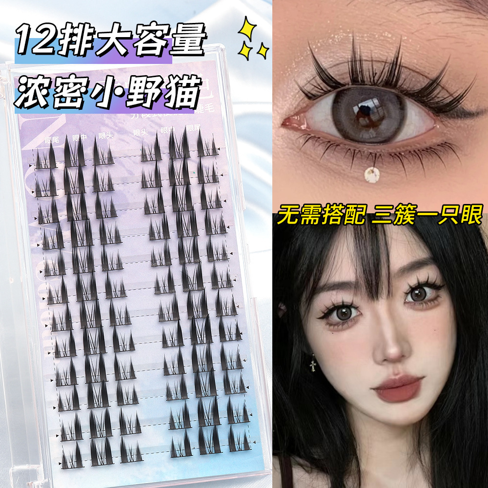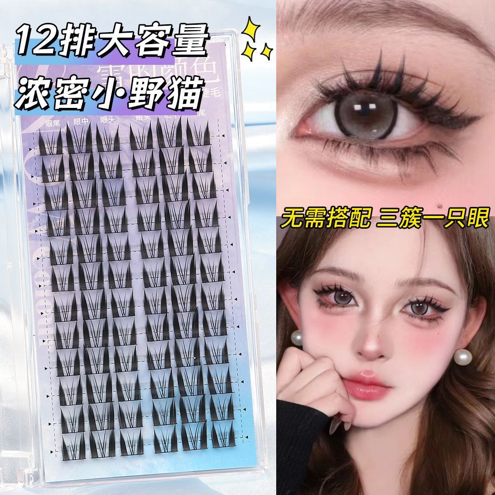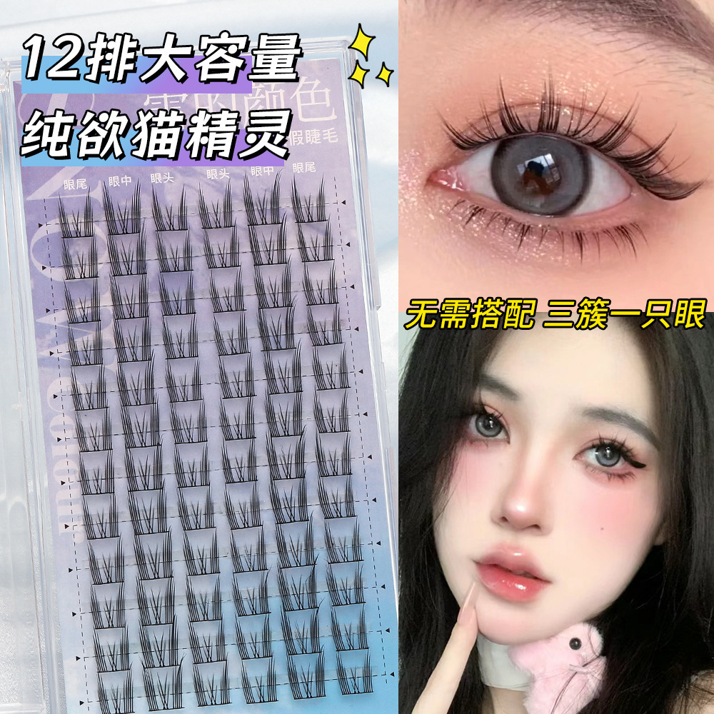 假睫毛胶水款大容量清冷狐系猫精灵自然浓密款分段式懒人眼睫毛